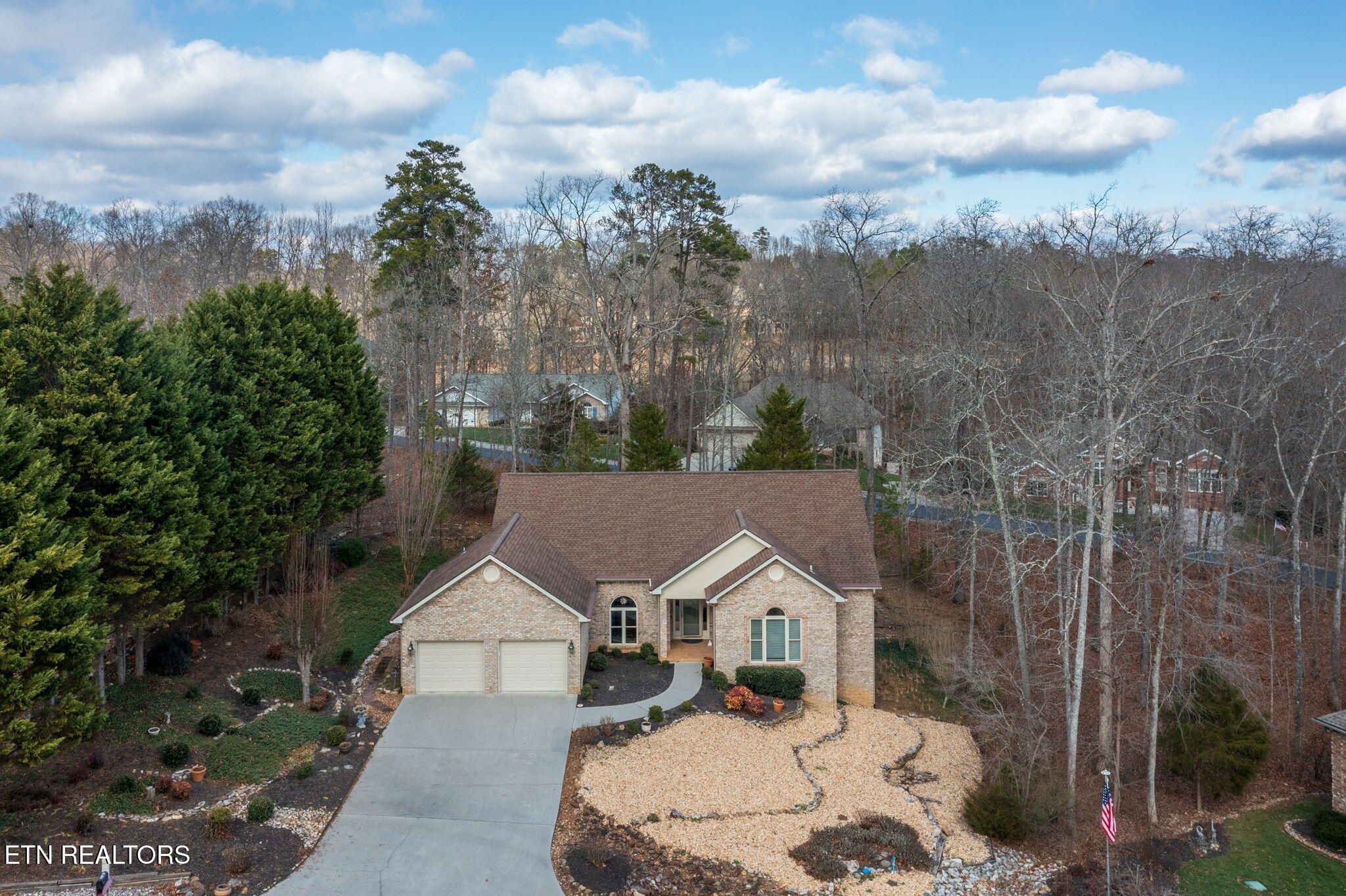 This Well-maintained all brick Custom-Built home in the North end of Tellico Village on a Level Lot. Featuring 3 Bedrooms with a designated office, 2 Full and 1 Half Baths. Tons of Natural light. Kitchen has Granite counter-tops, water filter at sink, upper cabinets have some glass fronts, granite topped island, cabinet pantry, refrigerator conveys, lots of counterspace. Vaulted ceilings and open to the Living Room. Large Screened in Porch with an extra grilling Deck. Oversized Master Bedroom with Walk-in Closet, soaking tub, walk-in shower, two sink vanity. Office, Formal Dining, 1/2 bath and laundry room all on the main Floor. Lower Level has a Large Family room with sliding glass door to the outside Patio. Two Large Bedrooms and Hobby Room. Over 930 Sq Ft of unfinished space, perfect for a workshop with double doors to the outside and Tons of Extra storage. Very private Level Lot on a Cul-De-Sac, professionally landscaped and easy to maintain, no grass! Tesla Charger does not convey.