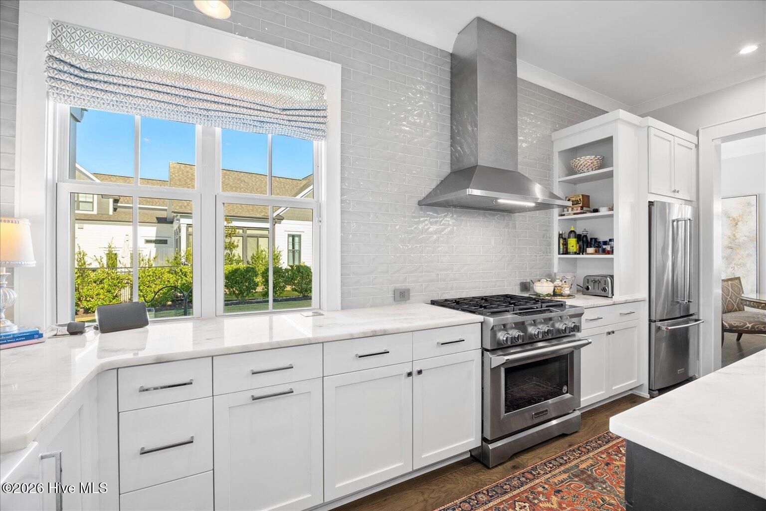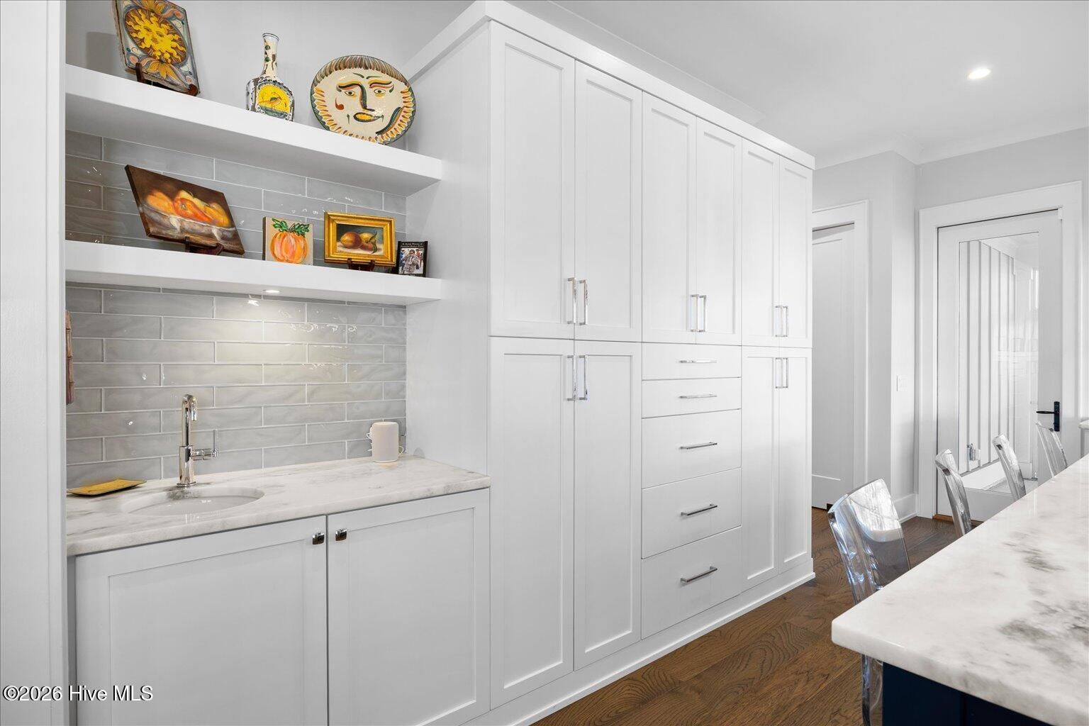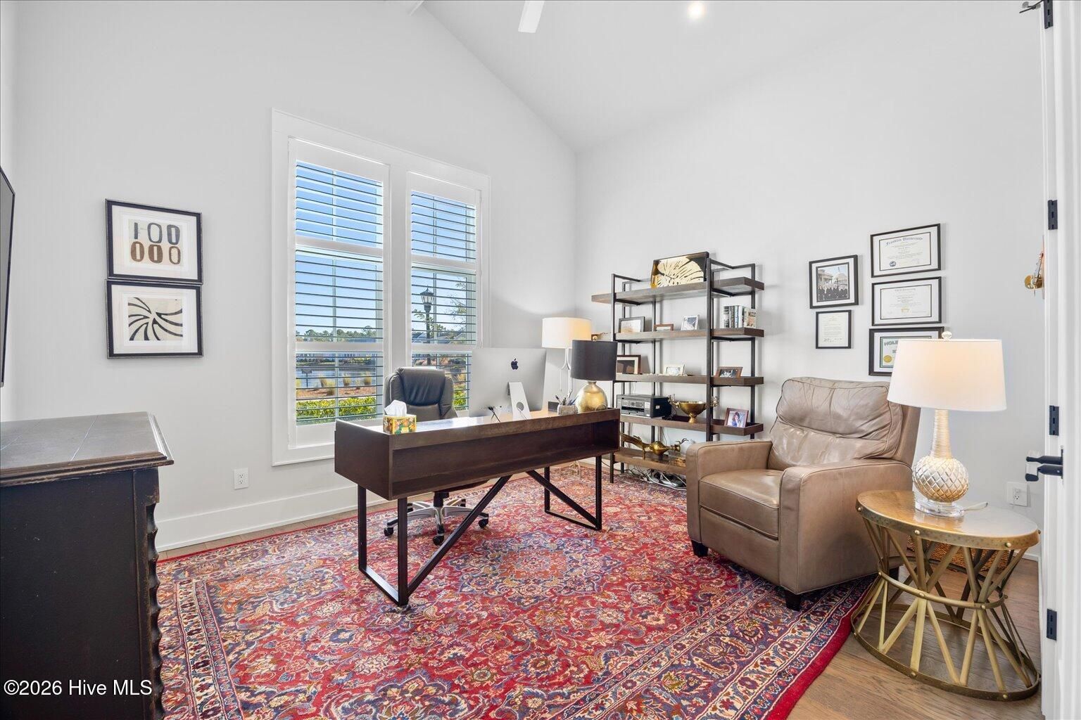 - Master Downstairs, Walk-In Closet(s), High Ceilings, Entrance Foyer, Mud Room, Bookcases, Kitchen Island, Ceiling Fan(s), Pantry, Walk-In Shower, Blinds