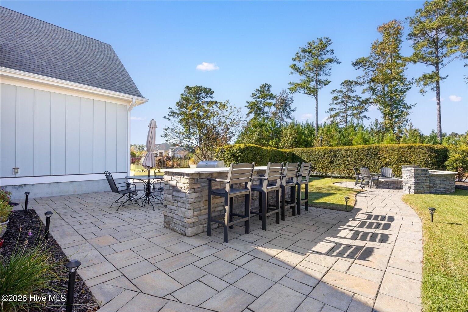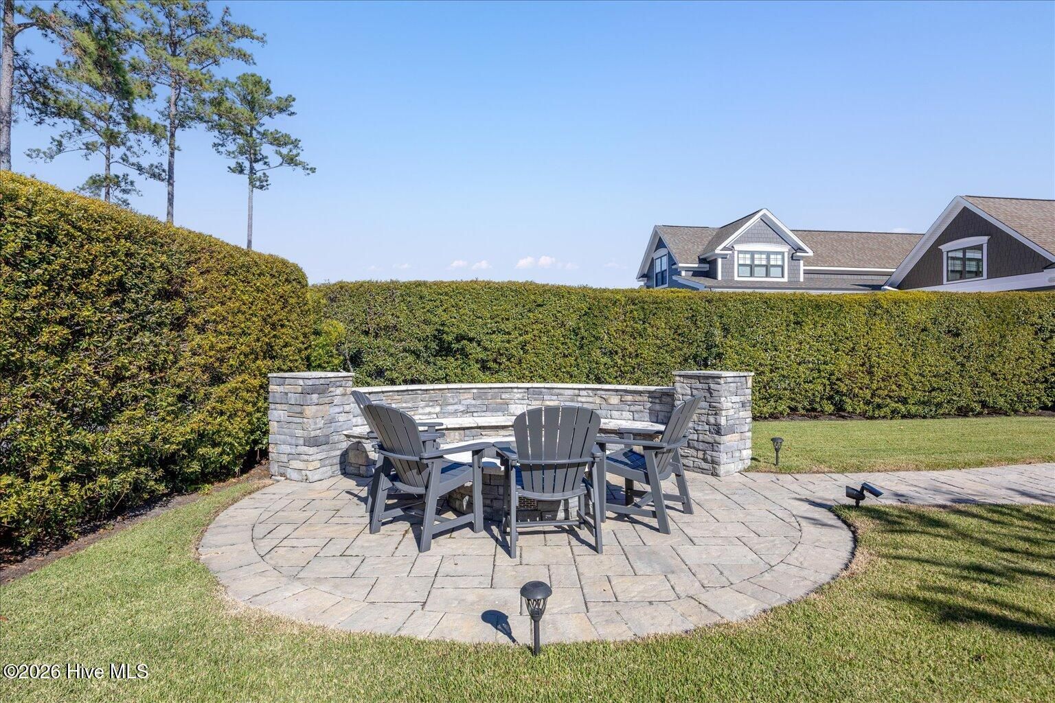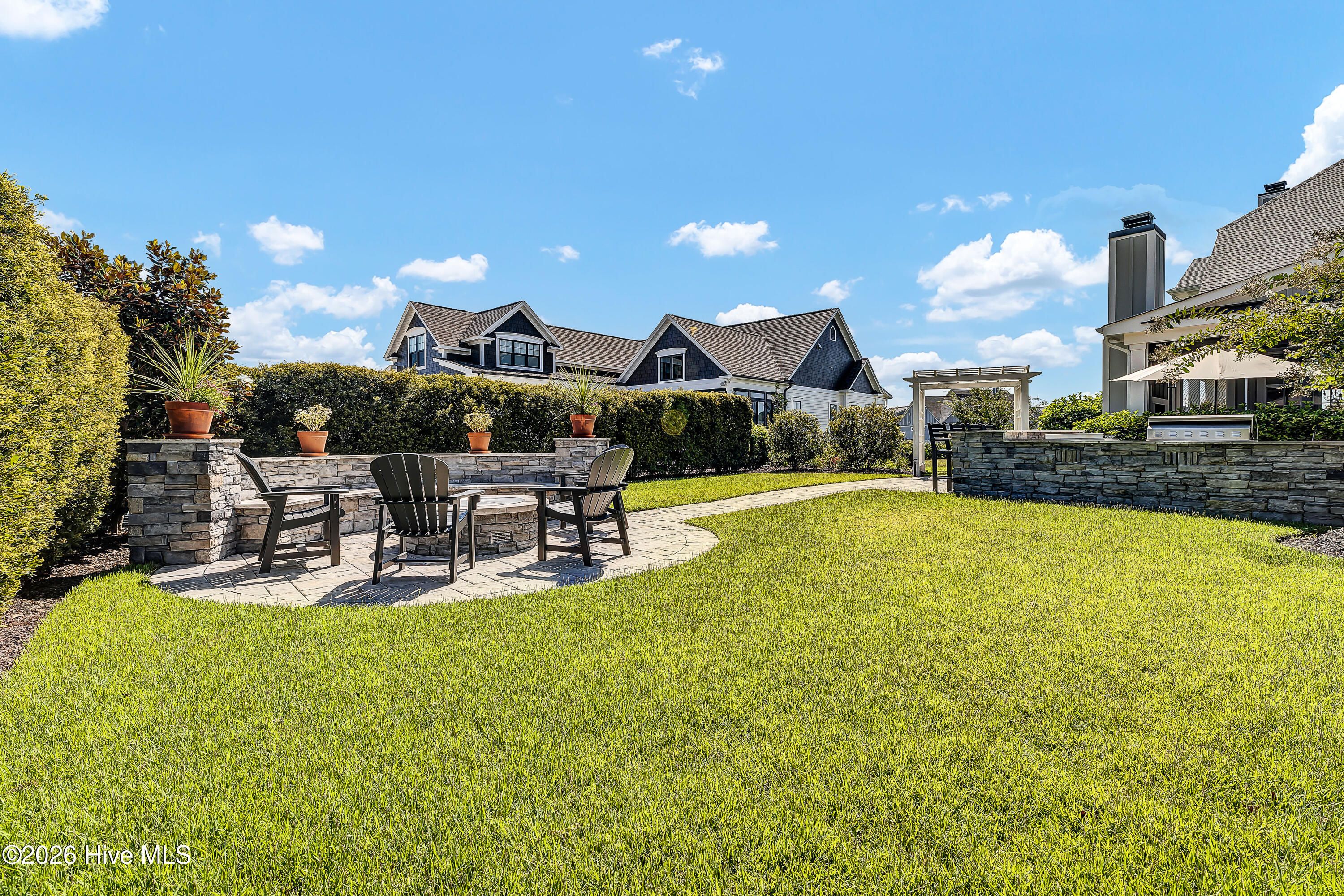 Welcome to 2110 Colony Pines Drive, a custom-built coastal farmhouse located in Brunswick Forest within the prestigious Cape Fear National community. Built by PBC Design + Build, this exceptional home offers unobstructed water views, refined craftsmanship, and thoughtfully designed indoor-outdoor living spaces throughout. The open-concept main level features wide-plank rustic wood flooring, soaring ceilings with decorative beam accents, custom lighting, and abundant natural light. The gourmet kitchen showcases marble countertops, a large center island, upscale white cabinetry, and stainless steel appliances including a gas stove. The kitchen flows seamlessly into the dining area and great room, anchored by a fireplace with built-in cabinetry and expansive water views. The private primary suite is located on the main level and offers a spa-inspired bath with marble counters, custom tilework, a large glass-enclosed shower, and two generous walk-in closets with convenient access to the laundry room. A first-floor guest bedroom provides flexible single-level living. Upstairs, you'll find two additional bedrooms, a full bath, a dedicated office space, and a second living area, all opening to sweeping covered porches with panoramic water vistas. Outdoor living is a true highlight, with Charleston-style wrap-around covered porches on both levels, screened porch with fireplace, a custom outdoor kitchen with grill and griddle, and a stone firepit seating area—perfectly positioned within a professionally landscaped yard. An alley-load two-car garage and decorative driveway complete the home. Brunswick Forest offers resort-style amenities including 3 fitness centers, 4 pools, tennis and pickleball courts, walking and biking trails, and the Villages Town Center with shopping, dining, and medical services. Ideally located just minutes from Wilmington, and beaches, this home delivers exceptional quality, views, and lifestyle in one of the area's most sought-after communities.