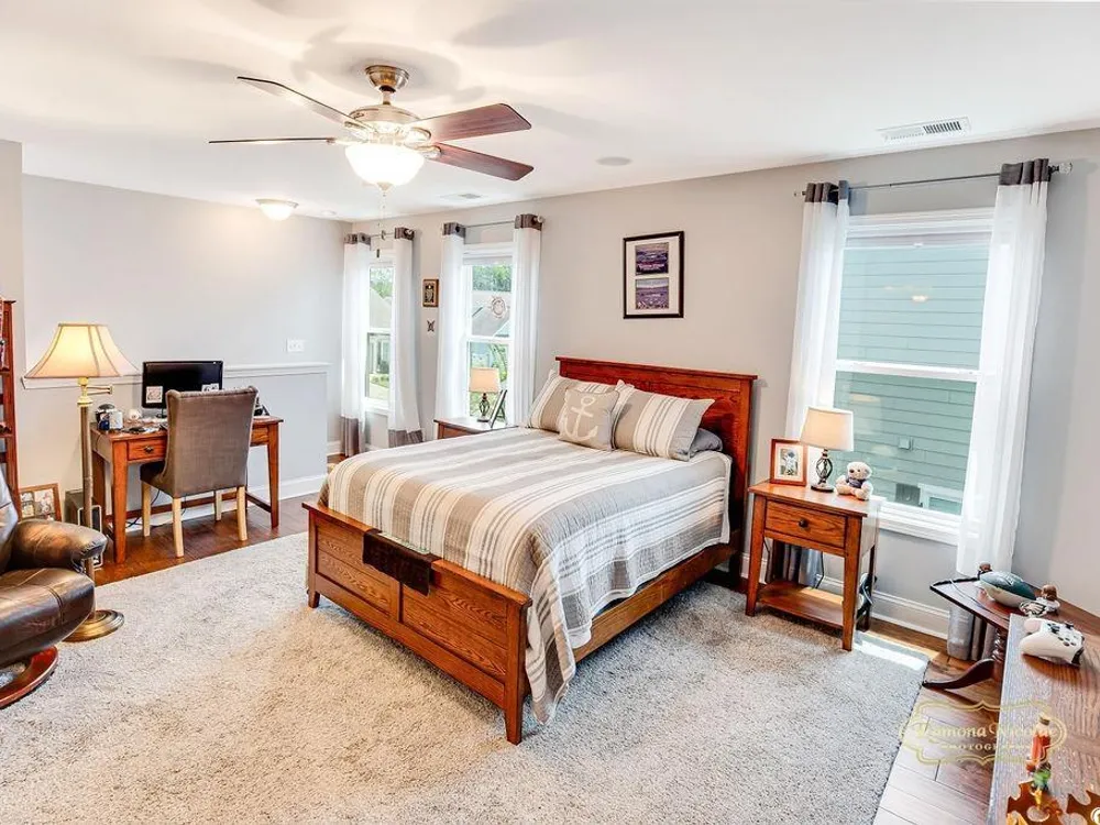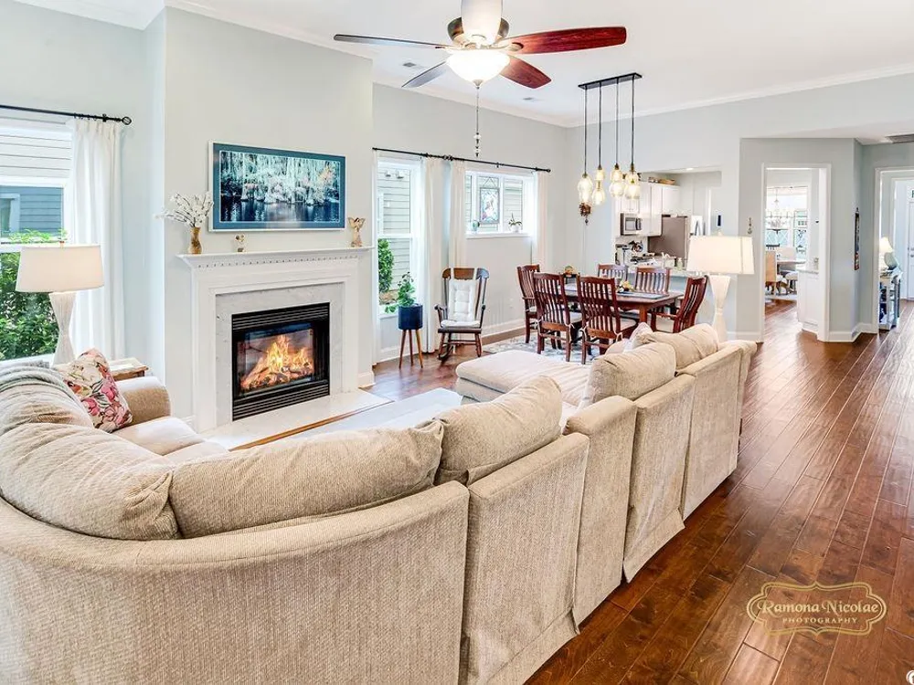 Welcome to 2110 Silver Spring Lane, where an exceptional lifestyle awaits in the highly sought-after Cresswind neighborhood in the Market Common community of Myrtle Beach! This beautiful home is loaded with upgrades, and offers the perfect opportunity to embrace vibrant energy and coastal charm. Perfectly positioned for convenience, this home offers walkable access to the clubhouse and pool - just steps away via the sidewalk or through the tranquil nature trail in your backyard. Step inside to bright, open spaces designed for modern living. The open-concept floor plan connects the living, dining, and kitchen areas, perfect for everyday living and entertaining. Hardwood floors flow throughout the main areas, complemented by light, airy wall colors. The heart of the home features 11’ ceilings and a cozy fireplace. The spacious dining area is filled with natural light, while the kitchen boasts white cabinetry, granite countertops, tile backsplash, stainless appliances, gas range, pantry, breakfast area, and wine rack. A sunroom provides a serene retreat with peaceful lake and greenery views. The primary suite includes raised double vanities and an oversized custom-tile shower, complemented by endless hot water from the tankless water heater. Upstairs, a large bonus room with full bath and attic storage adds flexibility. A dedicated laundry room with cabinetry, a finished 2-car garage, and thoughtful touches like brushed nickel fixtures add convenience. Exterior highlights include a welcoming front porch, Hardie plank siding, irrigation, hurricane shutters, security system, whole home surge protector, and a gas line for grilling. The enclosed back patio opens to walking trails and scenic greenery and lake views. Life in Market Common means you’re steps from boutique shops, cafes, restaurants, a movie theater, and entertainment venues—all accessible by foot or golf cart. Community events, farmers markets, and festivals foster a true neighborhood feel, while parks, lakes, and trails provide outdoor enjoyment. As a Cresswind resident, you’ll have access to a stunning array of amenities: a resort-style pool and spa, tennis, pickleball, bocce courts, walking trails, amphitheater, and outdoor fireplace. The clubhouse features a fitness center, yoga/aerobics studio, arts and crafts room, and countless clubs and resident-led activities that keep the community lively and welcoming. And of course, you’re just minutes from the pristine sands of the Atlantic Ocean and the Myrtle Beach State Park, plus easy access to all that Myrtle Beach offers. HOA services include access to amenities, lawn care, irrigation water, landscaping, cable TV, Internet, and trash/recycling collection. Don’t miss this opportunity to experience Market Common living at its finest!