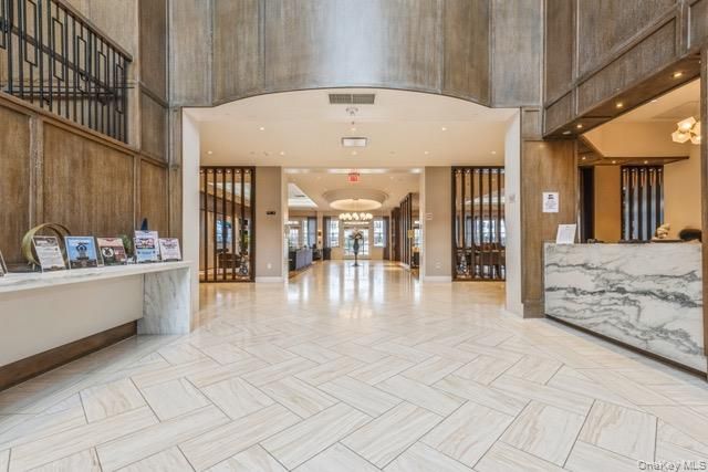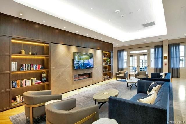 Experience the Pinnacle of Luxury at Country Pointe. Welcome to a lifestyle of refined elegance in the heart of Plainview. This coveted "Cambridge" model offers 1,475 square feet of impeccably designed living space within a premier gated community. The open-concept interior is bathed in natural light from oversized windows, highlighting the blonde oak flooring, custom crown moldings, and recessed lighting. The gourmet kitchen serves as the heart of the home, featuring rich cabinetry in warm tones contrasted by sleek stone countertops and matching backsplash, also included are professional-grade stainless steel appliances. Retreat to the expansive primary suite, complete with spacious dual closets and a spa-inspired ensuite. Whether you utilize the second bedroom as a sophisticated home office or a cozy den, the floor plan adapts to your lifestyle. Another added feature is garage parking in the lower level with easy access to the elevators. Enjoy morning coffee on your private porch or take advantage of the resort-style amenities—including a 29,000 sq. ft. clubhouse, heated pools with a poolside bar, and concierge service. For added convenience, there is a fitness center, tennis and boce courts, game rooms, media rooms and much more. This isn’t just a home; it’s a destination.