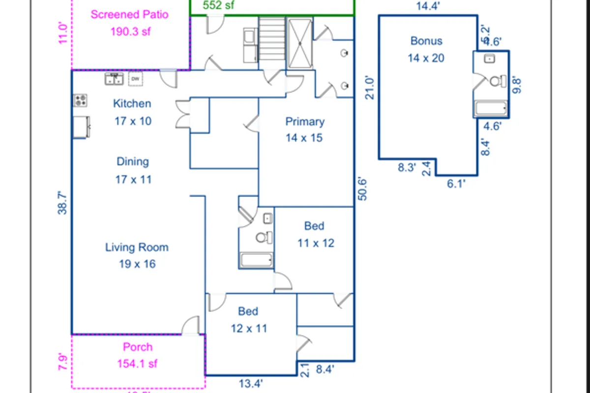 - 3 baths