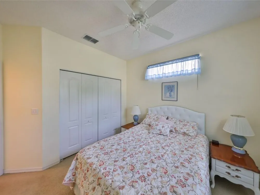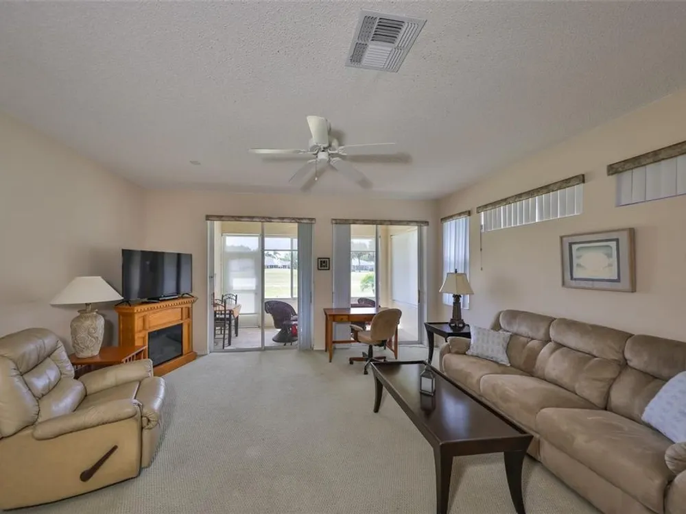 Wonderful Turn-key Kingston Model on the 8th Hole of the New Scepter Golf Course! Enjoy maintenance-free living in the highly sought-after gated community of Kings Point. This spacious 2-bedroom, 2-bath home features , a split floor plan, and walk in closet in the primary suite. The kitchen offers a breakfast bar, and the great room opens to a lanai with sweeping golf course views—the perfect spot to enjoy your morning coffee or a sunset glass of wine. Additional highlights include ceramic tile in wet areas, Berber carpet, a double garage, screened entry, and garage door screens. This home is in a pet-friendly area with no backyard neighbors and is being sold furnished—just bring your toothbrush! Kings Point offers a resort-style lifestyle with access to multiple clubhouses, indoor and outdoor pools, fitness centers, tennis courts, golf, theater, computer labs, and over 200 clubs and social activities. Golf cart-friendly and ideally located near the South Clubhouse, you’ll love the ease of access to everything the community has to present. Your condo fee includes lawn care, roof, exterior painting, Internet, Wifi, Pest spraying, water, sewer, insurance, swimming pools, gyms, activities, busing to local transportation, and so much more—making this a perfect seasonal or full-time residence. Just minutes from shopping, dining, award-winning medical facilities, and under 45 minutes to Tampa, Sarasota, and the Gulf beaches. Schedule your private tour today and discover the best of Florida living!