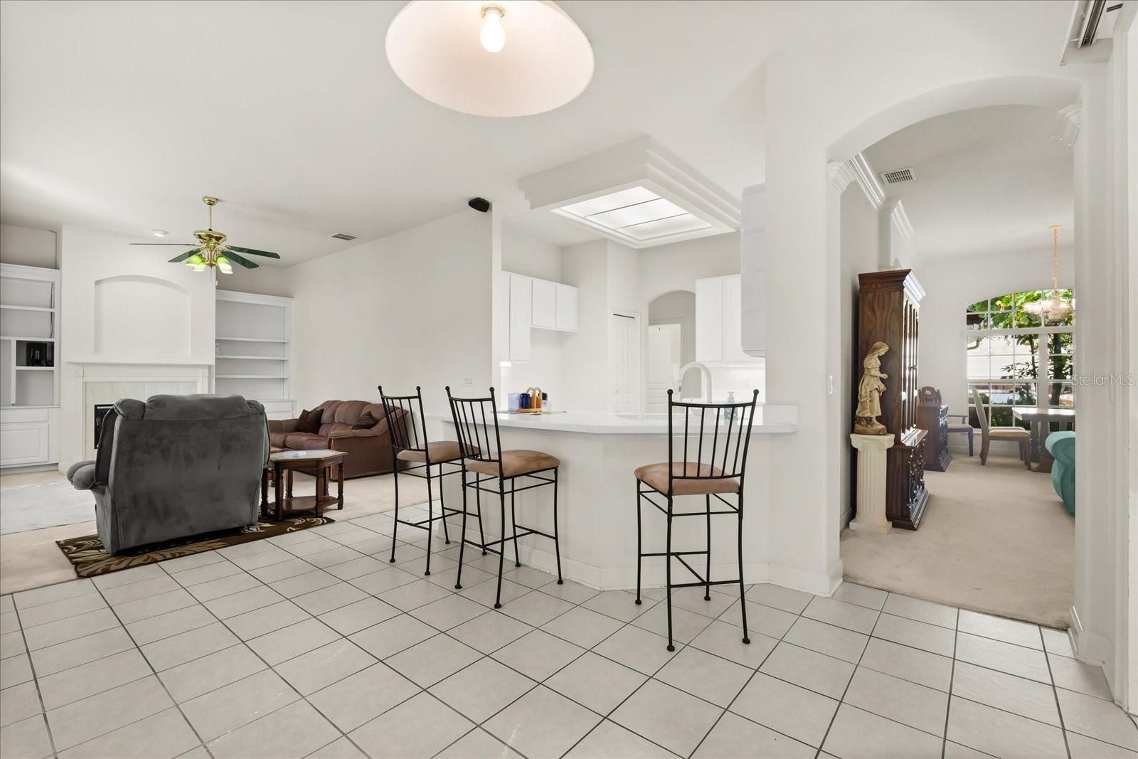 - Built-in Features, Ceiling Fan(s), Crown Molding, Eat-in Kitchen, High Ceilings, Kitchen/Family Room Combo, Open Floorplan, Main Level Primary, Split Bedrooms, Thermostat, Walk-In Closet(s)