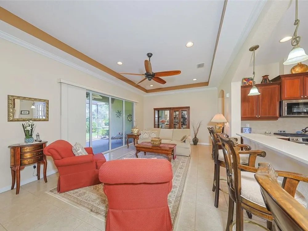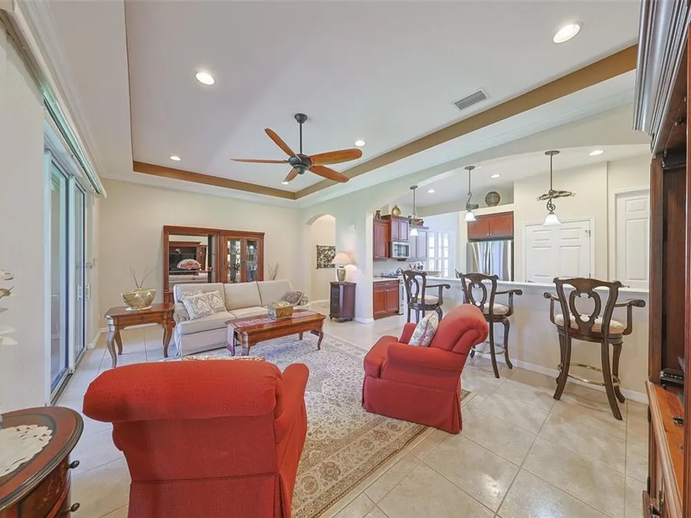 2112 Sifield Greens Way – Maplewood Community, Kings Point Welcome to this beautifully updated home in the desirable Maplewood community of Kings Point. With 1,456 sq. ft. of living space, this thoughtfully designed condo offers 2 bedrooms, 2 bathrooms, and an inviting open layout that’s perfect for both relaxing and entertaining. Step inside to find plantation shutters throughout, creating a bright, elegant atmosphere. The spacious great room flows effortlessly into the kitchen and dinette area, making it ideal for gatherings. The kitchen is a true highlight, featuring rich wood cabinetry, stainless steel appliances, a gas range, microwave, dishwasher, large pantry, and a convenient breakfast bar. The primary suite is a peaceful retreat with two walk-in closets, dual vanities, and a walk-in shower. The guest bedroom and bath are privately located for added comfort when friends and family visit. Enjoy the ease of no carpet throughout and a new roof installed in 2023, giving peace of mind for years to come. One of the best features of this home is the extended screened lanai, offering a tranquil space to unwind or entertain outdoors. A brick patio adds extra charm, perfect for enjoying Florida’s warm breezes in a private setting. Located in Kings Point’s gated, 55+ Maplewood community, residents enjoy maintenance-free living and access to resort-style amenities just a golf cart ride away — including pools, fitness centers, clubs, and more. Tastefully decorated and move-in ready, this home is waiting for you to start your next chapter in comfort and style. Schedule your private tour today!