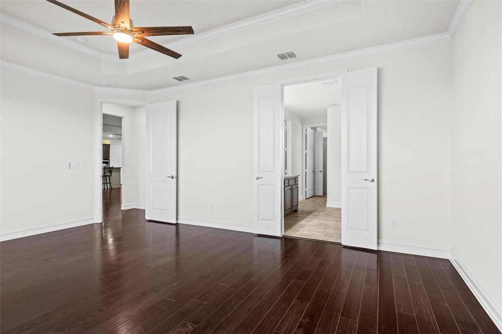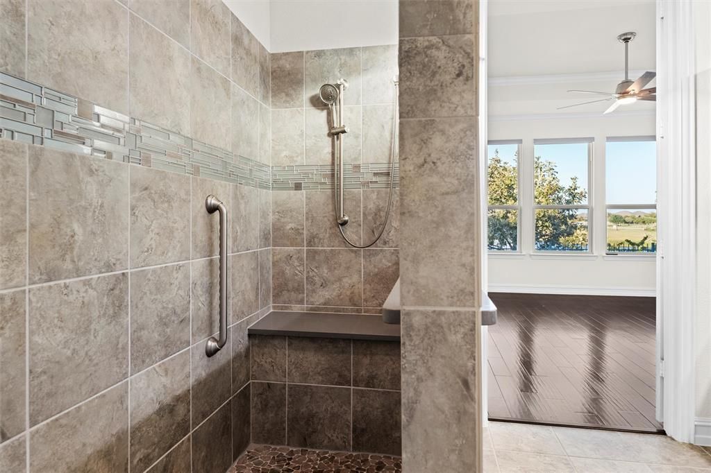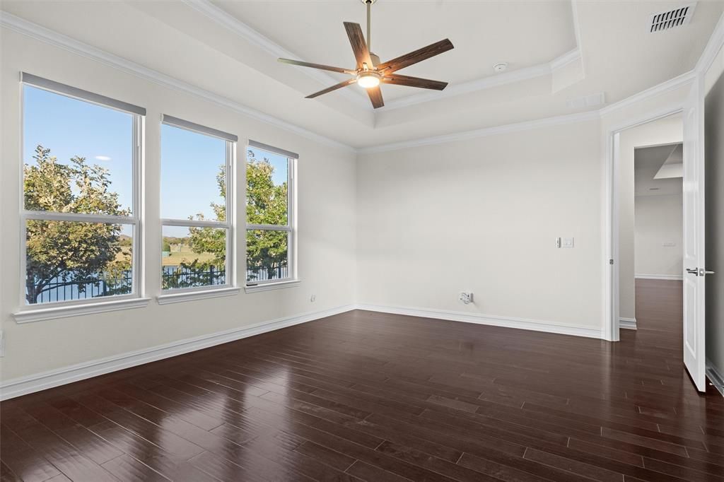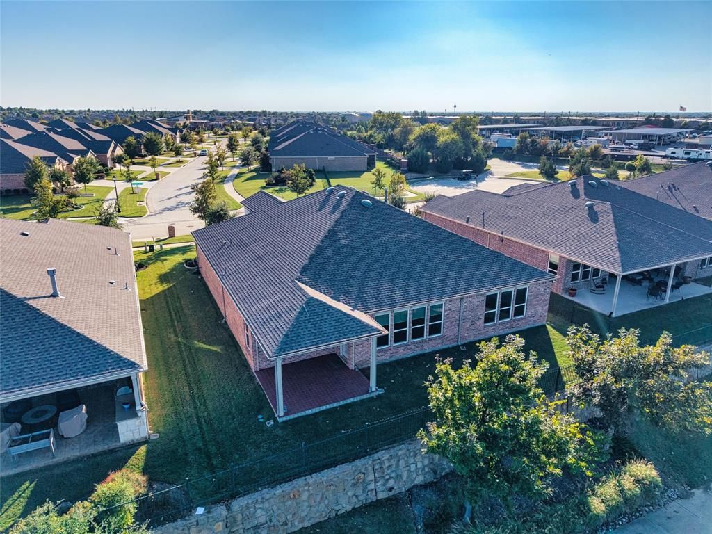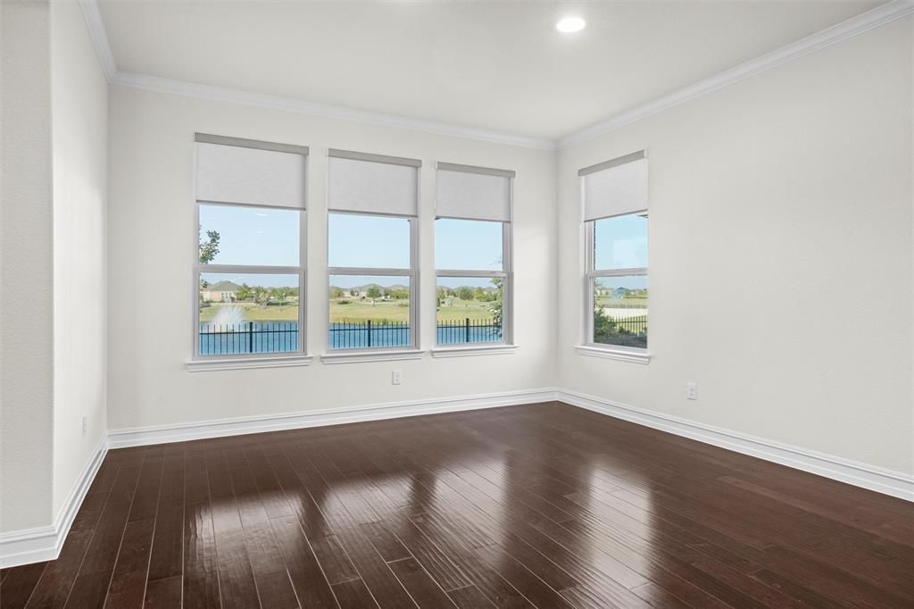 Experience elevated living in the prestigious 55+ Frisco Lakes community with this stunning Magnolia Estate floor plan. This 2-bedroom, 2.5-bath luxury retreat offers breathtaking lake views from the kitchen, dining room, living room, sunroom, and primary suite. The open-concept layout features a spacious great room with a stone fireplace, seamlessly connected to the kitchen and dining area—perfect for entertaining or relaxing in style. The gourmet kitchen is thoughtfully designed with dual-height quartz countertops, a raised-height dishwasher, upgraded Whirlpool appliances, and soft-close drawers and cabinet doors. Elegant crown molding, 8 foot doors and doorways, and trey ceilings in both the living room and primary bedroom add architectural sophistication throughout. The expansive primary suite includes a spa inspired ensuite with a massive custom shower and a bonus room currently used as a second walk-in closet. A dedicated office with French doors provides a quiet workspace or hobby room. The extended garage features epoxy flooring and a 4 foot extension for added storage and convenience .Enjoy serene mornings and vibrant evenings on the extended back patio with tile flooring and power screens, or greet guests from the charming front patio with its brick-patterned floor. Plantation shutters in the front and power roller shades in the back ensure privacy while preserving unobstructed lake views.Frisco Lakes offers resort-style amenities including three amenity centers, scenic lakes, and miles of walking paths. This home is a rare opportunity to enjoy luxury, comfort, and community in one of Frisco’s most sought-after neighborhoods.
