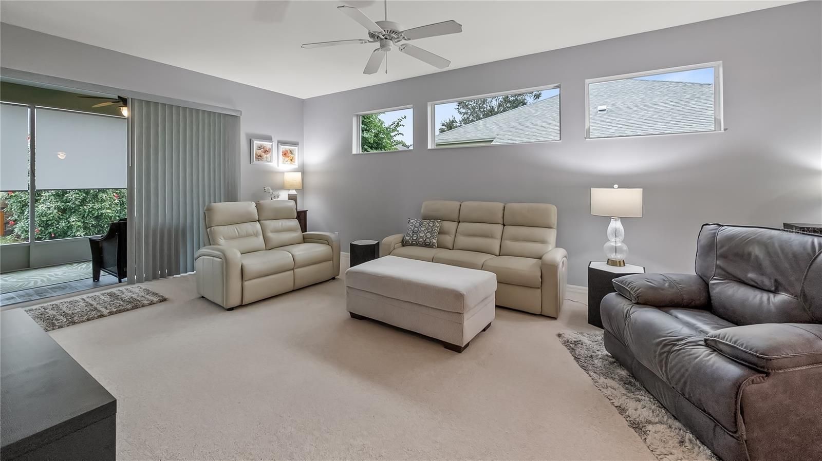 Beautiful 3/2 home in the highly sought after 55+ Royal Highlands Community! This home has been meticulously maintained both inside and out. The minute you arrive you will notice updated landscaping, newer exterior paint and newer roof (2023). Inside features a nice open layout with new paint and ample lighting from all the windows. The Kitchen has bar seating as well as nook for extra seating if needed along with stainless steel appliances and views of the living room and backyard. Refrigerator only 2 years old. There are two spacious bedrooms and a guest bathroom with beautiful new quartz countertops, white shaker cabinets and a walk in shower. The primary room is at the end of the house and is very spacious with sliders that lead to the screened in lanai. The bathroom has walk in shower and beautiful white shaker cabinets and quartz countertops as well. Relax out back on the covered screened in lanai. There's paver patio outside too if you'd like to get some sun! Living in Royal Highlands you will stay busy if needed! There's two pools with one indoor and one outdoor, lighted tennis courts, 18 hole golf course, restaurant and pro shop and a recreation center with numerous activities such as billiards, fitness center, activity rooms, a library, grand hall for social functions, concerts, bocce ball, pickleball, shuffleboard, softball, a driving range and putting practice. The HOA fee also covers cable and high-speed internet for three TVs, plus secure RV and boat storage. Conveniently located near the the turnpike, the airport and Orlando attractions, as well as the full-service Orlando Health South Lake Hospital emergency center.
