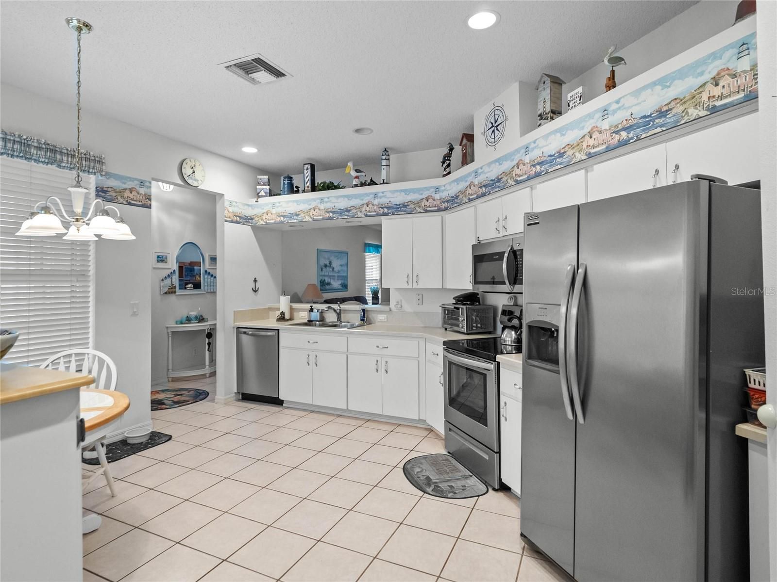 One or more photo(s) has been virtually staged. Coastal Florida Charm in a 55+ golf community is the perfect remedy for the winter blues! Come enjoy this modified Diamond Model, offering three full bedrooms, two bathrooms, Florida Room, screened entry, and slightly oversized garage! This west-facing home has high ceilings, a huge kitchen, and inside laundry! Equipped with spacious rooms, our property boast stainless steel appliances in the kitchen, ample closets, 2020 roof, 2023 HVAC, 2016 water heater, and lots of natural light! The primary quarters have a large footprint and an ensuite bathroom with garden tub, step-in shower, comfort height vanity and commode. The 3rd bedroom can easily become the office, den, or craft room! It's time to call sunny Central Florida home! Royal Highlands is a gated community with a low monthly HOA that includes Xfinity cable and high-speed internet, all underground utilities, and lots of conservation views! Fish off the dock, play pickleball, learn billiards, workout at the fitness center or swim in one of the two pools! On-campus restaurant, driving range, courts, Great Hall dances and live productions, and MORE! Come say "Yes" to the address! Book your tour of the community and this home today!