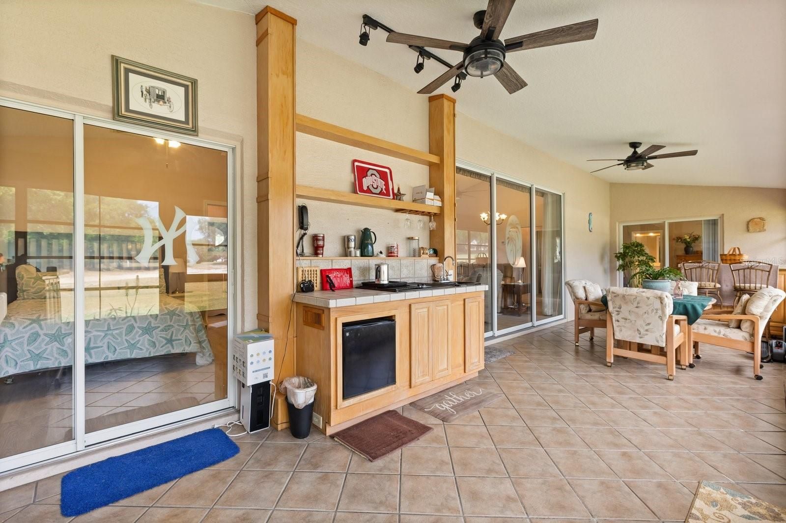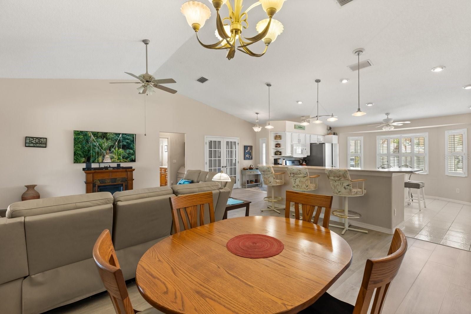 Golf course views, major upgrades, and move-in ready. This is the one you have been waiting for. Beautifully maintained and upgraded home located on the 7th hole of the golf course in the sought-after, gated 55-plus community of Royal Highlands in Leesburg. This 2-bedroom, 2-bath residence with a spacious den, ideal as a third bedroom, offers a bright, open floor plan with luxury vinyl plank flooring throughout, enhanced by vaulted ceilings, plantation shutters, and abundant natural light. The kitchen features a center island, ample cabinetry, and updated appliances, including a new refrigerator and garbage disposal. The living and dining areas flow seamlessly into the expansive 38-foot enclosed lanai, a standout feature of the home, complete with a summer kitchen, two ceiling fans, an additional refrigerator, and space designed for entertaining or relaxing while enjoying peaceful golf course views. The flexible den with double French doors provides additional living space and can easily function as a third bedroom, home office, or hobby room. Recent updates include a new roof in 2026, new attic insulation, two solar attic fans, a whole-house Culligan water purification system, and updated window treatments throughout. An exterior kitchenette and additional storage options further enhance the home’s functionality. Royal Highlands is a resident-owned, gated 55-plus community offering indoor and outdoor pools, a fitness center, clubhouse, restaurant, and a variety of social activities. The 18-hole golf course is available with a separate membership. HOA is $229 per month and includes cable, internet, and additional community benefits. Homes with this level of upgrades, space, and golf course positioning are in high demand. Schedule your private showing today to experience it in person.