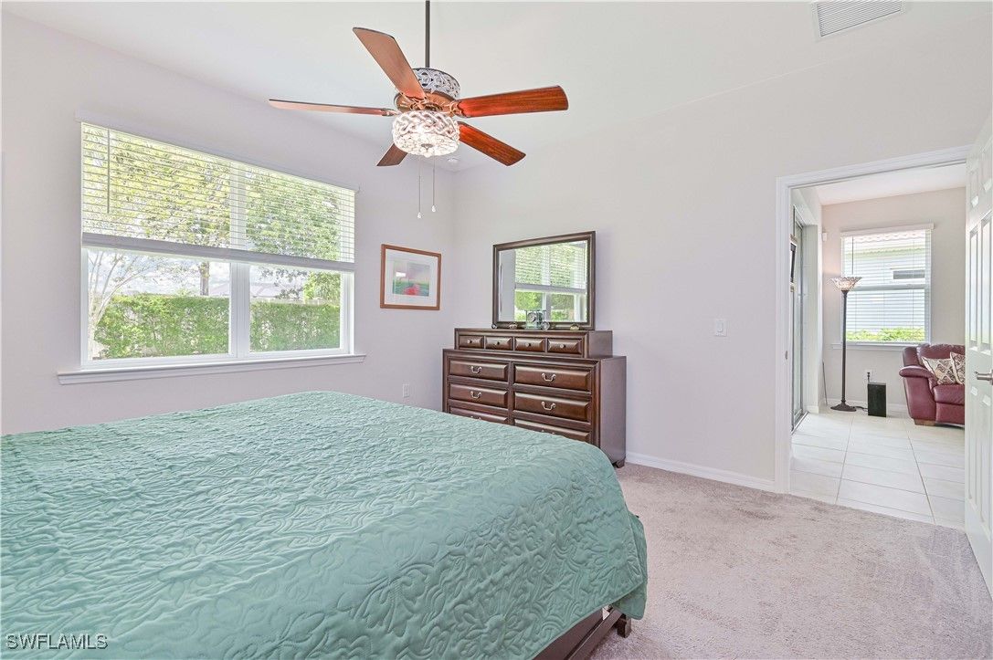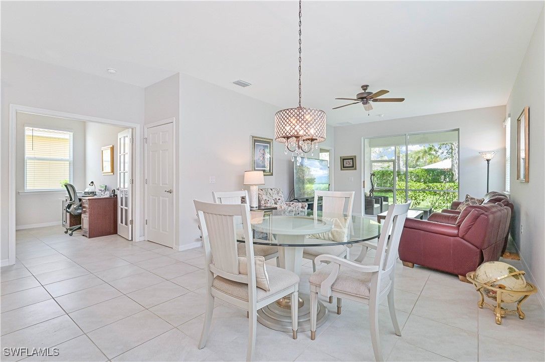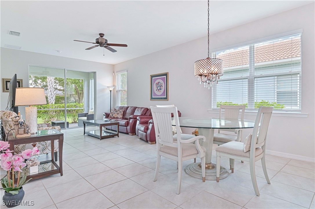 Welcome to your dream home in the beautiful Cascades at River Hall, a premier 55+ community in Southwest Florida. This single family home boasts 3 bedrooms, 2 bathrooms, and a spacious 2 car garage. The interior features luxurious granite counters, stainless steel appliances, and a mix of carpet and tile flooring throughout. The kitchen is a chef's delight with 42 inch white cabinets, a large walk-in pantry, and plenty of space for entertaining. The furnishings are negotiable, allowing you to move right in and start enjoying all that this active adult community has to offer. Step outside and take advantage of the community pool, spa, fitness room, pickleball, tennis courts, and bocce courts. The HOA includes all lawn care, cable, internet, and access to the resort-style amenities, making it easy to relax and enjoy your retirement years. With a variety of social activities and events, you'll never be bored in this vibrant community. Don't miss out on the opportunity to live in this stunning home in Cascades at River Hall. Schedule a showing today and start living the Florida lifestyle you've always dreamed of.