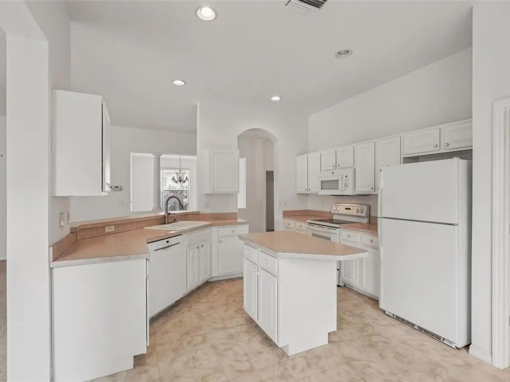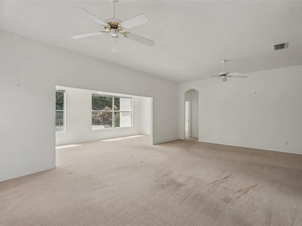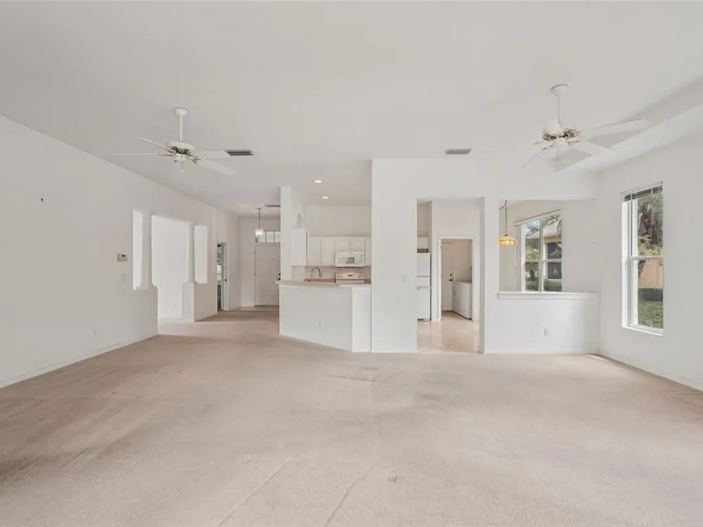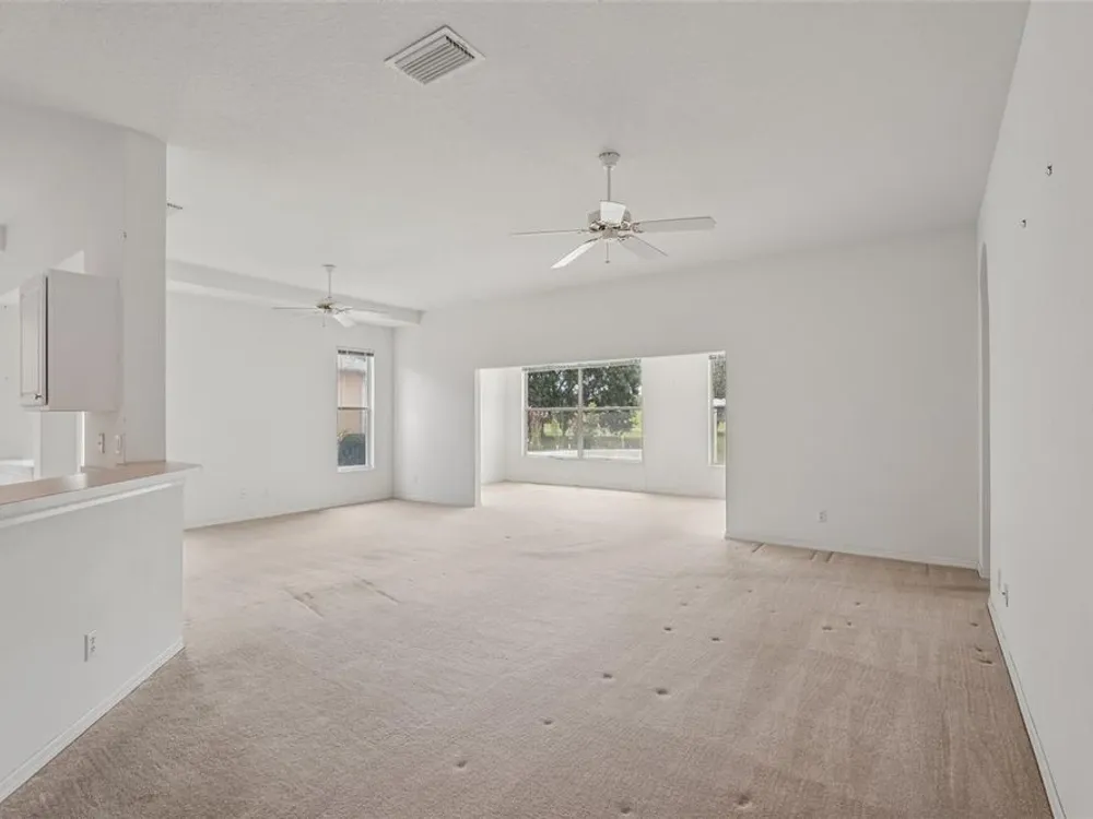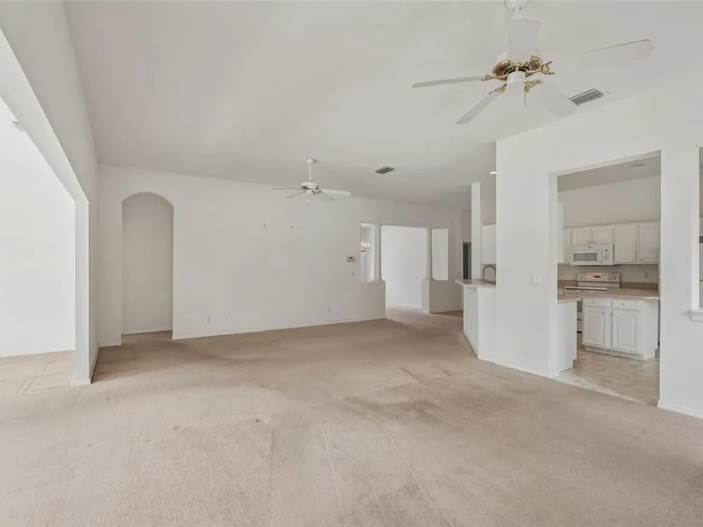 - Ceiling Fan(s), Eat-in Kitchen, High Ceilings, Kitchen/Family Room Combo, Living/Dining Room, Open Floorplan, Solid Surface Counters, Solid-Wood Cabinets