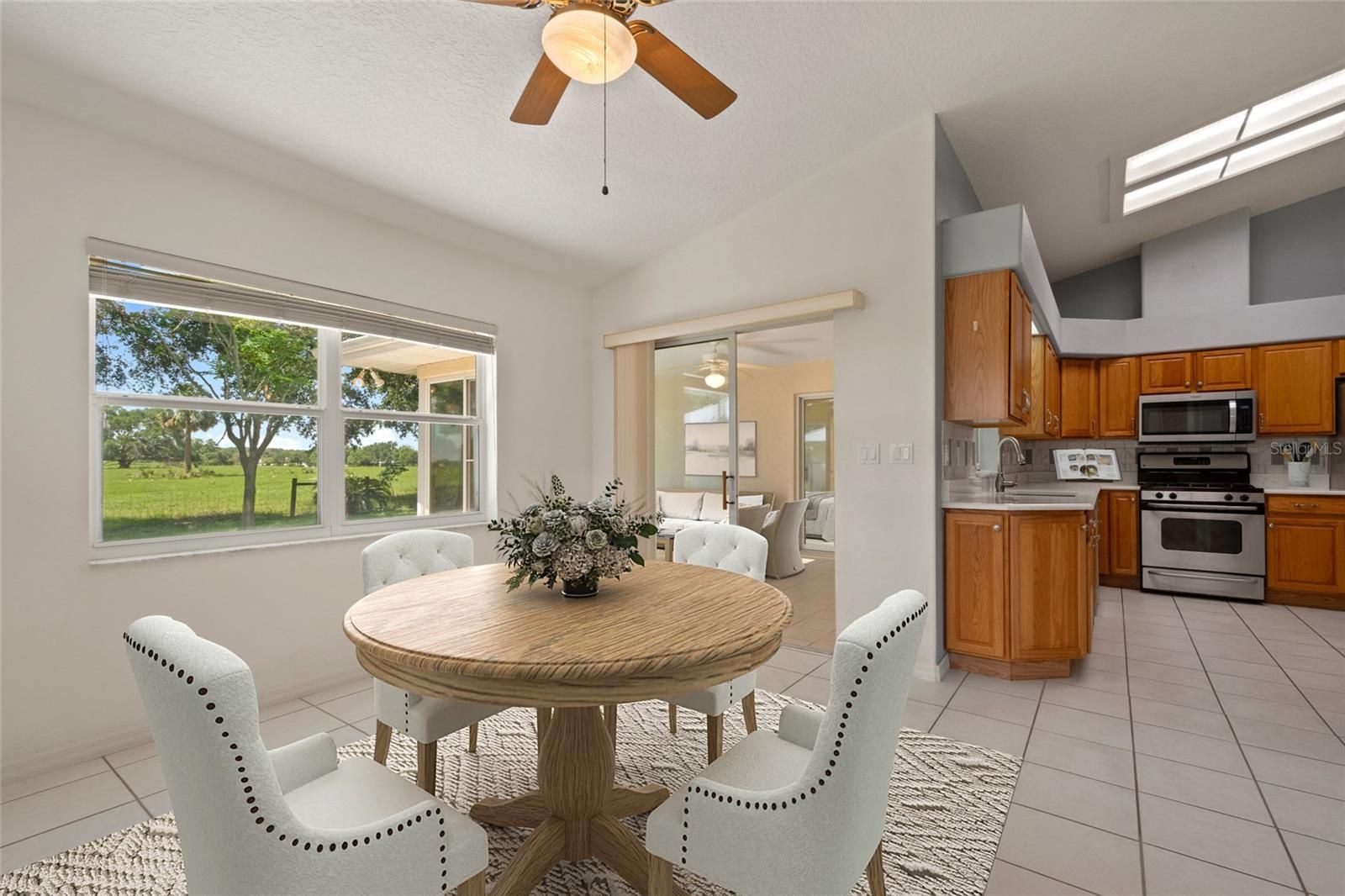 One or more photo(s) has been virtually staged. This beautifully expanded Baron model is full of thoughtful upgrades and custom details throughout. The spacious kitchen features warm oak cabinetry, a convenient eat-at bar counter, upgraded appliances, a built-in microwave, and a charming window over the sink that fills the space with natural light and beautiful backyard views. The inviting main suite features a spacious walk-in closet and a newly remodeled walk-in shower equipped with accessibility bars for added comfort. The laundry room is well-equipped with a washer and dryer, a laundry sink, and extra space for a freezer or home office setup. Enjoy meals in the bright dining room, complete with a built-in hutch and plenty of windows to let the sunshine in. The large enclosed lanai with glass windows provides a peaceful view of the open space beyond, ideal for relaxing or entertaining. You’ll also appreciate features such as a whole-house fan, water softener, screened front entry and extra-large windows in the living room, which enhance the home's open and airy feel. The roof is 2015, the air conditioner is 2019 and the water heater is 2019. Royal Highlands is a premier community with a 24-hour professionally staffed gate, two pools one indoor and one outdoor, lighted tennis courts, an 18-hole golf course, restaurant and pro shop and a recreation center with numerous activities including a library, billiards, fitness center, card rooms and more. The grand hall hosts social functions, concerts and plays. enjoy bocce ball, pickleball, shuffleboard, a softball field, driving range and putting practice. HOA also includes Comcast cable, high-speed internet, and secure RV/boat parking and storage. Easy turnpike access, close to the airport and Orlando attractions, plus a full-service Southlake Hospital Emergency Center nearby.