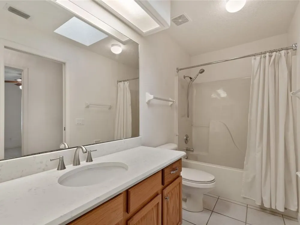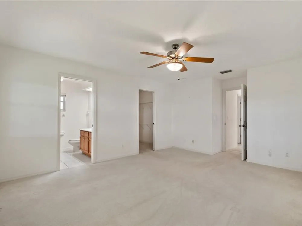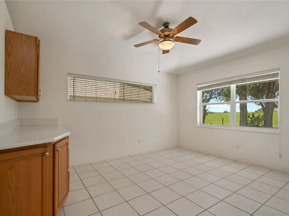 - Cathedral Ceiling(s), Ceiling Fan(s), Eat-in Kitchen, High Ceilings, Main Level Primary, Solid Surface Counters, Solid-Wood Cabinets, Thermostat, Walk-In Closet(s), Window Treatments