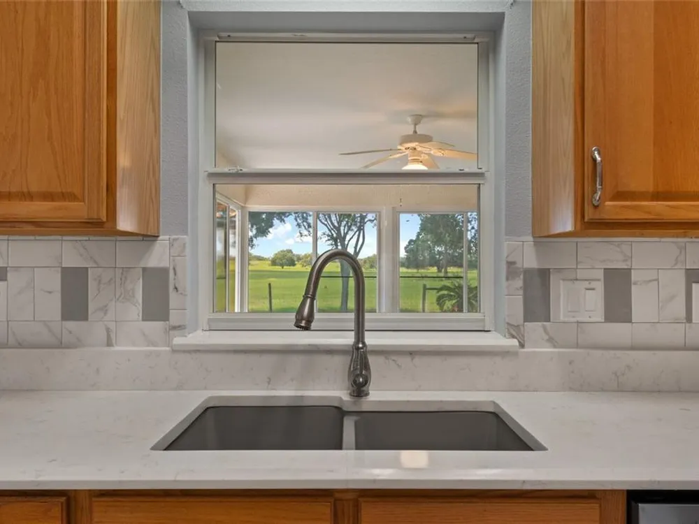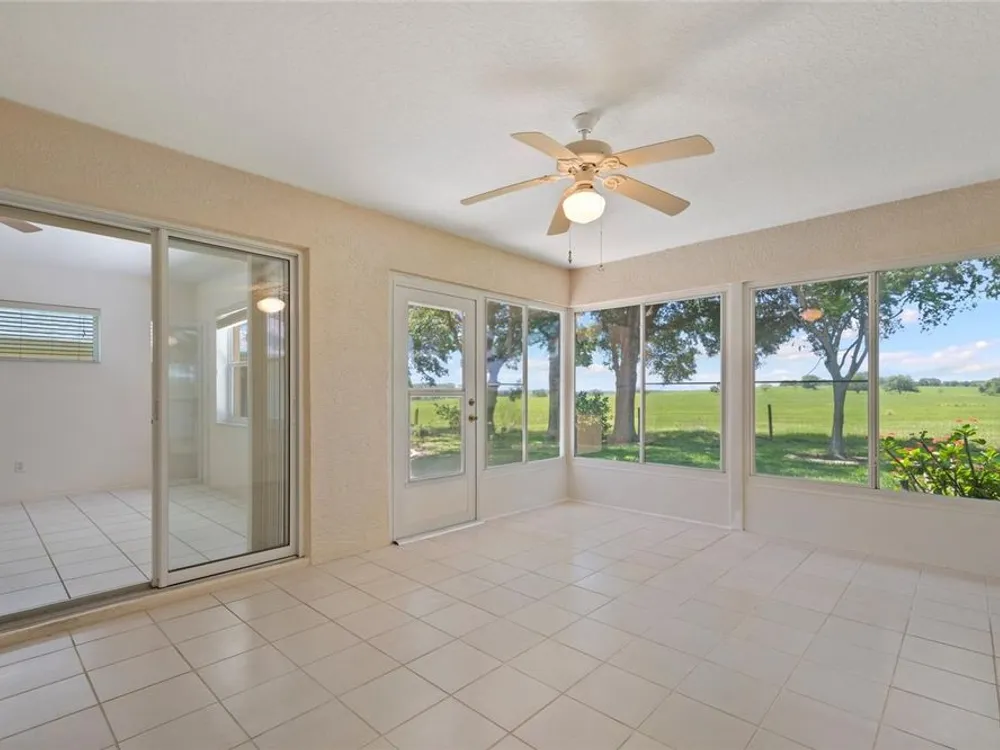 This beautifully expanded Baron model is full of thoughtful upgrades and custom details throughout. The spacious kitchen features warm oak cabinetry, a convenient eat-at bar counter, upgraded appliances, a built-in microwave, and a charming window over the sink that fills the space with natural light and beautiful backyard views. The inviting main suite features a spacious walk-in closet and a newly remodeled walk-in shower equipped with accessibility bars for added comfort. The laundry room is well-equipped with a washer and dryer, a laundry sink, and extra space for a freezer or home office setup. Enjoy meals in the bright dining room, complete with a built-in hutch and plenty of windows to let the sunshine in. The large enclosed lanai with glass windows provides a peaceful view of the open space beyond, ideal for relaxing or entertaining. You’ll also appreciate features such as a whole-house fan, water softener, screened front entry and extra-large windows in the living room, which enhance the home's open and airy feel. The roof is 2015, the air conditioner is 2019 and the water heater is 2019. Royal Highlands is a premier community with a 24-hour professionally staffed gate, two pools one indoor and one outdoor, lighted tennis courts, an 18-hole golf course, restaurant and pro shop and a recreation center with numerous activities including a library, billiards, fitness center, card rooms and more. The grand hall hosts social functions, concerts and plays. enjoy bocce ball, pickleball, shuffleboard, a softball field, driving range and putting practice. HOA also includes Comcast cable, high-speed internet, and secure RV/boat parking and storage. Easy turnpike access, close to the airport and Orlando attractions, plus a full-service Southlake Hospital Emergency Center nearby.