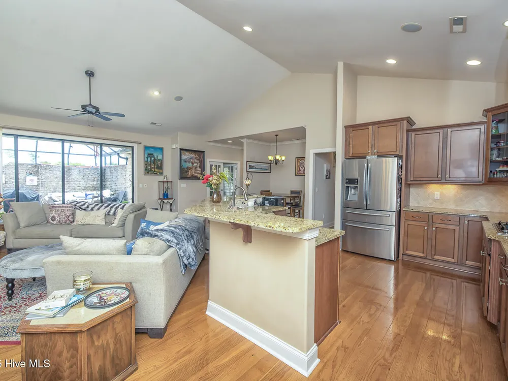 - Blinds/Shades, Solid Surface, Whirlpool, Walk-In Closet(s), Vaulted Ceiling(s), Pantry, Master Downstairs, Kitchen Island, High Ceilings, Ceiling Fan(s)