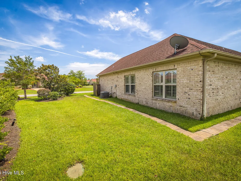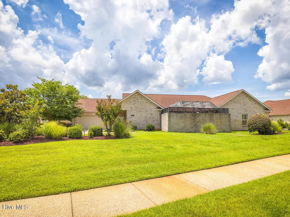 Welcome to effortless living in the sought-after community of Villamar at Brunswick Forest! This beautifully maintained one-level home offers 3 bedrooms, 2.5 bathrooms, a dedicated office, and a seamless indoor-outdoor flow that's perfect for entertaining.The open-concept kitchen, dining, and living areas extend through telescoping glass doors to a private, covered lanai--your own outdoor retreat. The home has been upgraded to natural gas and includes a Rinnai tankless water heater, Jenn-Air gas cooktop, and fireplace. The kitchen features granite countertops, a KitchenAid dishwasher, and a convenient hot water dispenser.The luxurious primary suite is a true sanctuary, complete with granite-topped dual vanities, a built-in makeup station, a spa-like tiled shower with dual showerheads, and a generous walk-in closet. Plantation shutters add timeless charm throughout the home.Two additional heated and cooled flex rooms are located just off the garage--ideal for a hobby space, second office, gym, or guest overflow (not included in square footage).Enjoy all the perks of the Brunswick Forest lifestyle: championship golf, tennis and pickleball courts, multiple pools, a state-of-the-art fitness center, scenic walking trails, and so much more. This is more than a home--it's a lifestyle.