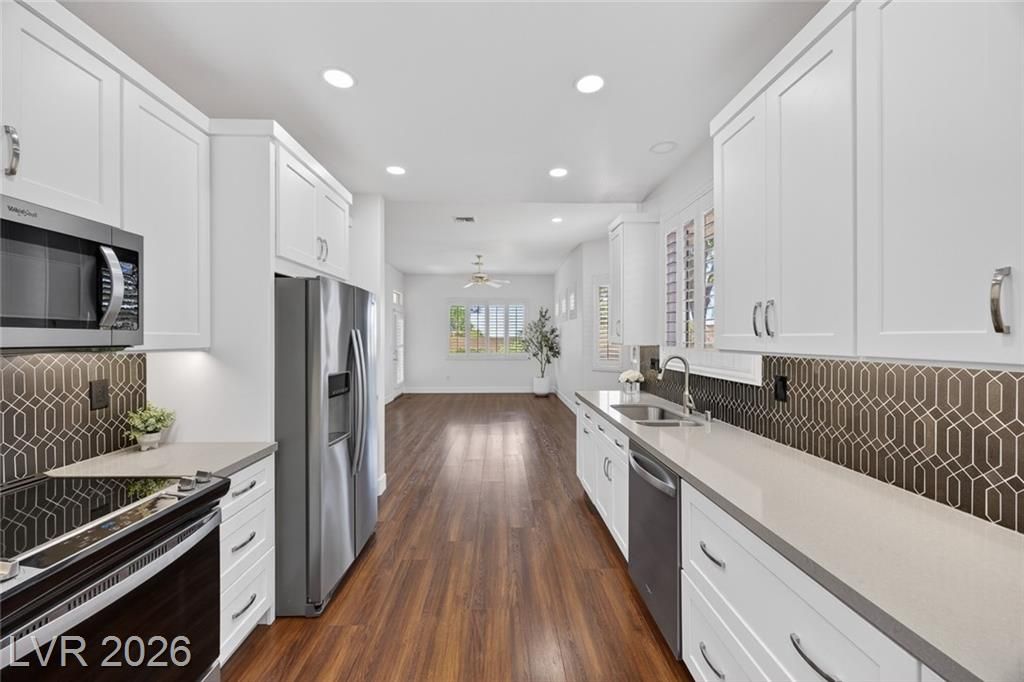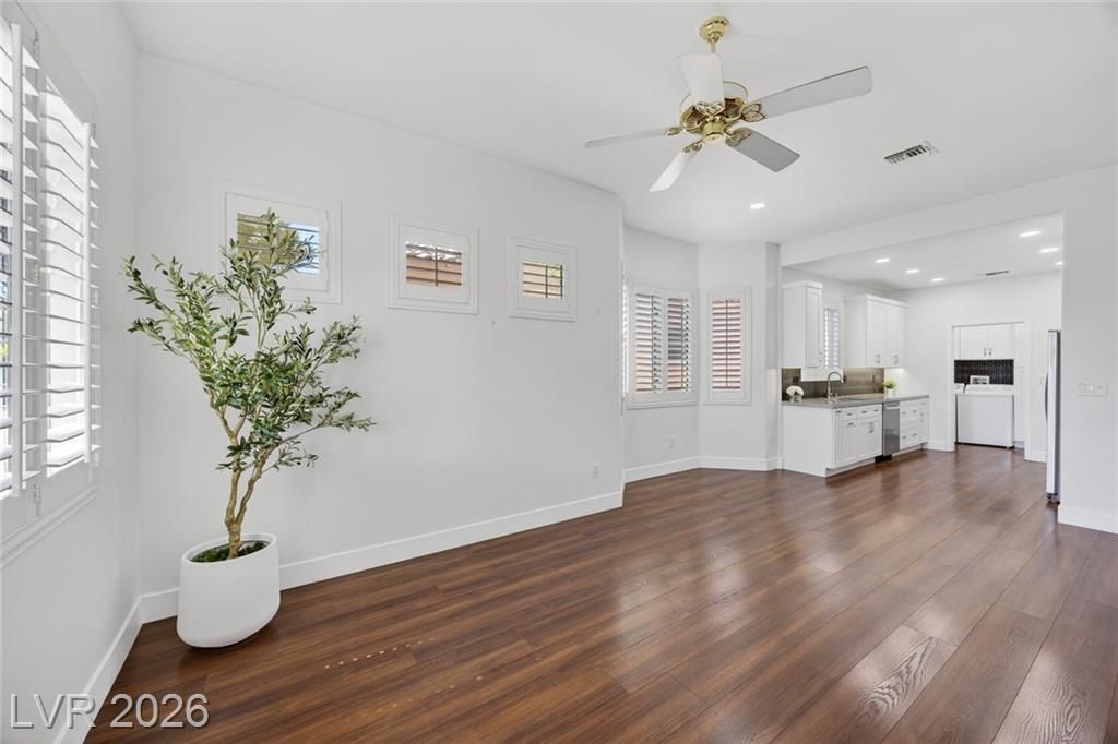 Fully renovated and move-in ready, this home has been upgraded to the highest quality. Natural light fills every room and high ceilings make the space feel larger than its square footage. Flexible layout gives you different areas to live in without feeling too crowded or open. Surrounded by towering mountains, mature shade trees, and a Strip view out the entire East side, this Home feels close to nature and gives you good energy. Nestled between 3 highly rated golf courses, many owners ditch their cars for carts to take leisurely drives. Sun City Summerlin is the premier 55+ community for Active Adults who can enjoy 3 separate clubhouses with over 50 Hobbyist Clubs such as woodworking, glass staining, ceramics, computer clubs, and more! Visit each clubhouse's unique pools, spas, pickleball courts, putt putt golf, live theater, restaurants, and unlimited activities to socialize and craft the lifestyle you've been dreaming of. Schedule a tour to see this beautiful home today!