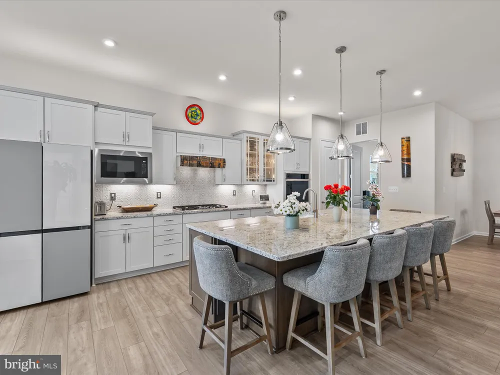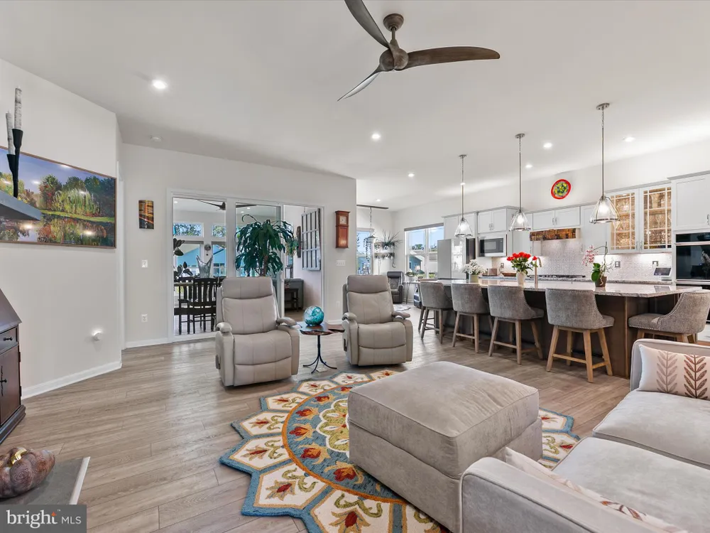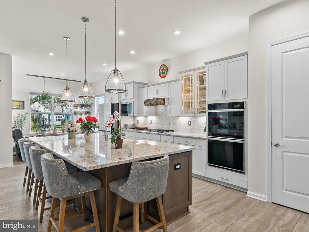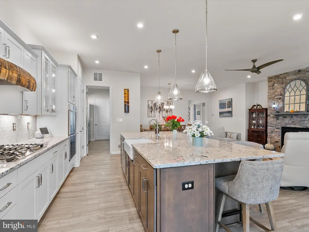 Magnificent 4 Bedroom 3 full Bath home with impressive upgrades in this Active Adult 55+ amenity rich community! This home features an expansive open-concept layout that maximizes both luxurious living and entertaining. With generous square footage, each room flows seamlessly into the next, creating an open and inviting atmosphere between the Kitchen, Dining Room , Living Room, Reading Room and Sunroom. From the moment you step inside, you'll be captivated by the exquisite details and thoughtful upgrades that make this home truly exceptional both inside and out! Chef's kitchen, double ovens, built-in microwave, large pantry with built-ins, a sizeable granite island, granite countertops, lighted glass display cabinet and gas stove. Butler's Pantry and 1st floor laundry room with built-in cabinets and laundry folding area. The split bedroom plan ensures privacy from guests and the Primary ensuite. Spacious Living Room with stone fireplace. The Sunroom is equipped with both heating and cooling for year-round comfort and features time-programmable Hunter Douglass curtains. Step out to the inviting outdoor space with paver patio, grill with piped in gas line and granite prep area as well as upgraded landscaping, all overlooking a beautiful and tranquil pond with fountain. Piped gas line for future home generator has also been added. The finished basement serves as a perfect entertainment area, featuring a spacious Family Room with sink and wet bar, bedroom, bath, flex room, utility room and an abundance of storage. Attached 2 car garage with newly epoxied floor. LPV flooring, recessed lighting, heated bidets, irrigation well and system. This home seamlessly blends luxury and practicality, making it perfect for those who cherish both elegance and comfort. Enjoy the multitude of amenities offered including: pickle ball, bocce, watersports, yoga and more! Don’t miss the chance to make this stunning property your own!