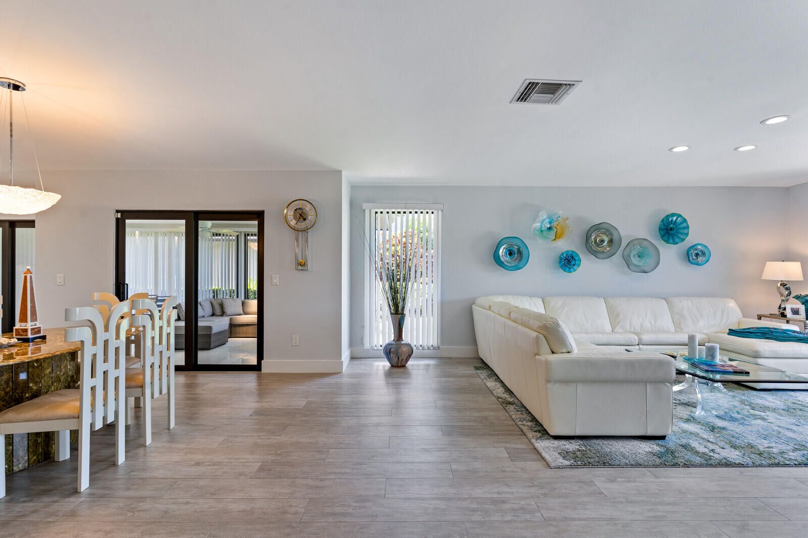 Price Improvement! This remodeled and upgraded 3-bedroom Villa is in the sought-after Vistas of Boca Lago community. This stunning home features expansive entertaining spaces filled with natural light and offers views of the lake and golf course. The double door entry opens into a generous foyer leading to the beautifully updated kitchen with shaker cabinetry, quartz counters and stainless-steel appliances. The open concept floor plan, with a generous Florida room, is perfect for entertaining. Additional features include porcelain tile flooring throughout, impact windows and doors, LED lighting and a wet bar with a wine fridge. New roof being installed this fall, with no assessment attached. This home will not disappoint!
