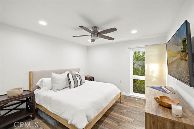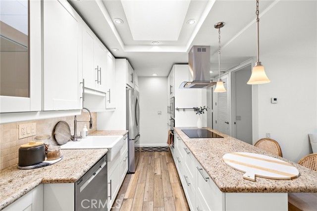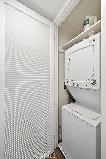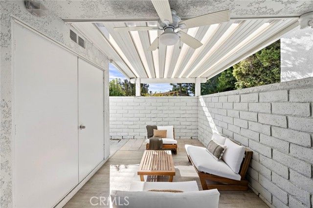Welcome to this beautifully remodeled 2-bedroom, 1-bath condo in Laguna Woods Village, one of South Orange County's most sought-after 55+ gated communities designed for active living. This ground-level Monterey floor-plan has NO STAIRS with the added privacy of no one above or below. A spacious private patio welcomes you as you enter the home, immediately setting the tone for relaxed California living. Inside, the kitchen and living areas have been completely reimagined with a modern open-concept design, showcasing granite countertops, a large peninsula that opens to the living area, coordinating new appliances (including the refrigerator!), and abundant storage with extra-large drawers and pull-out pantry shelving. Porcelain tile flooring with a wood plank design and recessed lighting run throughout the home, enhancing its modern, cohesive design. Dual-pane windows provide added energy efficiency and comfort, while central air conditioning and heating with individual climate controls in each room ensures personalized comfort year-round. Enjoy the convenience of indoor laundry with a stackable washer and dryer that's also included! The extra-large covered private patio serves as a true extension of the living space. It's perfect for enjoying Southern California's indoor-outdoor l
