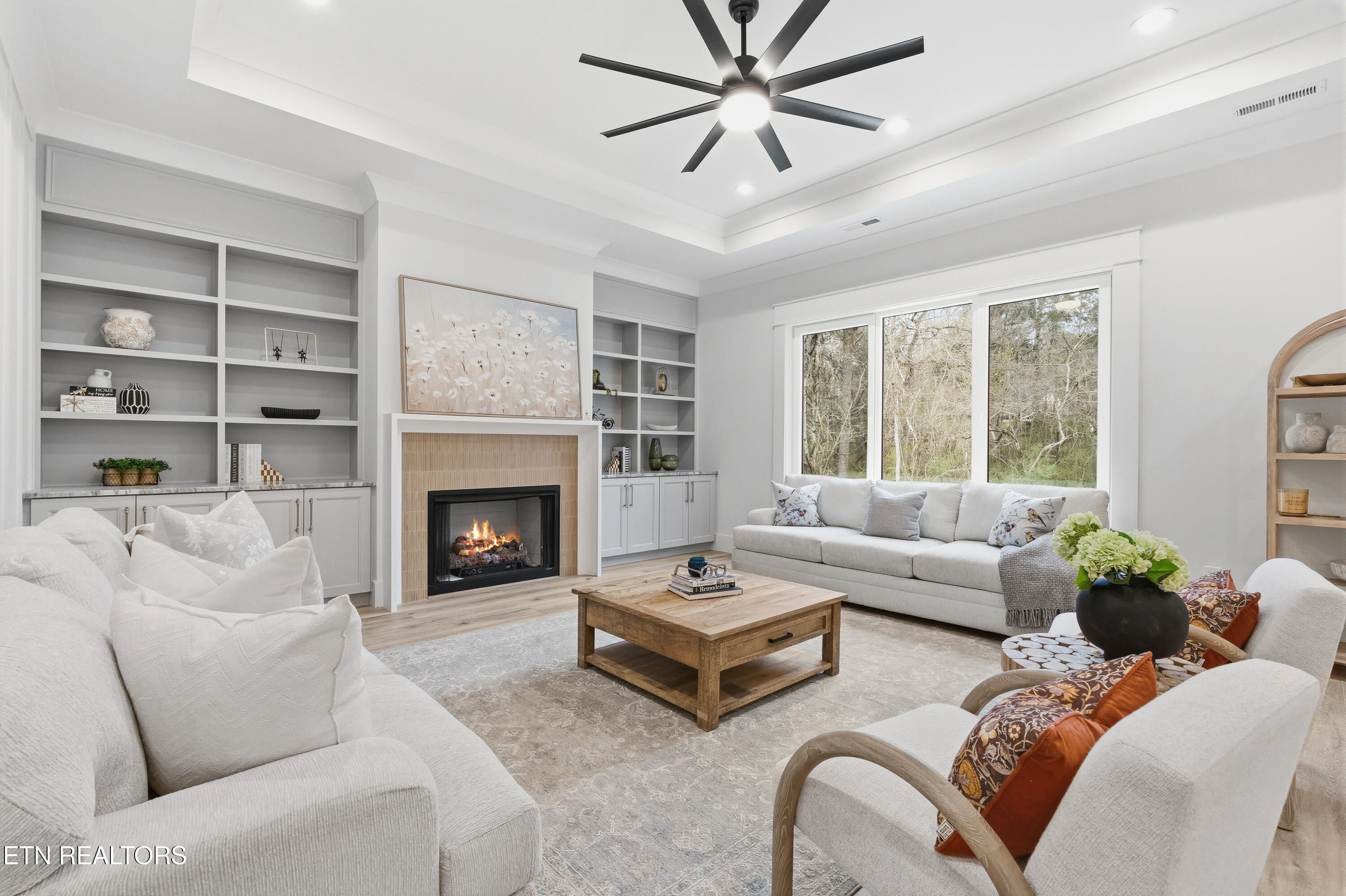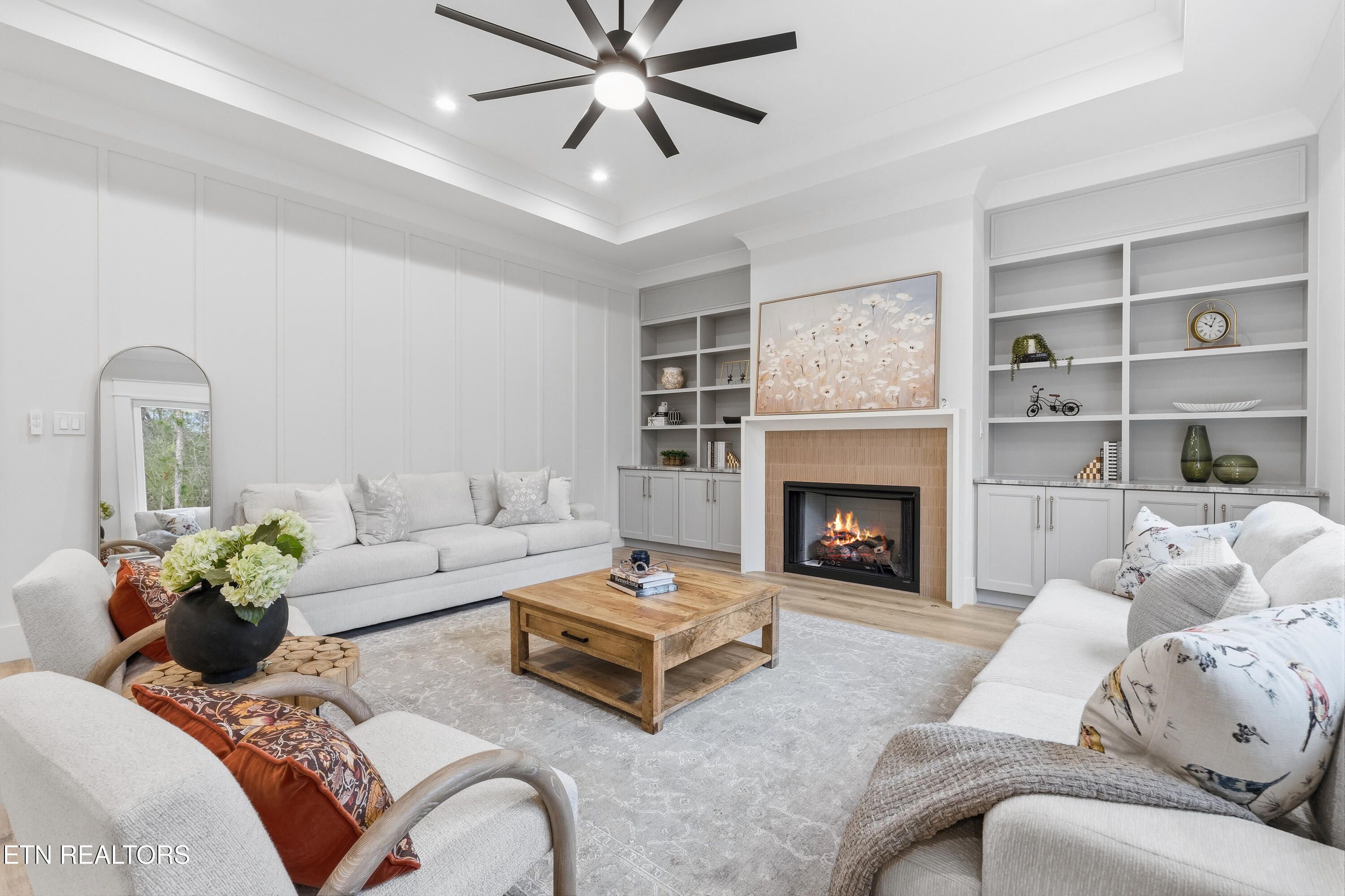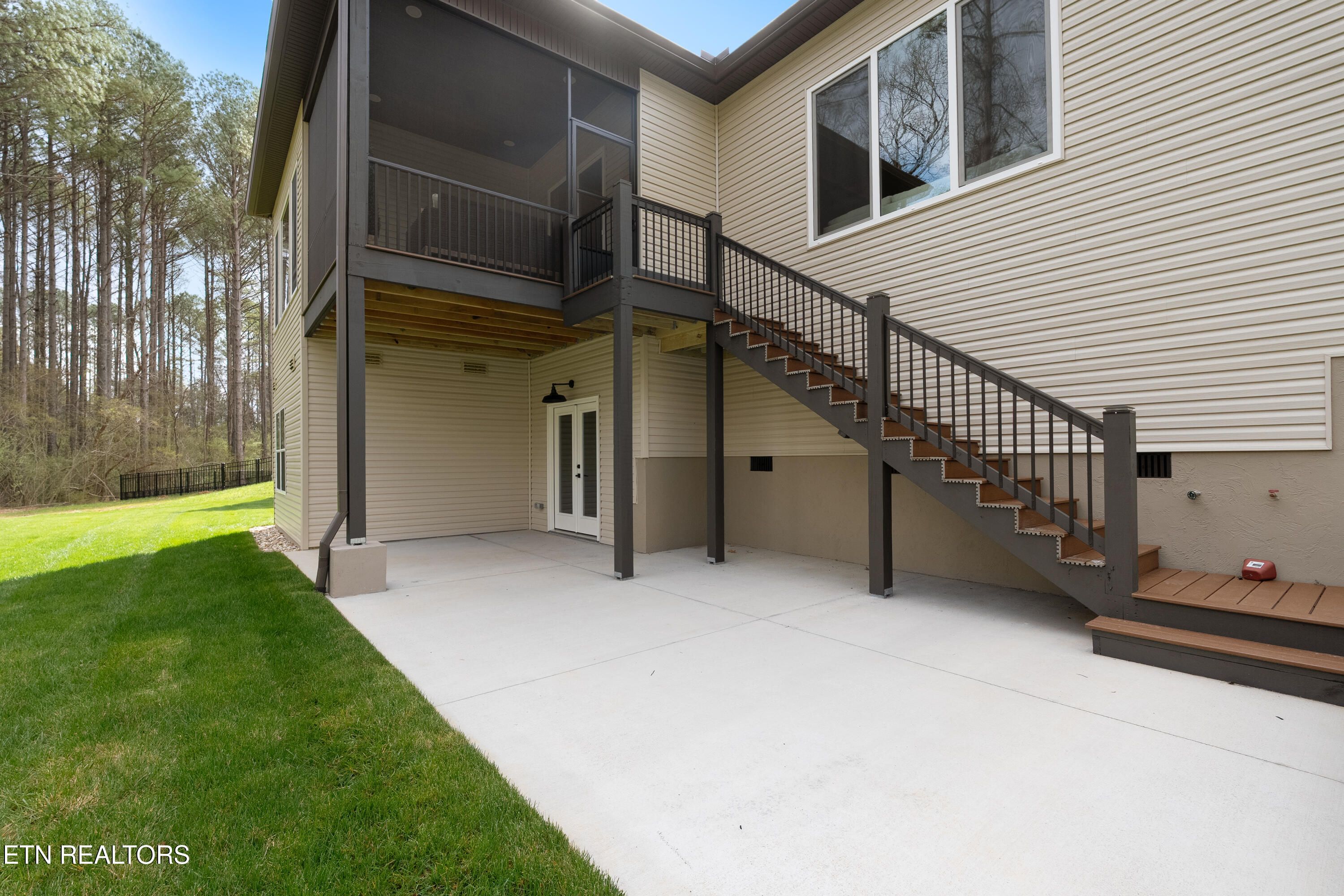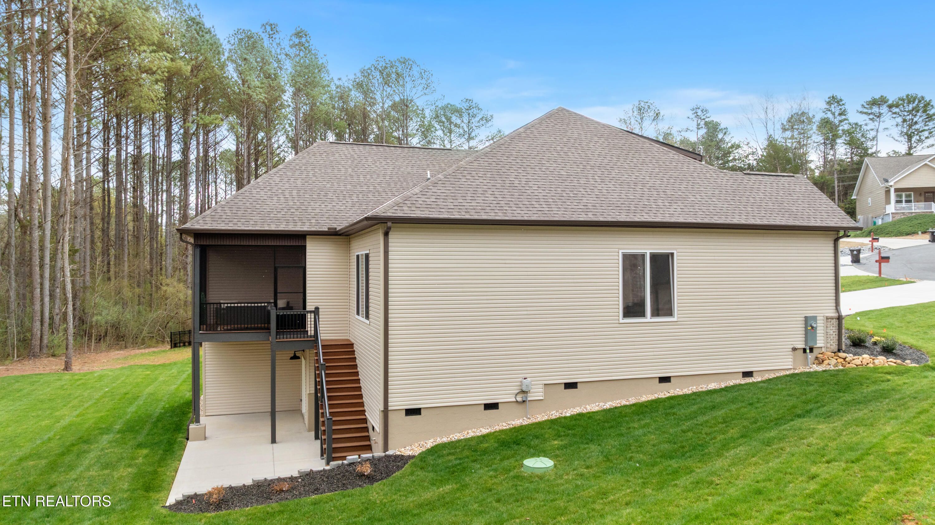 Spacious and thoughtfully designed 3-bedroom + bonus room home with true basement potential, situated in a cul-de-sac and ready for its first-time owners. This home showcases clean, timeless finishes, a functional layout, and excellent flexibility for future expansion. Welcoming foyer with wainscoting and a built-in bench creates a functional drop zone upon entry. Open living room features a tray ceiling, accent wall, gas fireplace framed by custom built-ins, and expansive windows overlooking a wooded backdrop that fill the home with natural light, enhanced by European tilt & turn windows throughout. Chef's kitchen blends style and function with soft-close cabinetry, quartz countertops, a beautifully tiled backsplash, oversized island, LG Studio white appliances, gas range, and elegant lighting. Large primary suite offers a serene retreat with oversized windows, tray ceiling accented by decorative beams, custom wall detailing and sconces, and a spa-inspired bath featuring double vanities, tiled mirror wall, large walk-in shower, drop-in soaking tub, and a spacious custom walk-in closet with built-in shelving and drawers. Wide-plank LVP flooring flows throughout the home. Well-appointed laundry room includes extra cabinetry, utility sink, and washer/dryer connections. Dedicated drop zone by the garage adds everyday convenience. Bonus room provides flexible living space with a closet and additional storage area, ideal for a home office, media room, or guest space. Outdoor living is effortless with a screened deck, composite decking, and a large concrete patio below, perfect for relaxing or entertaining while enjoying the private backyard and common area beyond. Tall crawlspace with a full concrete pad offers exceptional storage and true potential for future basement conversion, with ample height and accessibility, ideal for adding living space, a gym, or recreation area. Quality craftsmanship, flexible living, and room to grow make this an exceptional opportunity in Chatuga Coves. Schedule a showing today. Buyer to pay the one-time Loudon County Impact tax $1.00 per finished sq.