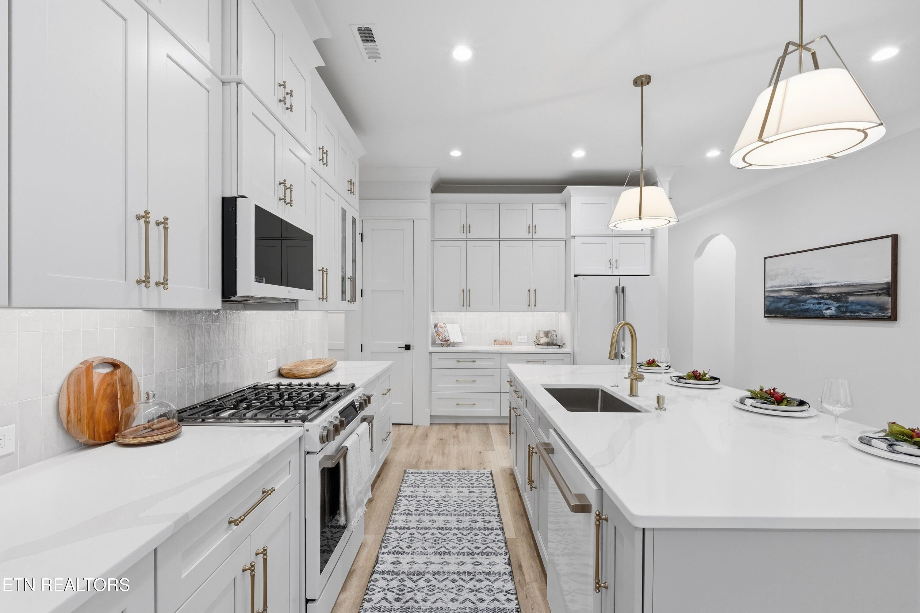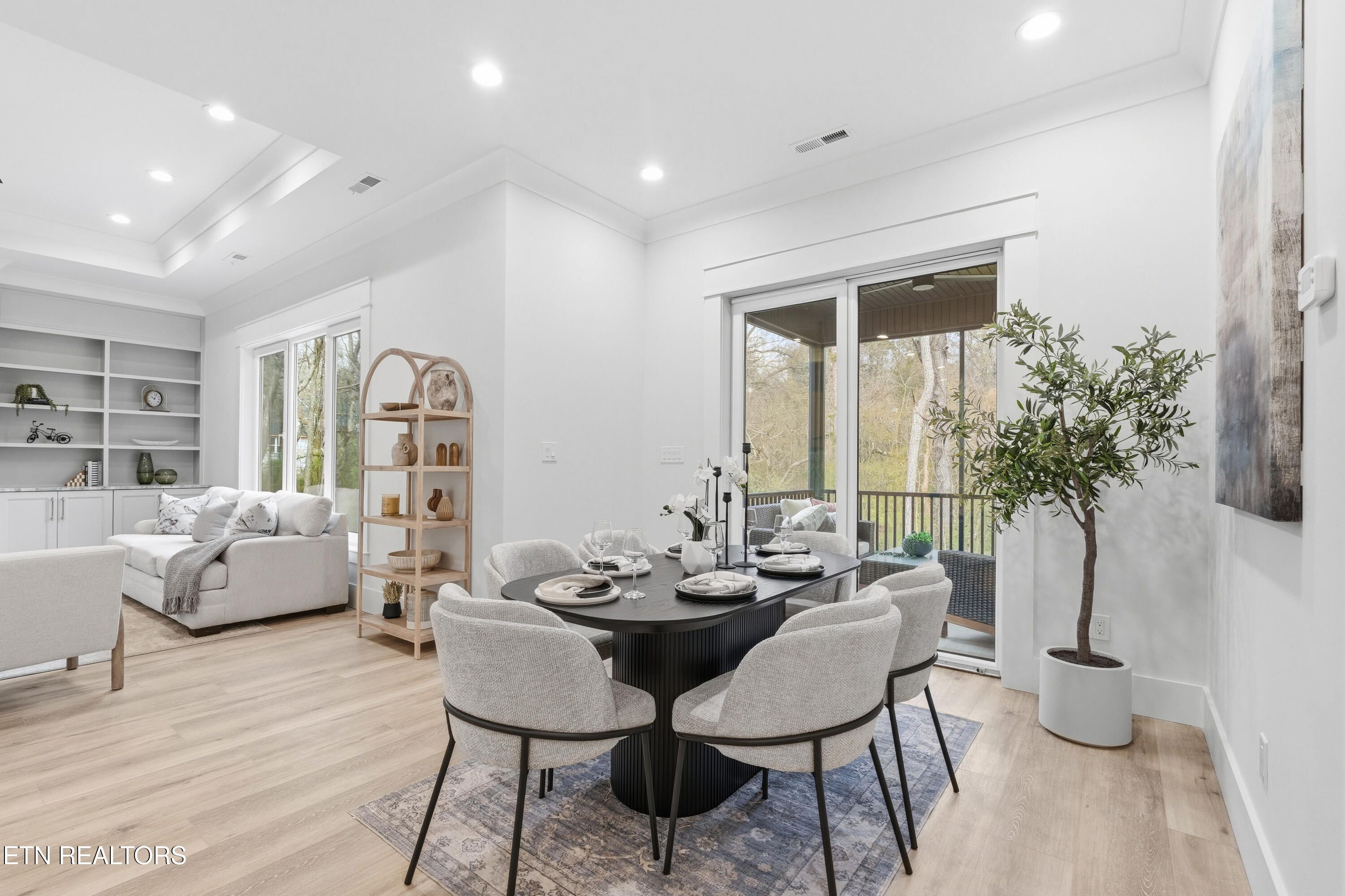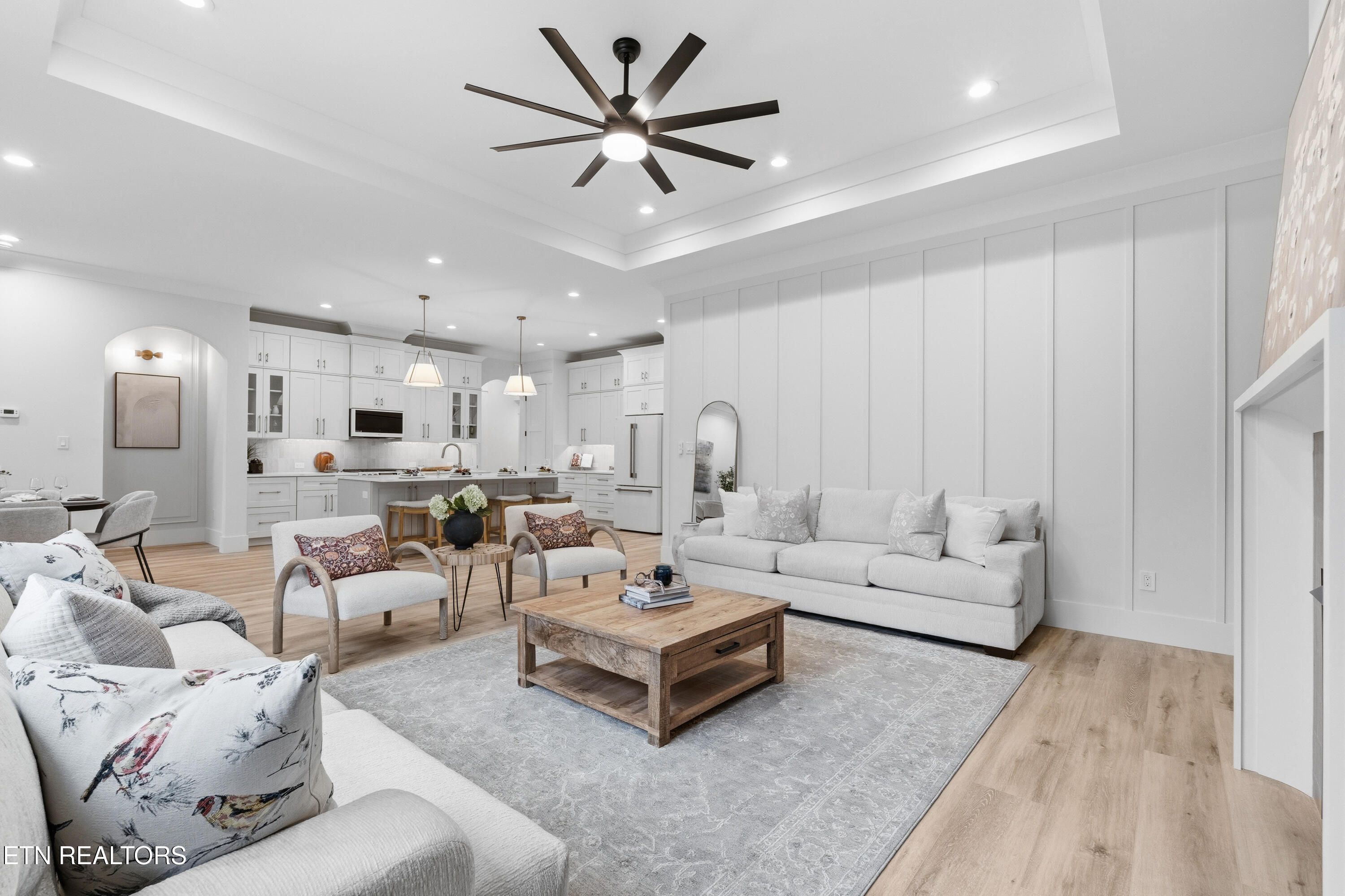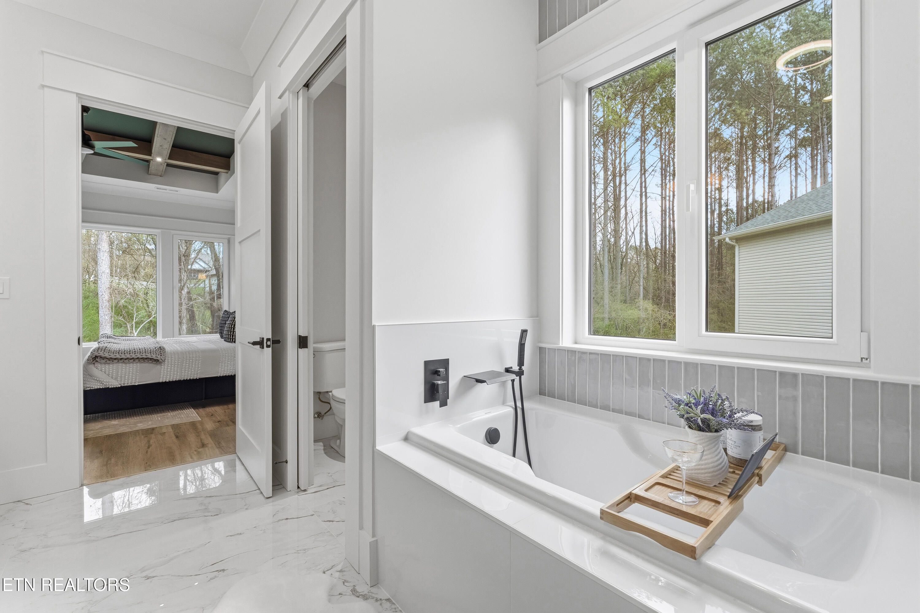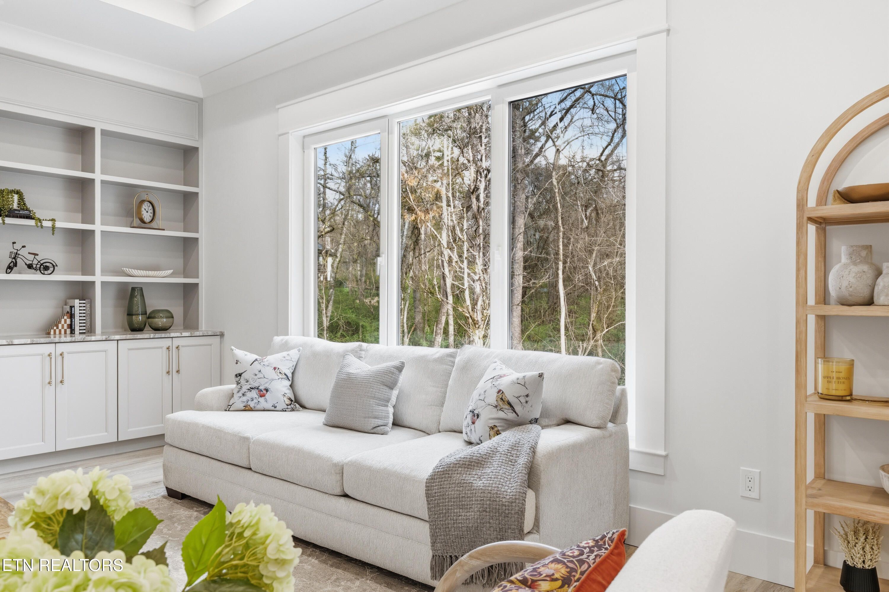 Spacious and thoughtfully designed 3-bedroom + bonus room home with true basement potential, situated in a cul-de-sac and ready for its first-time owners. This home showcases clean, timeless finishes, a functional layout, and excellent flexibility for future expansion. Welcoming foyer with wainscoting and a built-in bench creates a functional drop zone upon entry. Open living room features a tray ceiling, accent wall, gas fireplace framed by custom built-ins, and expansive windows overlooking a wooded backdrop that fill the home with natural light, enhanced by European tilt & turn windows throughout. Chef's kitchen blends style and function with soft-close cabinetry, quartz countertops, a beautifully tiled backsplash, oversized island, LG Studio white appliances, gas range, and elegant lighting. Large primary suite offers a serene retreat with oversized windows, tray ceiling accented by decorative beams, custom wall detailing and sconces, and a spa-inspired bath featuring double vanities, tiled mirror wall, large walk-in shower, drop-in soaking tub, and a spacious custom walk-in closet with built-in shelving and drawers. Wide-plank LVP flooring flows throughout the home. Well-appointed laundry room includes extra cabinetry, utility sink, and washer/dryer connections. Dedicated drop zone by the garage adds everyday convenience. Bonus room provides flexible living space with a closet and additional storage area, ideal for a home office, media room, or guest space. Outdoor living is effortless with a screened deck, composite decking, and a large concrete patio below, perfect for relaxing or entertaining while enjoying the private backyard and common area beyond. Tall crawlspace with a full concrete pad offers exceptional storage and true potential for future basement conversion, with ample height and accessibility, ideal for adding living space, a gym, or recreation area. Quality craftsmanship, flexible living, and room to grow make this an exceptional opportunity in Chatuga Coves. Schedule a showing today. Buyer to pay the one-time Loudon County Impact tax $1.00 per finished sq.