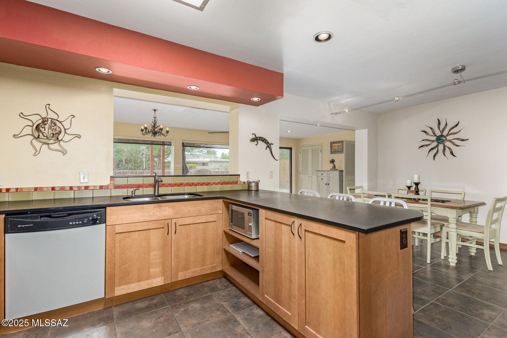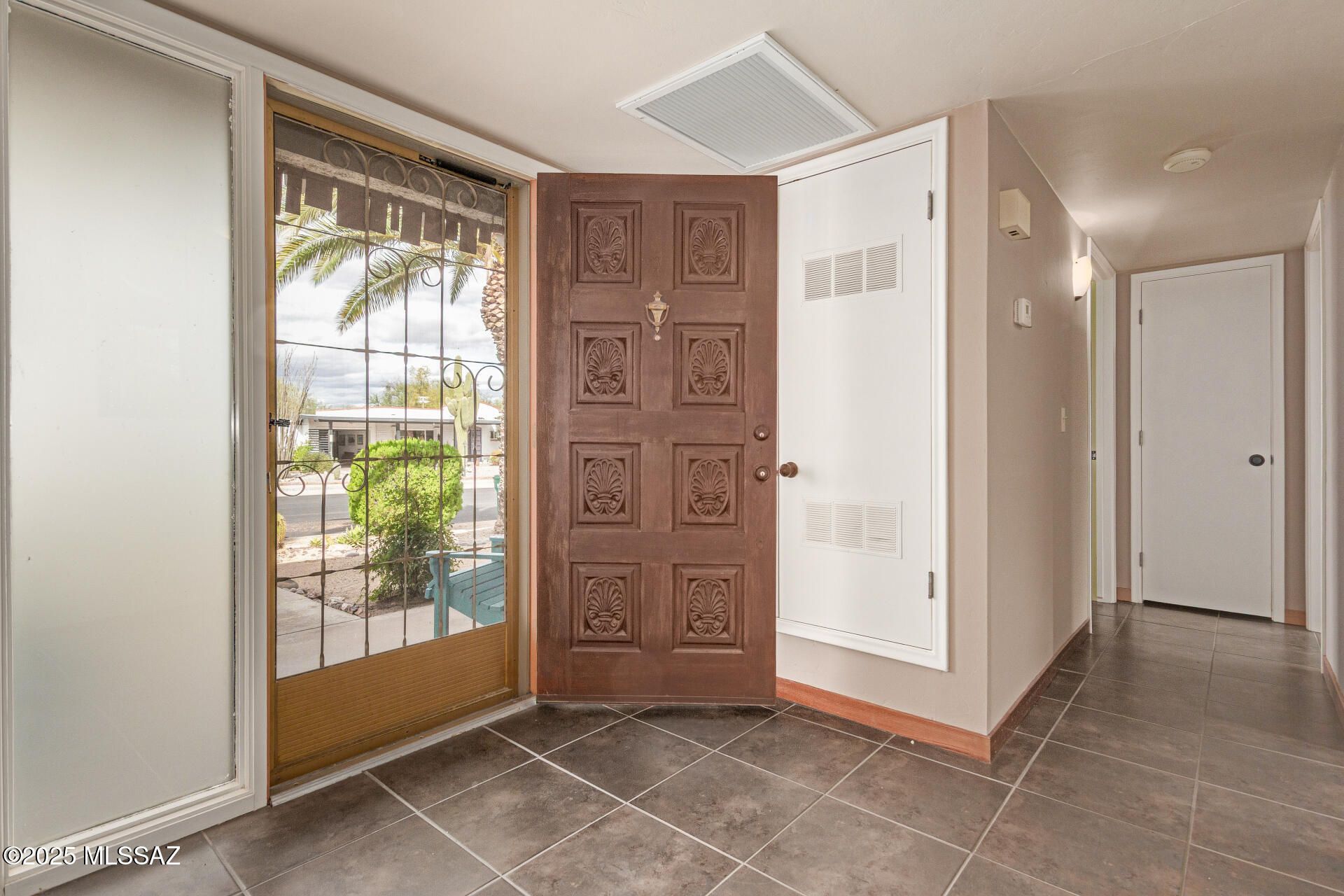 MOUNTAIN VIEWS FROM YOUR BACKYARD! This home offers the best of what southwest living in Green Valley is all about. It begins with the charm of the neighborhood and extends to the inside of the home. There is NO CARPET in this home. Updated, neutral ceramic tile runs throughout the entire home. The kitchen is spacious and includes stainless steel appliances, soap stone counter tops, open shelving, a breakfast bar, and hardwood cabinetry! Moving toward the back of the home you'll find a window packed Arizona room with an adjoining laundry room/office and a man cave discreetly hidden behind shuttered doors. The bedrooms are tastefully painted, and both the primary bathroom and the second bathroom have been updated to reflect the taste and style of the rest of the home. Easy care landscaping