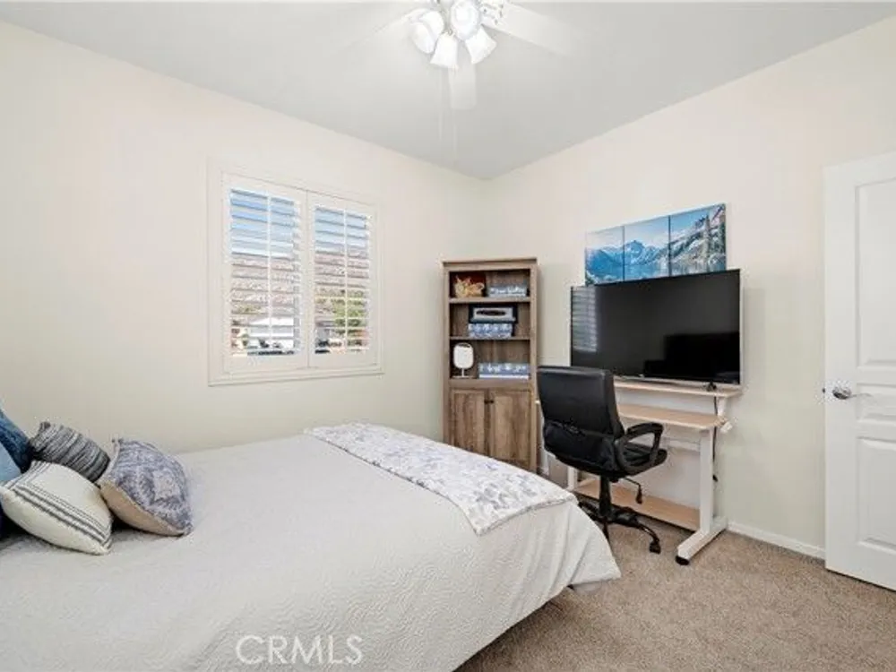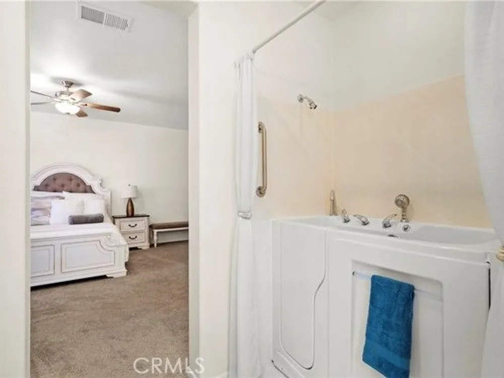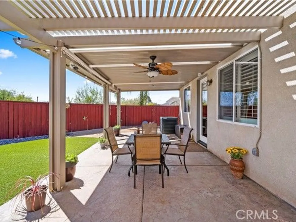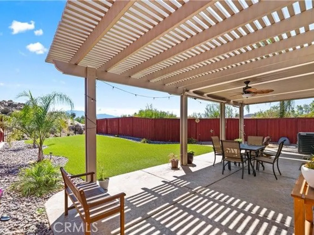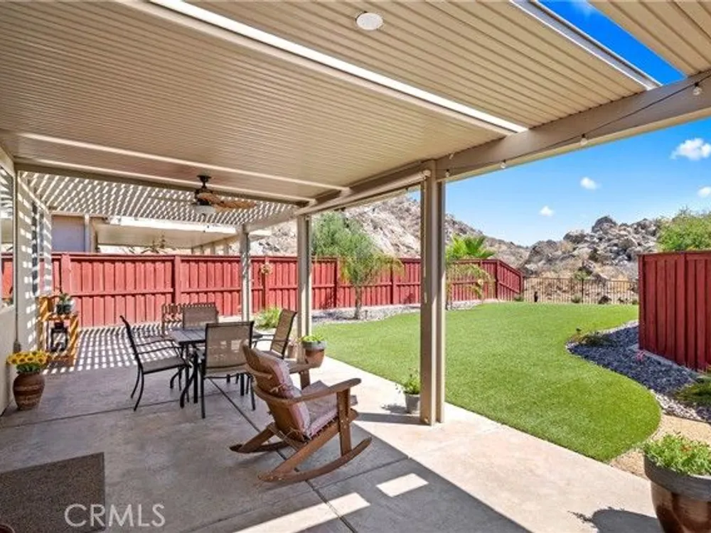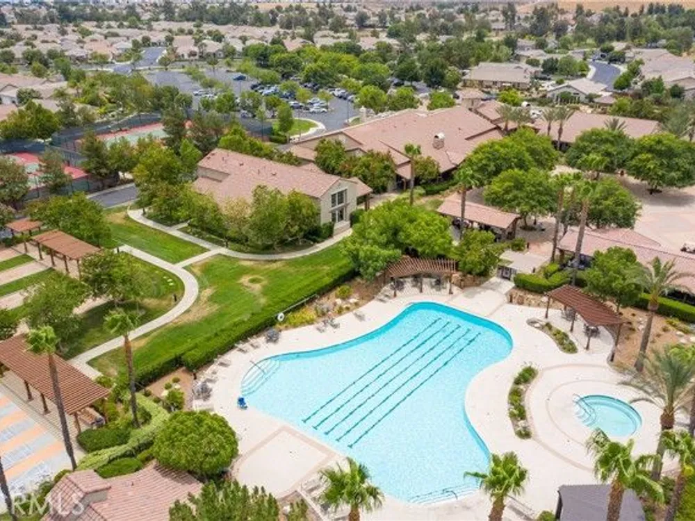 Welcome to this stunning turnkey Masters 2 single-level home, nestled in a peaceful cul-de-sac within the highly sought-after “OVER 55” gated community of Four Seasons Hemet. With exceptional curb appeal, this immaculate residence features 2 spacious bedrooms, 2 full baths, and a dedicated office space, perfect for your work-from-home needs. Step inside to find a freshly painted interior (completed within the last 2 years) with stylish flooring that includes cozy carpet in the bedrooms and office, and sleek tile throughout the rest of the home. Enjoy the elegance of plantation shutters and the comfort of ceiling fans in most rooms. The chef in you will appreciate the modern kitchen, complete with brand-new appliances and a convenient butler’s pantry connecting to the dining area. Retreat to the primary bedroom, where you'll find a generous walk-in closet and an ensuite bathroom with a luxurious dual sink vanity, a relaxing walk-in tub, and a private commode area. Outside, your private backyard oasis features an Alumawood patio cover, low-maintenance artificial turf, decorative river rock perfect for outdoor gatherings. The landscaped yard comes equipped with an automated sprinkler and drip system for effortless maintenance. As part of the Four Seasons community, enjoy an array of amenities designed for an active lifestyle, including 24-hour security, a bistro, ballroom, theatre, game and billiards rooms, library, gym, salon, covered BBQ area, resort-style pool, spa, and courts for bocce, shuffleboard, tennis, and pickleball. Plus, you're conveniently located near attractions like Diamond Valley Lake, Temecula Wine Country, and just a short drive to Palm Springs, San Diego, and Los Angeles. Don’t miss out on this incredible opportunity to live in comfort and style—schedule your private showing today!