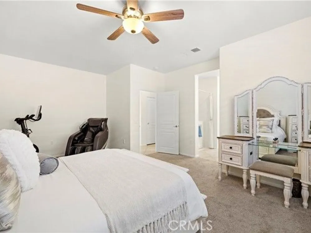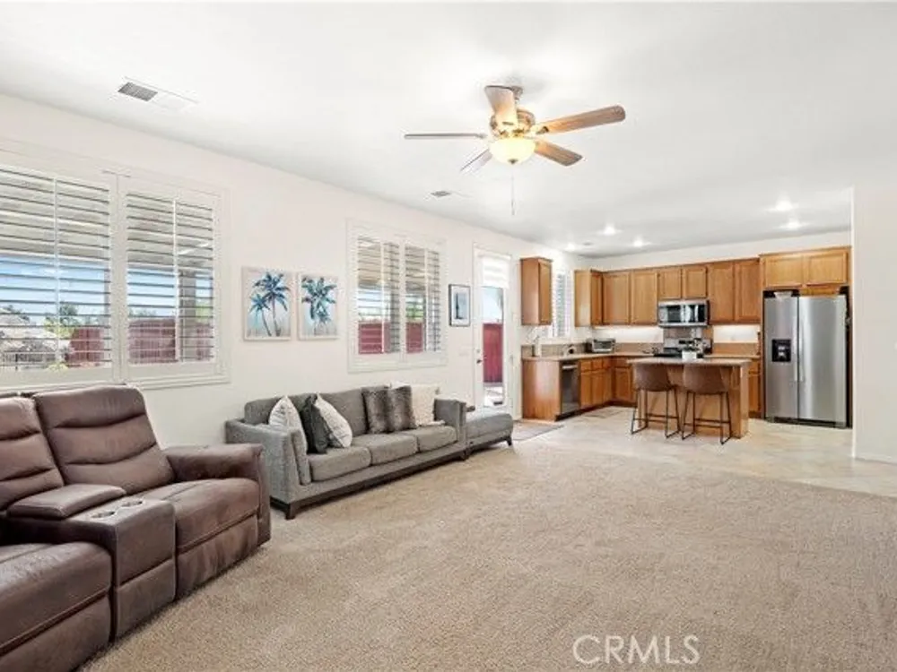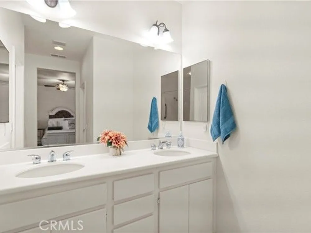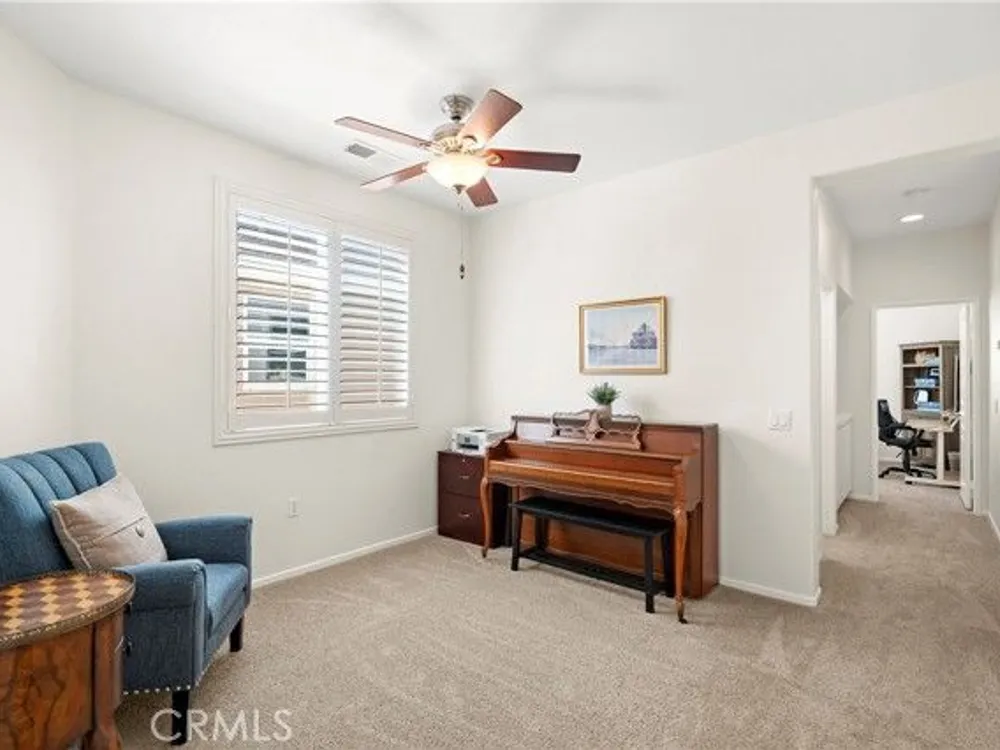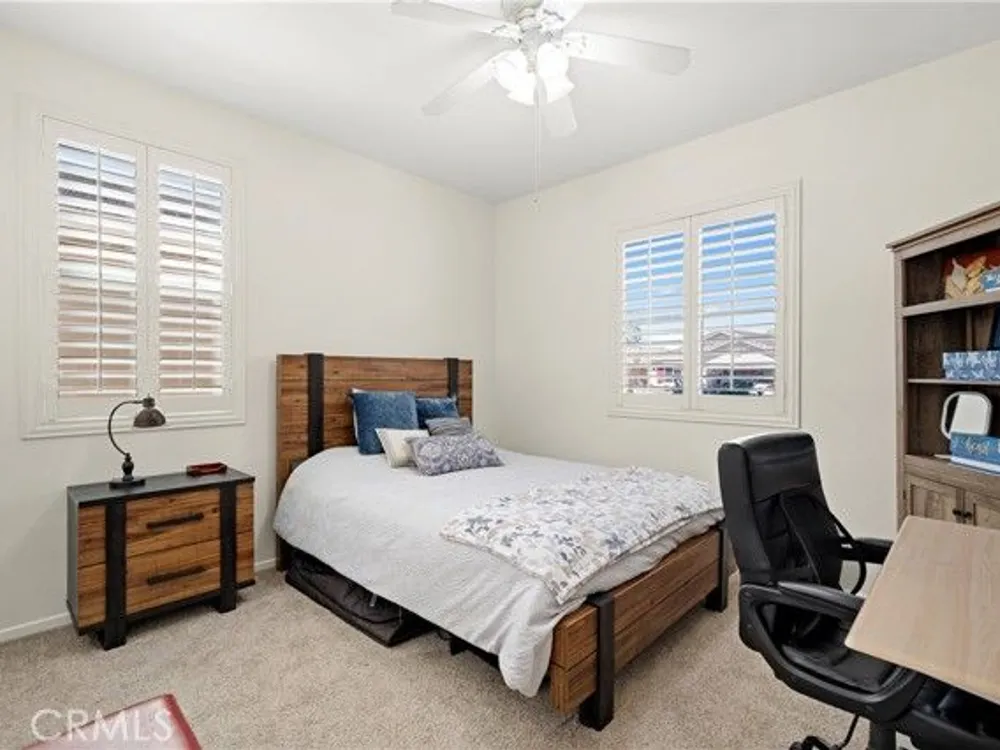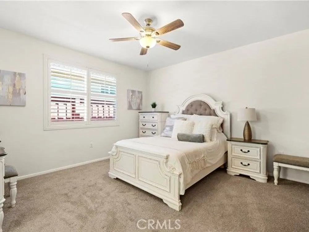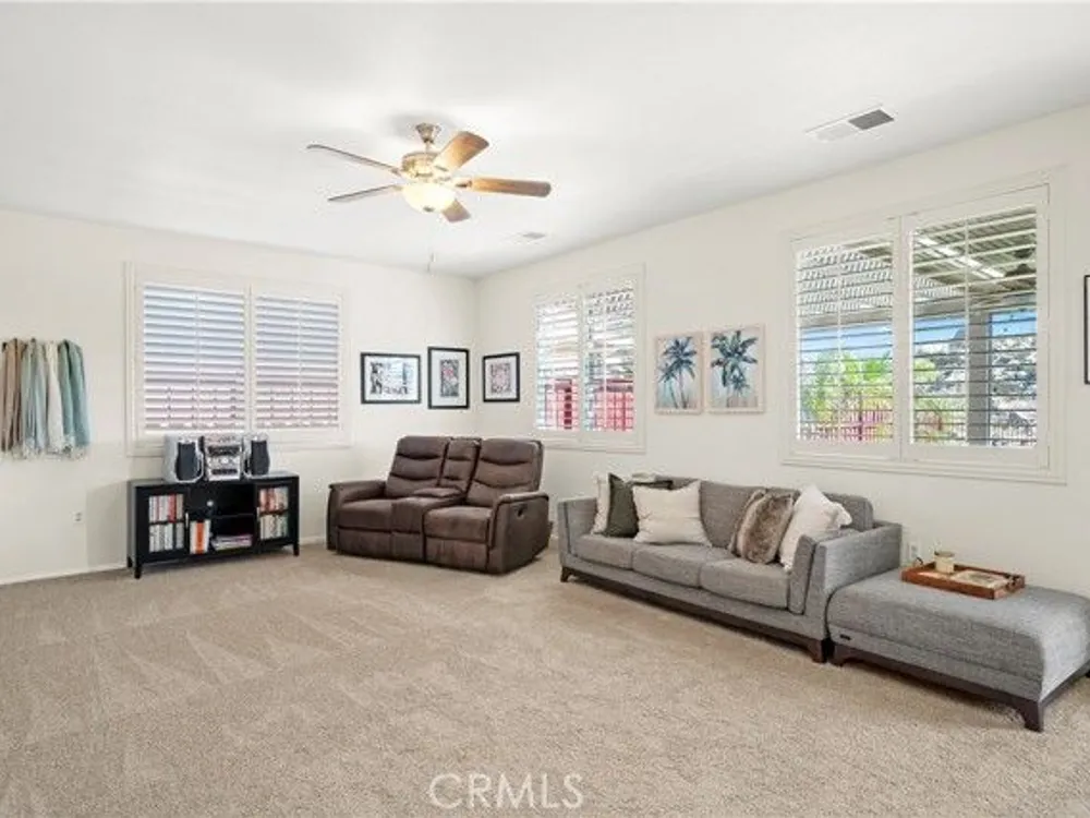 Welcome to this stunning turnkey Masters 2 single-level home, nestled in a peaceful cul-de-sac within the highly sought-after “OVER 55” gated community of Four Seasons Hemet. With exceptional curb appeal, this immaculate residence features 2 spacious bedrooms, 2 full baths, and a dedicated office space, perfect for your work-from-home needs. Step inside to find a freshly painted interior (completed within the last 2 years) with stylish flooring that includes cozy carpet in the bedrooms and office, and sleek tile throughout the rest of the home. Enjoy the elegance of plantation shutters and the comfort of ceiling fans in most rooms. The chef in you will appreciate the modern kitchen, complete with brand-new appliances and a convenient butler’s pantry connecting to the dining area. Retreat to the primary bedroom, where you'll find a generous walk-in closet and an ensuite bathroom with a luxurious dual sink vanity, a relaxing walk-in tub, and a private commode area. Outside, your private backyard oasis features an Alumawood patio cover, low-maintenance artificial turf, decorative river rock perfect for outdoor gatherings. The landscaped yard comes equipped with an automated sprinkler and drip system for effortless maintenance. As part of the Four Seasons community, enjoy an array of amenities designed for an active lifestyle, including 24-hour security, a bistro, ballroom, theatre, game and billiards rooms, library, gym, salon, covered BBQ area, resort-style pool, spa, and courts for bocce, shuffleboard, tennis, and pickleball. Plus, you're conveniently located near attractions like Diamond Valley Lake, Temecula Wine Country, and just a short drive to Palm Springs, San Diego, and Los Angeles. Don’t miss out on this incredible opportunity to live in comfort and style—schedule your private showing today!