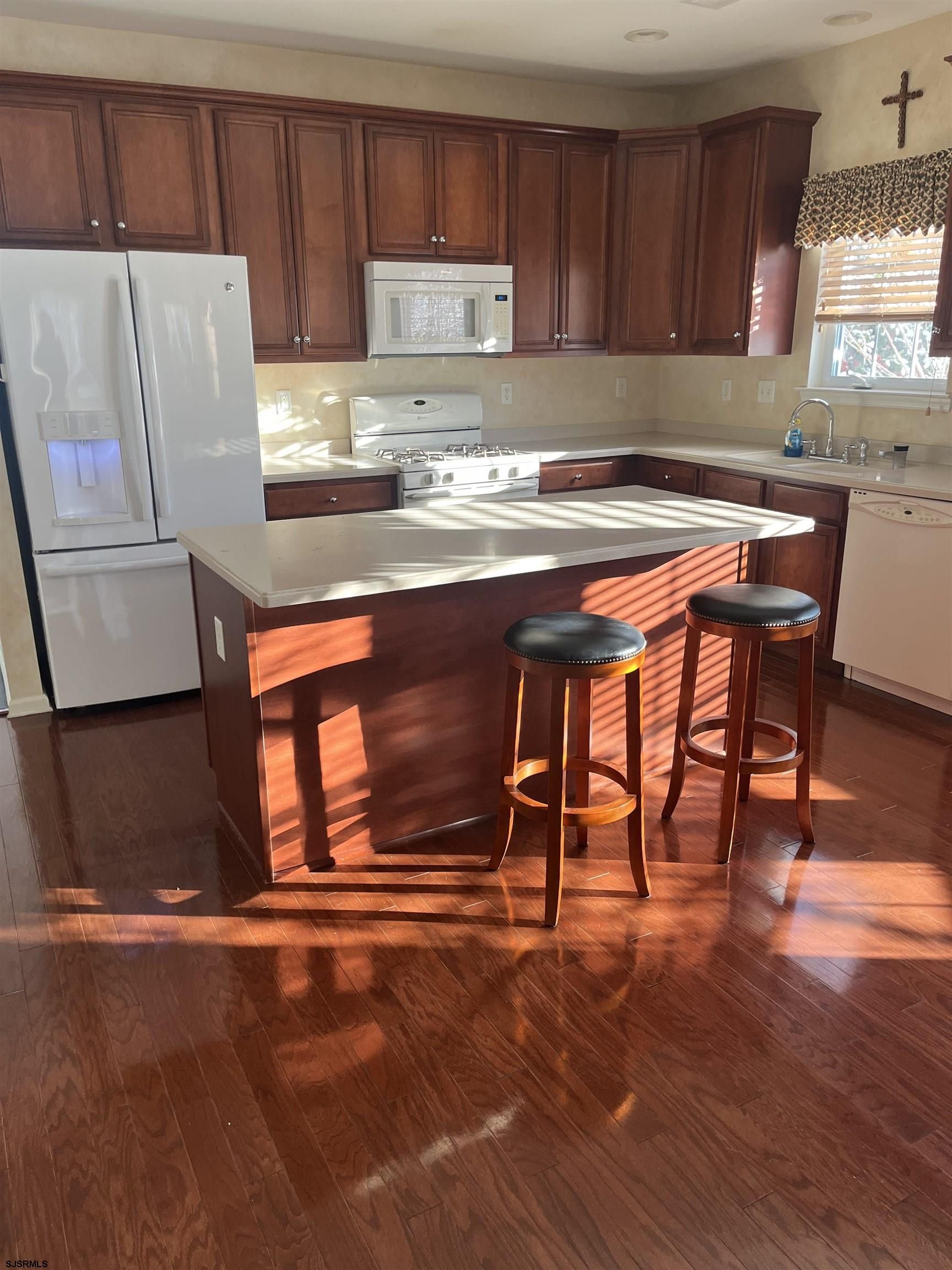 Lots of "LOVE" IN THIS HOME. EXCELLENT condition. DEERFIELD MODEL with 9' ceilings. Beautiful hardwood flooring. Tile baths. Upgraded 42" kit. cabinets. Corian counter tops. Bump-out in kit. Full appliance package. Kitchen overlooks lovely den with built in gas fire place. Main bedroom has 2 walk-in closets a full bath with upgraded bathroom cabinets and double sink, shower and garden tub. Second bedroom has hall bath. Den leads to a beautiful wooden deck for terrific BBQ's in summer. Gas line for BBQ Grill. There is an office or 3rd. possible bedroom. Club House has beautiful in-ground pool and in-door pool. Pool Room, gym and lots of activities. Very busy social club or if that isn't your cup of tea you can just sit on your deck and drink "MARGARITA'S". Great neighbors and very quiet neighborhood. HURRY. WON'T LAST LONG. VERY DESIRABLE AREA.