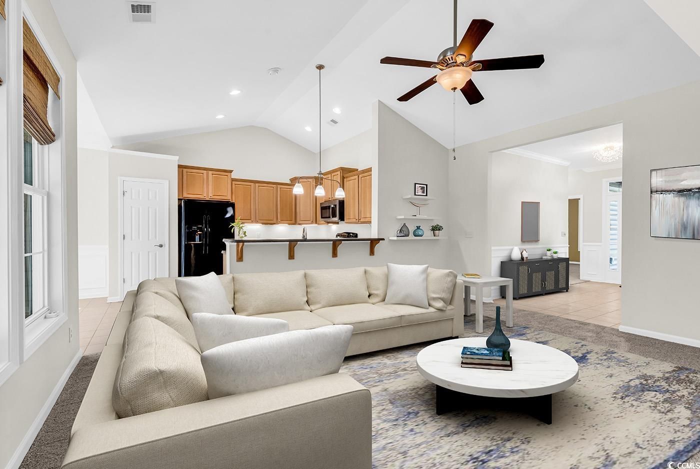 "SOME OF THE PHOTOS IN THIS LISTING HAVE BEEN VIRTUALLY STAGED." Welcome to 212 Myrtle Grande Drive, located within the desirable 55-plus community of Myrtle Trace Grande, just a short distance from the historic downtown Conway and Myrtle Beach. This sophisticated Beaufort F plan features an extended front bedroom, enlarged by four feet. Upon entering, one is greeted by an inviting foyer; to the left, there are two bedrooms along with the main bathroom. The great room seamlessly connects to the kitchen, which includes a dining area. The kitchen is equipped with black appliances, natural maple cabinetry, a tiled floor, and under-cabinet lighting. The generously sized primary bedroom includes a sitting area and a walk-in closet. The primary bathroom offers a double sink vanity, a walk-in shower, and a vinyl floor. The screened-in porch provides an ideal space for relaxation after a day spent at the community pool. The inside of the home has been freshly painted ( most rooms), and the front porch and screened-in porch have been stamped. In 2025, all smoke alarms & garage door opener were replaced. Homeowners benefit from access to a clubhouse and an outdoor pool. Myrtle Trace Grande hosts year-round social events, clubs, and a variety of planned activities. Additionally, the community is conveniently located a short drive from medical offices, banks, post offices, shopping centers, and Coastal Carolina. Truly move-in ready home, call today for your appointment. All data, measurements, and square footage are approximate. Buyer/buyers are responsible for the verification of all data.