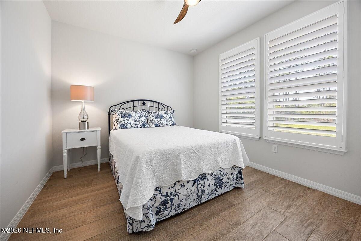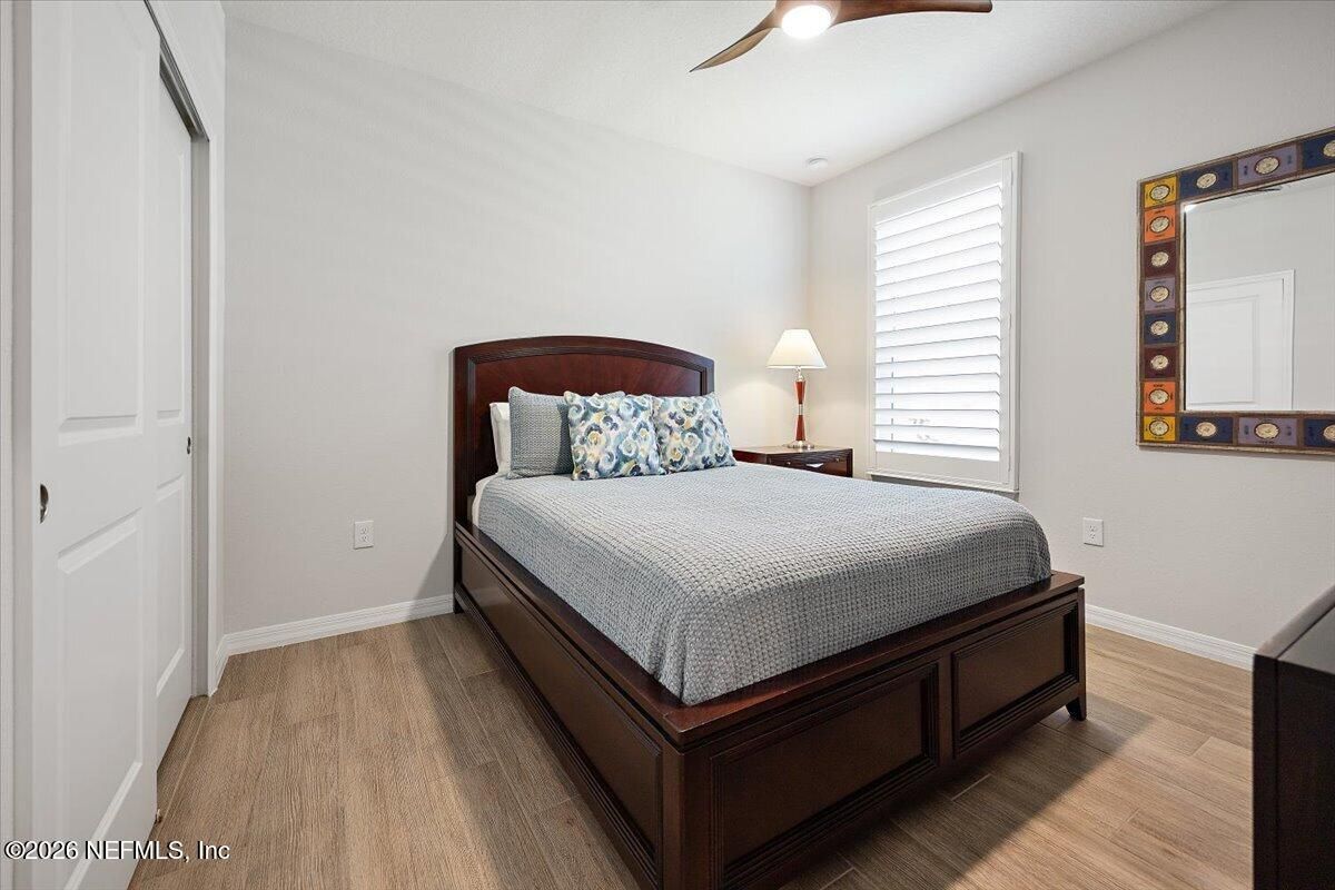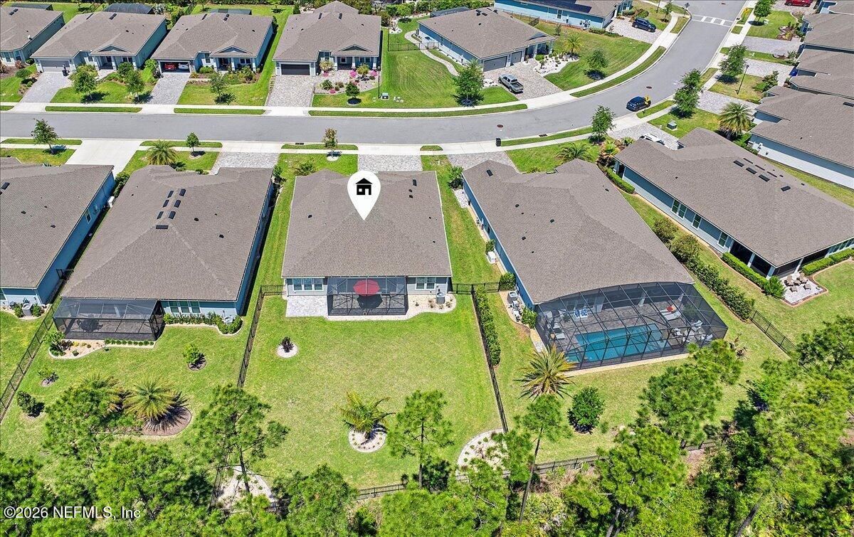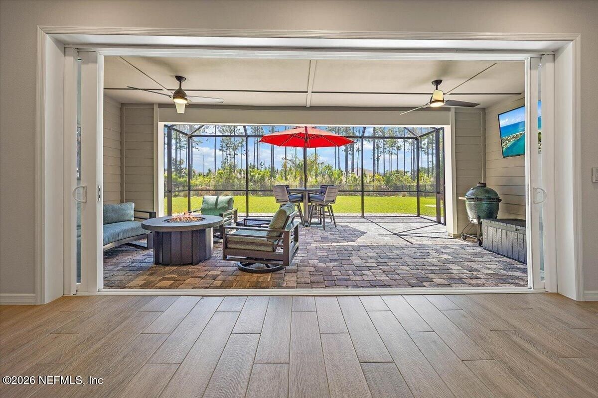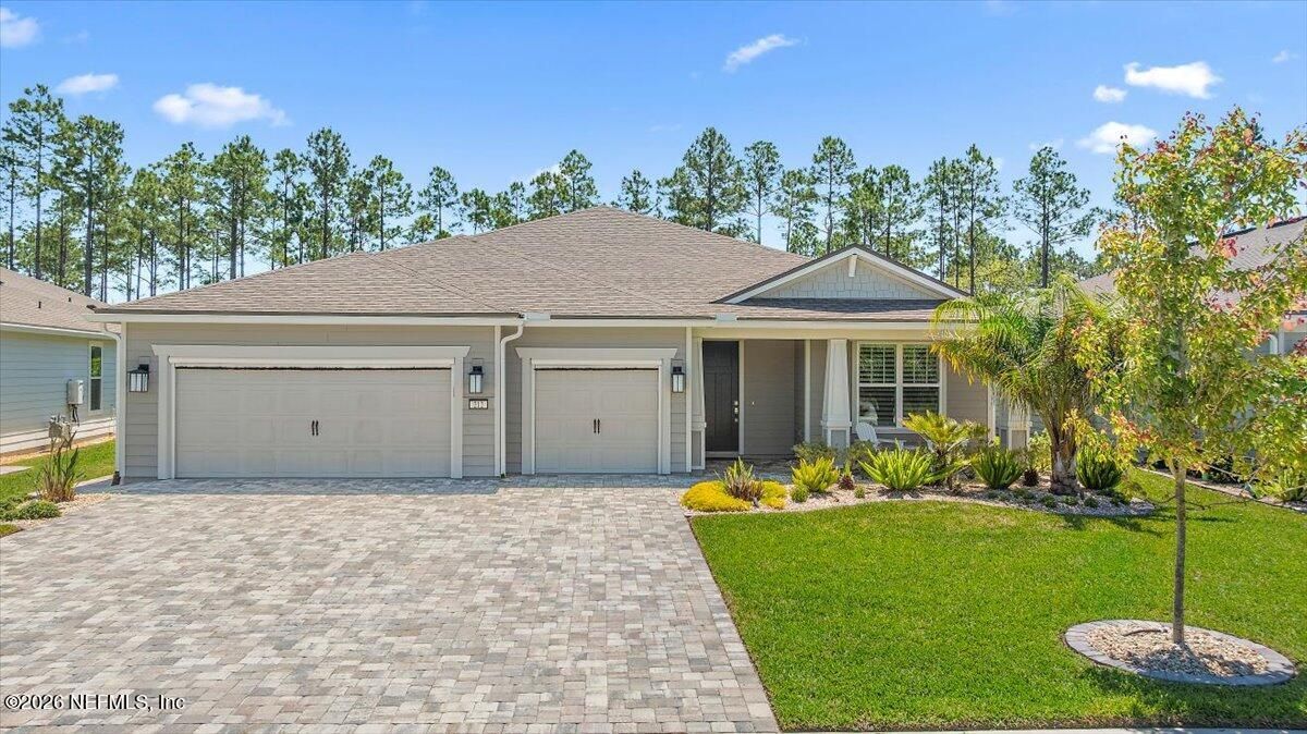 Popular Stardom model offering 3 bedrooms, 2.5 baths, and a flex room/office with French doors, perfectly positioned on an oversized, private preserve lot. Designed for effortless Florida living, this home blends indoor and outdoor spaces seamlessly with pocket sliding doors that open wide to the extended screened-in lanai--creating the ultimate setting for entertaining or relaxing year-round. Inside, enjoy tile flooring throughout with no carpet, plantation shutters, surround sound, and a built-in drop zone. The spacious kitchen is ideal for gatherings, featuring KitchenAid appliances, a large layout, and a wet bar with wine cooler. The owner's suite offers a luxurious retreat with a soaking tub, separate shower, and custom built-in closet. Step outside to a beautifully fenced yard with lush landscaping and landscape lighting, enhancing the private preserve view. Additional upgrades include a whole-house dehumidifier, whole-house water softener with filtration, and a Rachio irrigation system. The oversized 3-car garage includes epoxy floors, overhead storage racks, and remote screens, while the laundry room is complete with extensive built-in cabinetry. This home was built to the Environment for Living Gold Standard Certification with a full energy package. Professionally upgraded landscaping and premium designer lighting. The perfect indoor-outdoor home for Florida living--priced to sell. Del Webb Nocatee, the newest 55+ community where luxury living meets unparalleled amenities including: resort pools, spa tub, pickle ball (over 300 members), tennis, bocce, billiards, a full service restaurant and bar, ballroom, fitness center, community garden, kayak launch to the intracoastal etc. If that is not enough, you can enjoy all that the community of Nocatee has to offer just a few miles away on golf cart paths, including waterparks, concerts, food trucks, restaurants and shopping.