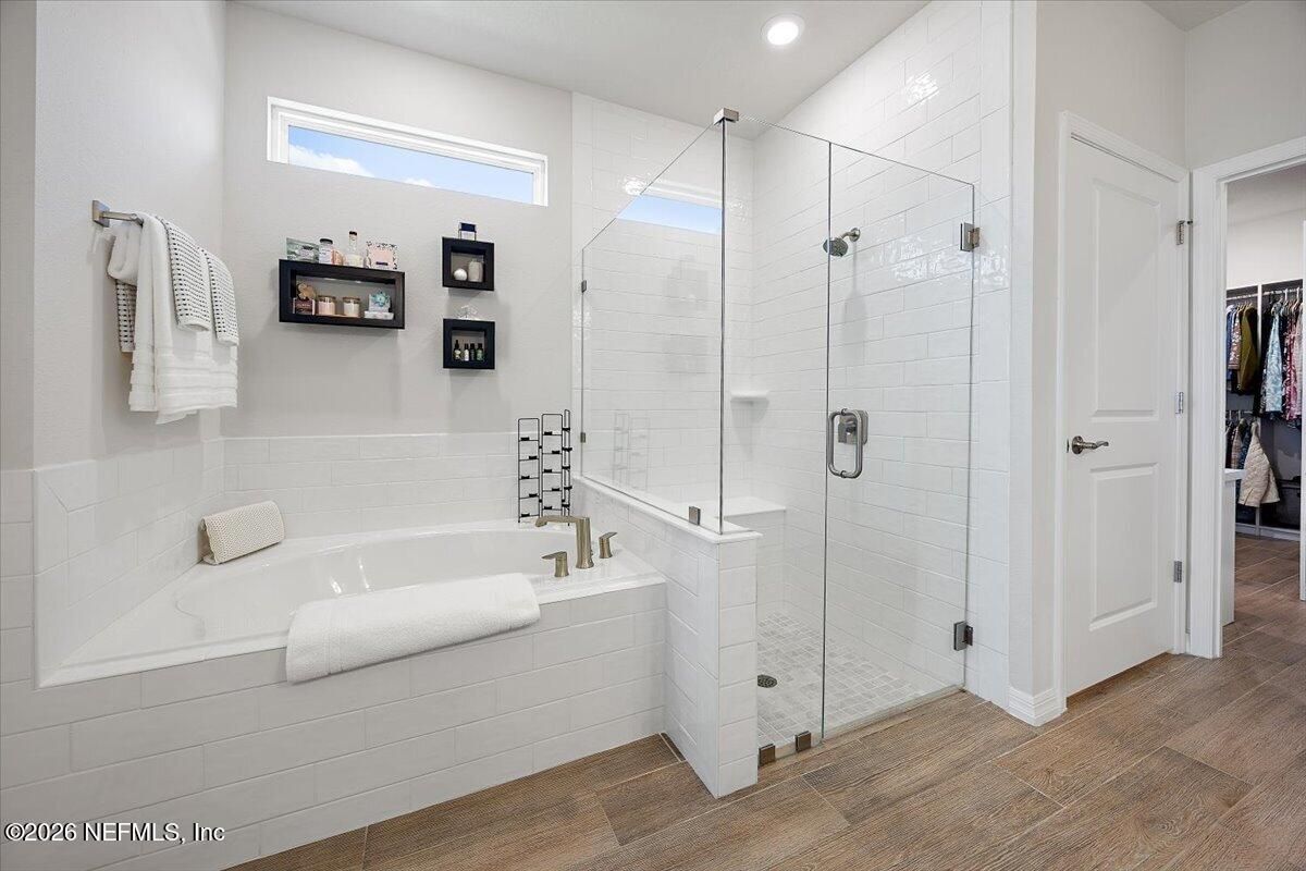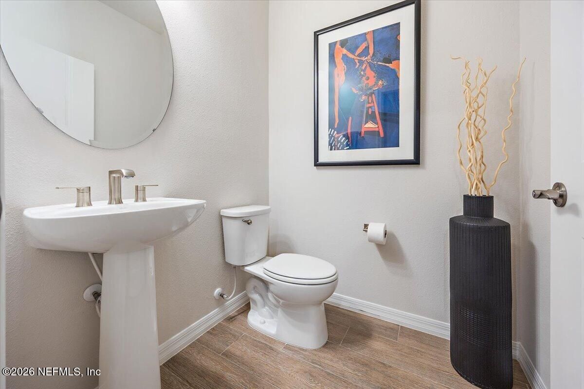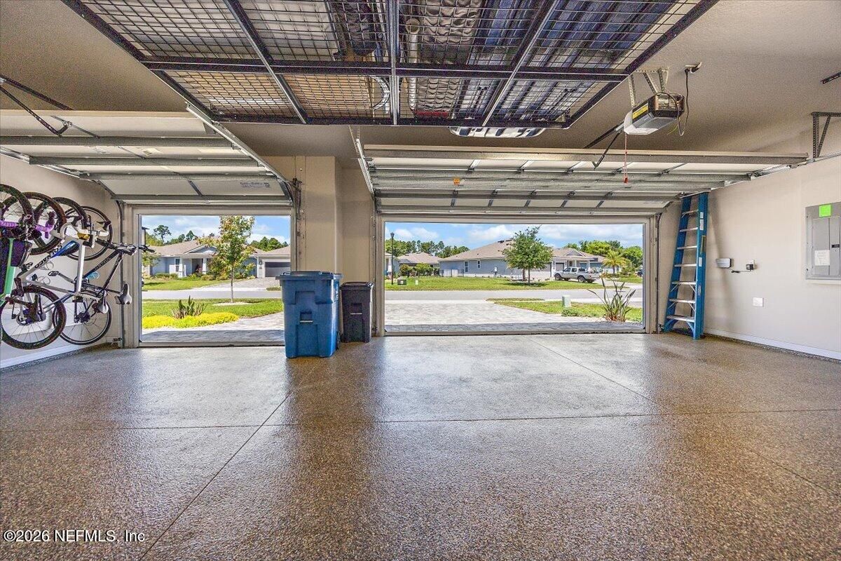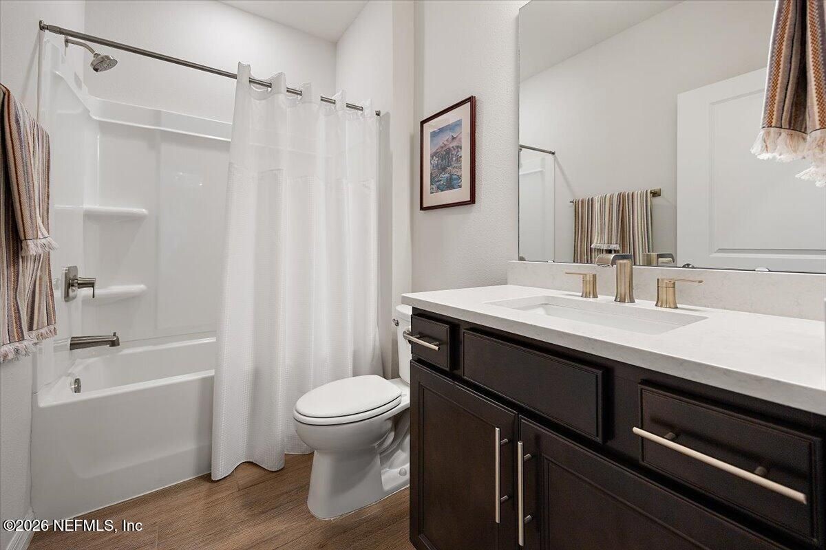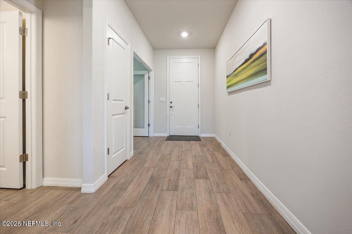 Popular Stardom model offering 3 bedrooms, 2.5 baths, and a flex room/office with French doors, perfectly positioned on an oversized, private preserve lot. Designed for effortless Florida living, this home blends indoor and outdoor spaces seamlessly with pocket sliding doors that open wide to the extended screened-in lanai--creating the ultimate setting for entertaining or relaxing year-round. Inside, enjoy tile flooring throughout with no carpet, plantation shutters, surround sound, and a built-in drop zone. The spacious kitchen is ideal for gatherings, featuring KitchenAid appliances, a large layout, and a wet bar with wine cooler. The owner's suite offers a luxurious retreat with a soaking tub, separate shower, and custom built-in closet. Step outside to a beautifully fenced yard with lush landscaping and landscape lighting, enhancing the private preserve view. Additional upgrades include a whole-house dehumidifier, whole-house water softener with filtration, and a Rachio irrigation system. The oversized 3-car garage includes epoxy floors, overhead storage racks, and remote screens, while the laundry room is complete with extensive built-in cabinetry. This home was built to the Environment for Living Gold Standard Certification with a full energy package. Professionally upgraded landscaping and premium designer lighting. The perfect indoor-outdoor home for Florida living--priced to sell. Del Webb Nocatee, the newest 55+ community where luxury living meets unparalleled amenities including: resort pools, spa tub, pickle ball (over 300 members), tennis, bocce, billiards, a full service restaurant and bar, ballroom, fitness center, community garden, kayak launch to the intracoastal etc. If that is not enough, you can enjoy all that the community of Nocatee has to offer just a few miles away on golf cart paths, including waterparks, concerts, food trucks, restaurants and shopping.