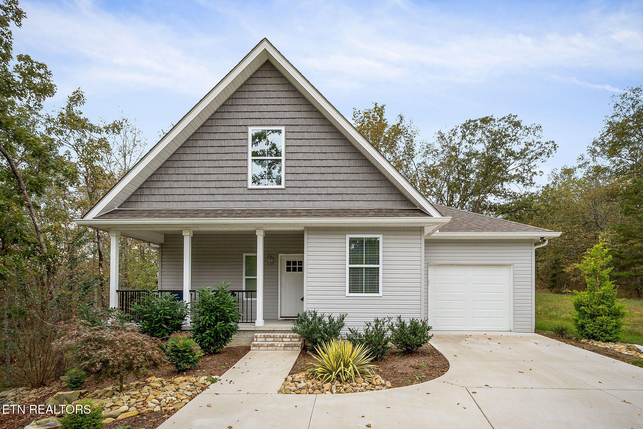 A functional and efficient floor plan designed for easy, low-maintenance living with a warm, inviting feel. The main level features durable LVP flooring throughout the primary living areas, complemented by granite countertops, Whirlpool stainless steel appliances, and soft-close cabinetry. The spacious primary suite is conveniently located on the main floor and offers double closets along with a well-appointed bath featuring dual vanities and granite surfaces. A thoughtfully designed laundry space with a stacked configuration maximizes efficiency without sacrificing convenience, and a half bath adds extra functionality for guests. Step outside to a concrete patio just off the great room--perfect for relaxing or entertaining. Upstairs, you'll find two additional bedrooms, a full bath, and ample hall storage. These versatile spaces can easily serve as guest accommodations, a home office, hobby rooms, or whatever suits your lifestyle. Ideally located with quick access to many of Fairfield Glade's amenities, this home also offers direct proximity to a scenic hiking trail right outside your back door--blending comfort, convenience, and outdoor living.