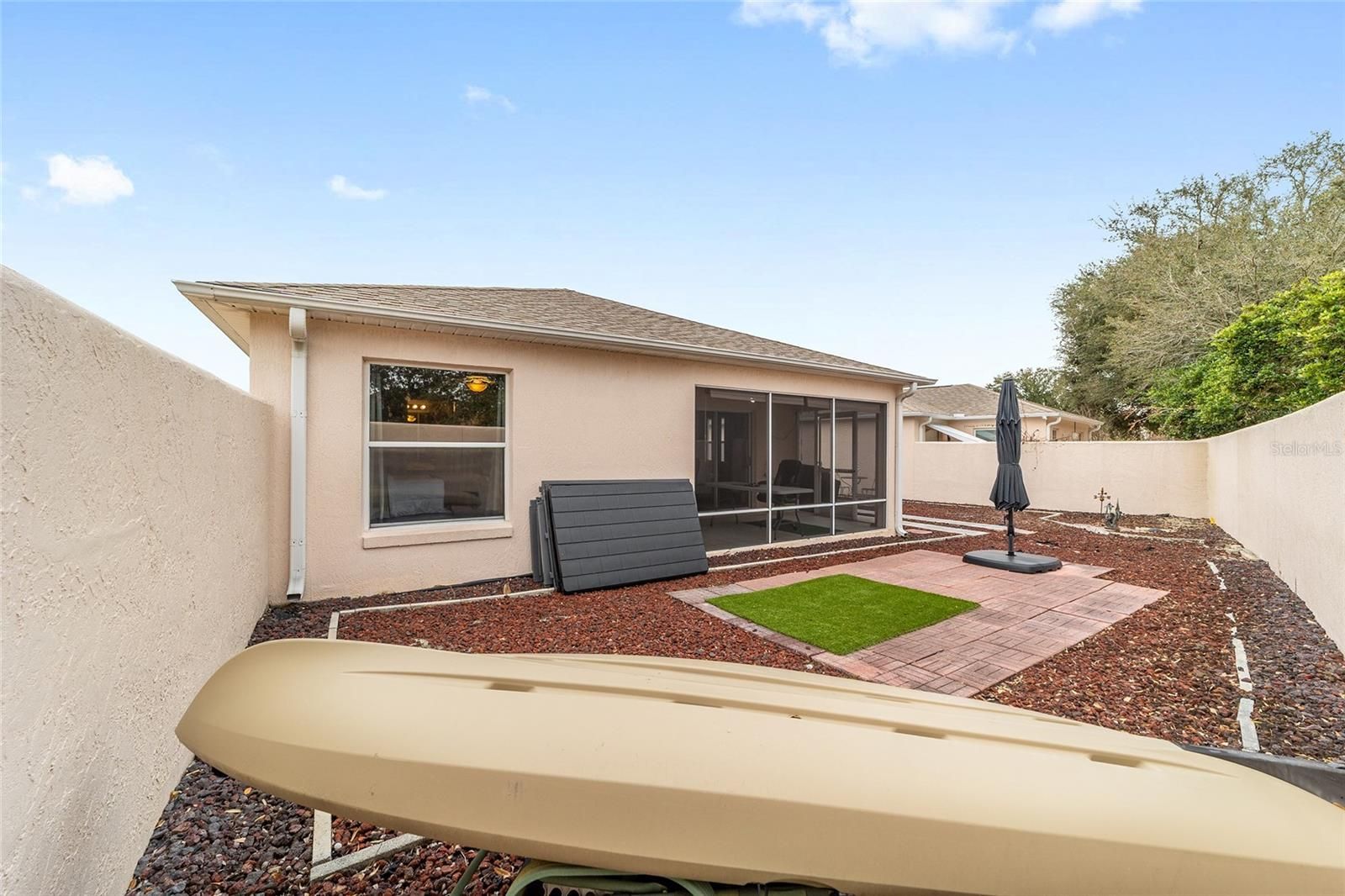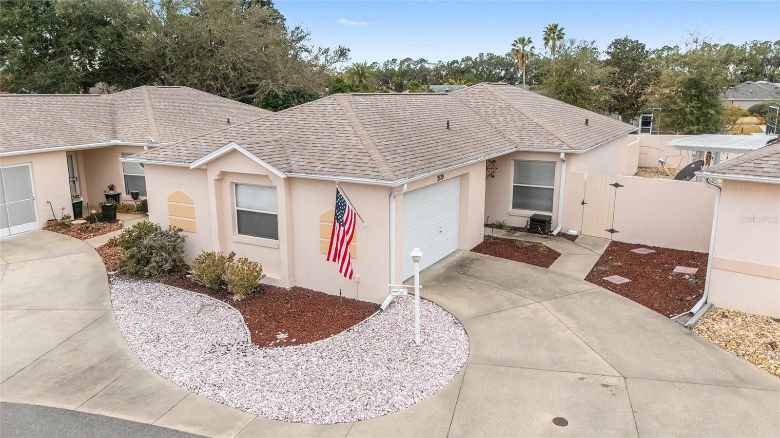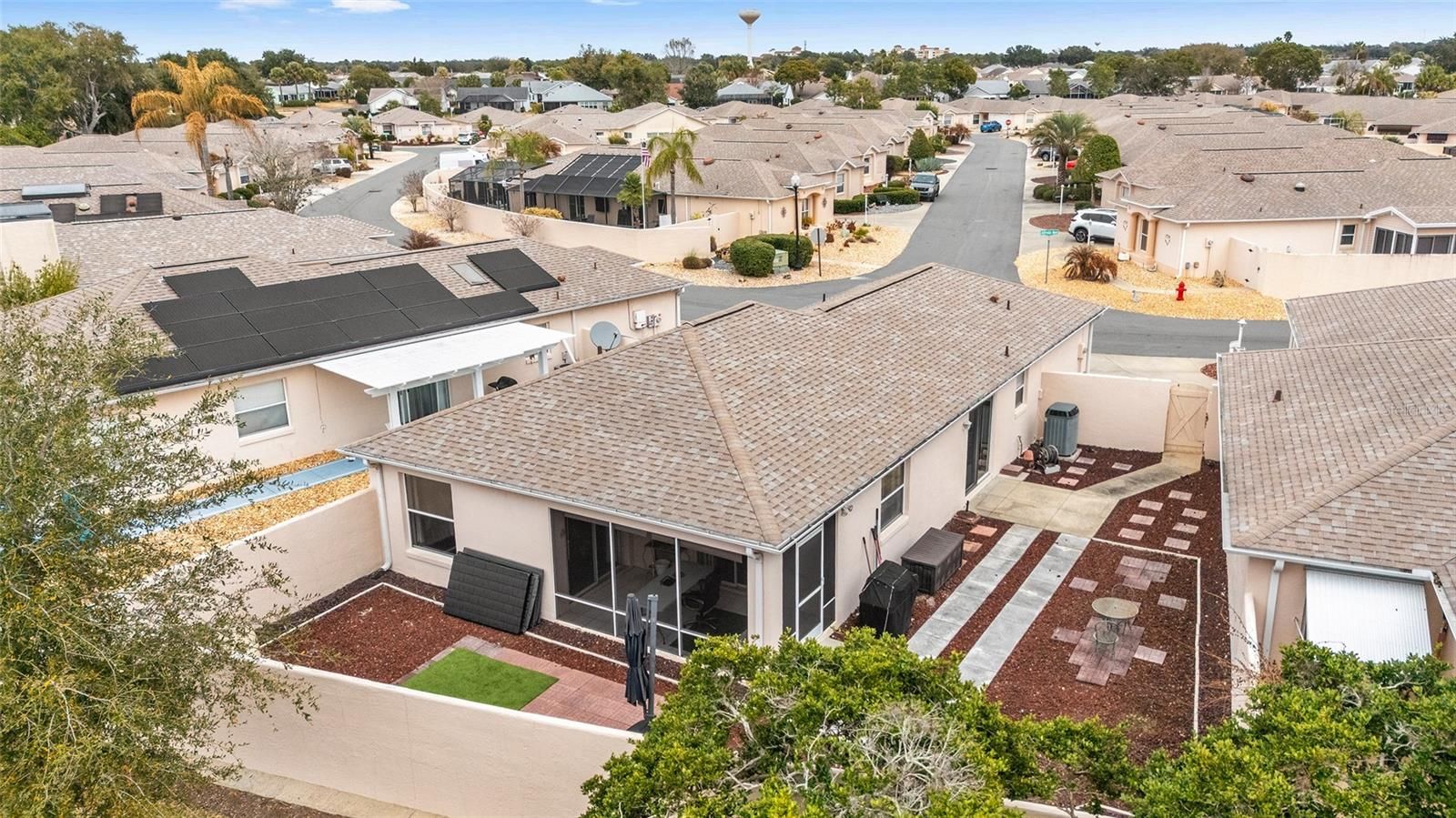 Offered partially furnished and with NO BOND. Discover your private retreat in this BLOCK & STUCCO 2-bedroom, 2-bath Courtyard Villa located in the desirable Village of Sumter, Villa De La Ramona. Ideally situated just steps from the El Santiago Pool and Recreation Center and conveniently close to multiple championship golf courses, including Hacienda Hills – The Palms, El Santiago, and El Diablo. This LIGHT AND BRIGHT home features LUXURY VINYL PLANK FLOORING throughout with NO CARPET, WHITE CABINETRY, and an OPEN CONCEPT FLOOR PLAN filled with natural light. The SPACIOUS primary suite offers a LARGE WALK-IN CLOSET with additional shelving, a walk-in shower, and direct access to the lanai. A PRIVATE GUEST SUITE provides comfort and separation for visitors. Enjoy Florida living at its best in the SCREENED LANAI and LOW-MAINTENANCE courtyard, complete with PRIVACY FENCING ALL AROUND, NO GRASS TO MOW, and minimal shrubs—ideal for relaxing or entertaining. Additional highlights include a NEWER ROOF (2019), a 1.5-car garage with space for both a car and a golf cart, and extra storage. This home offers comfort, convenience, and exceptional value, with golf, recreation, dining, and entertainment available year-round. Golf cart available separately.