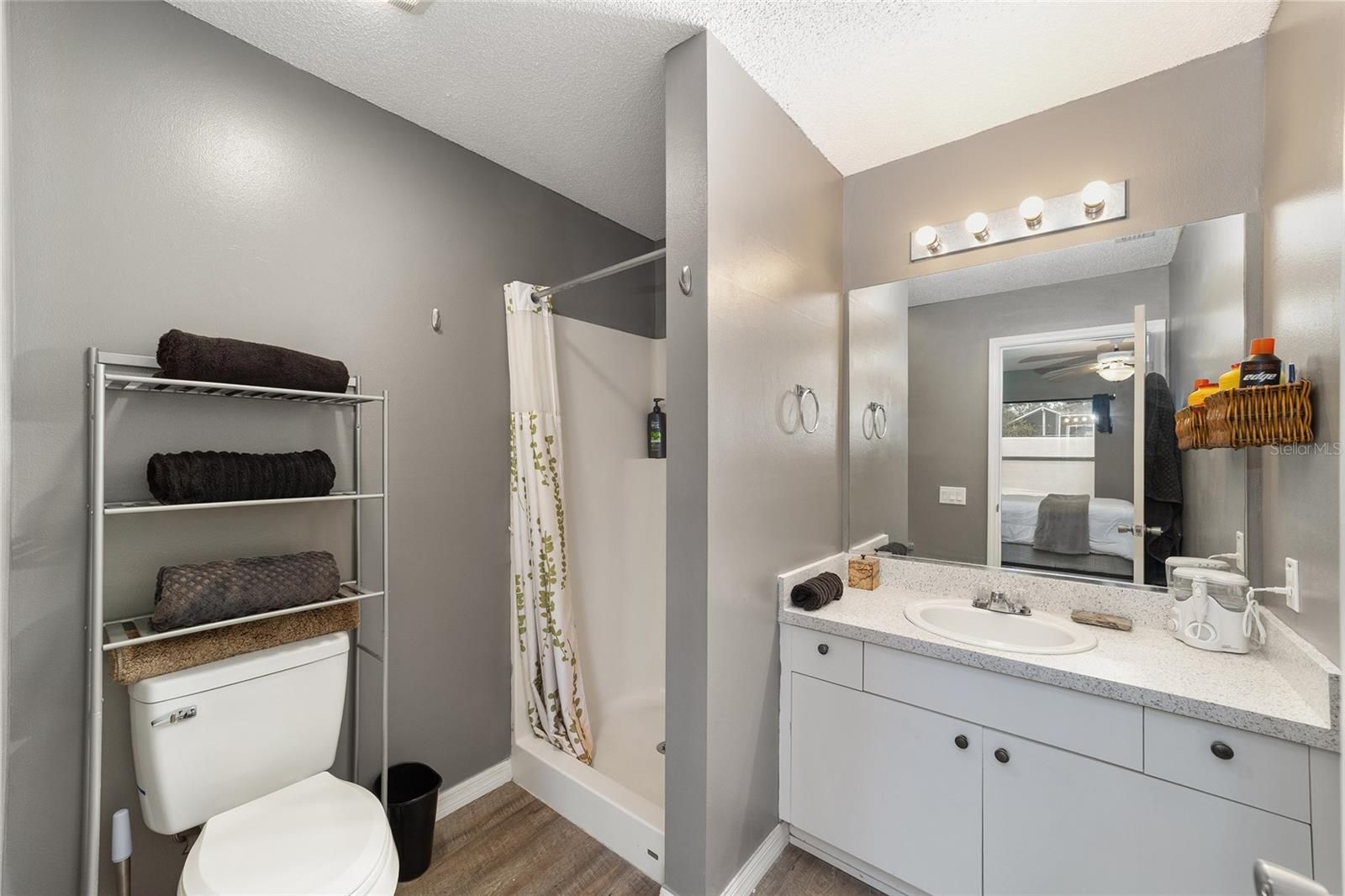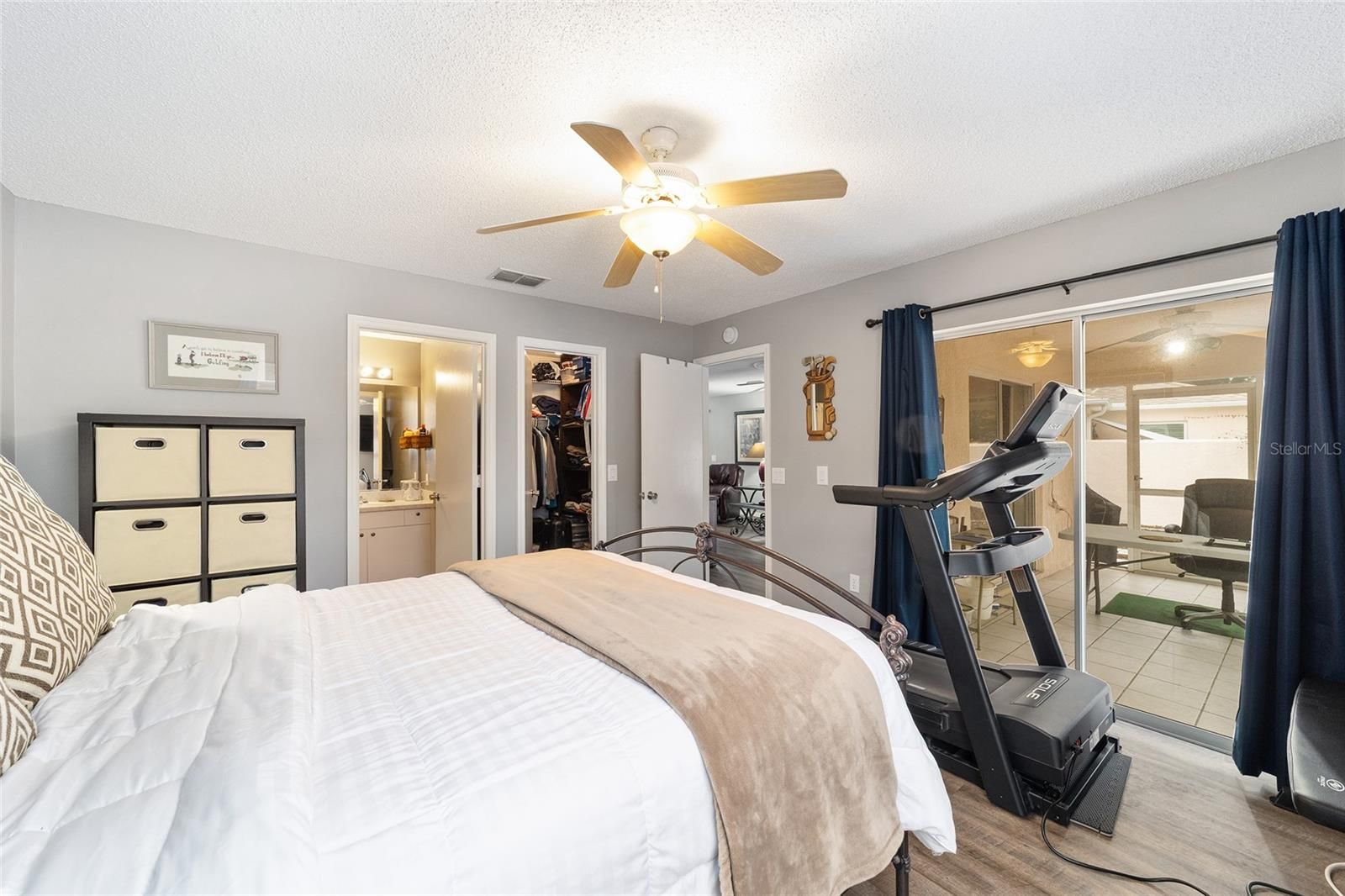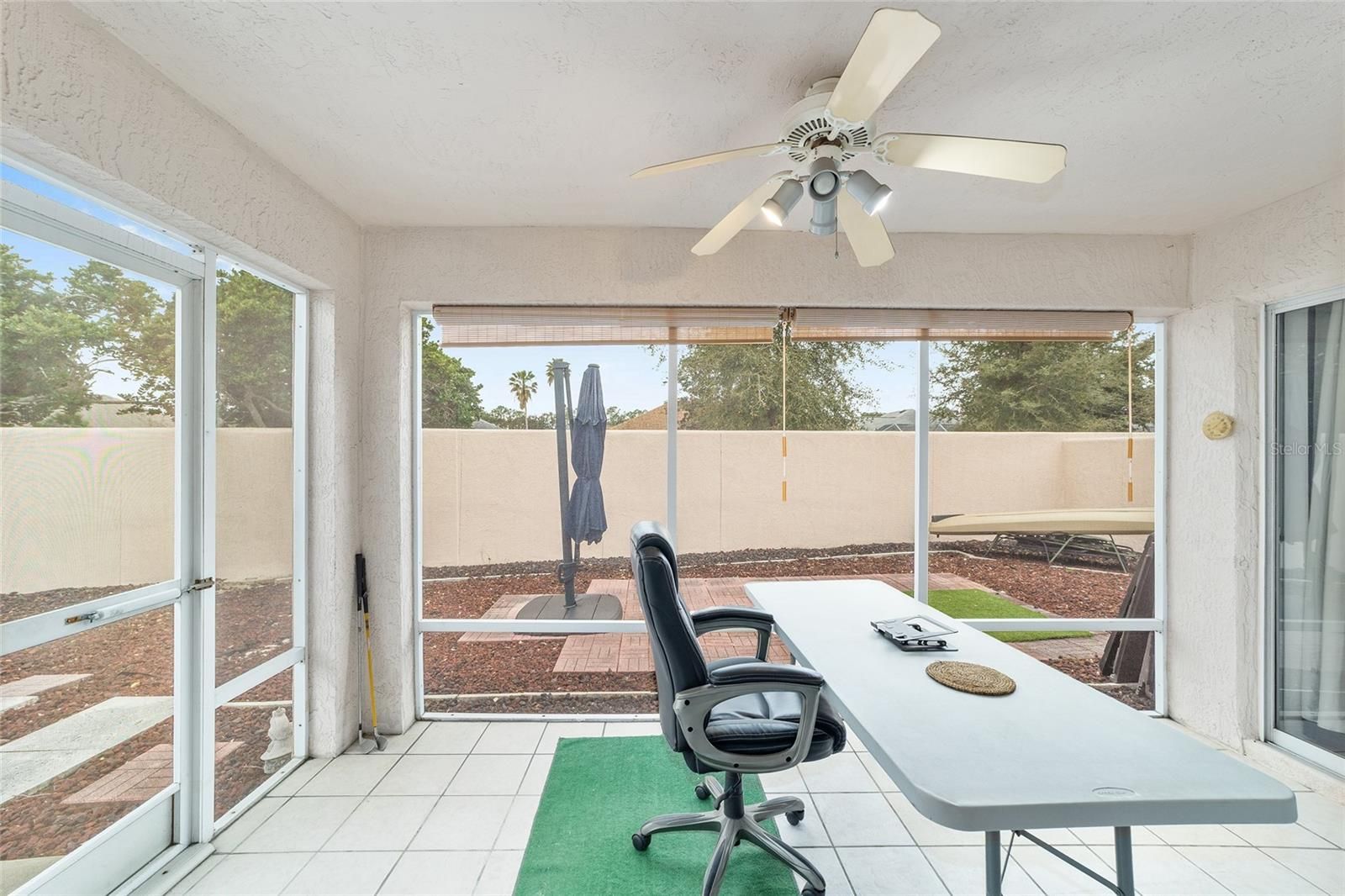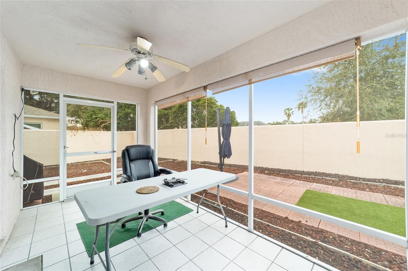 Offered partially furnished and with NO BOND. Discover your private retreat in this BLOCK & STUCCO 2-bedroom, 2-bath Courtyard Villa located in the desirable Village of Sumter, Villa De La Ramona. Ideally situated just steps from the El Santiago Pool and Recreation Center and conveniently close to multiple championship golf courses, including Hacienda Hills – The Palms, El Santiago, and El Diablo. This LIGHT AND BRIGHT home features LUXURY VINYL PLANK FLOORING throughout with NO CARPET, WHITE CABINETRY, and an OPEN CONCEPT FLOOR PLAN filled with natural light. The SPACIOUS primary suite offers a LARGE WALK-IN CLOSET with additional shelving, a walk-in shower, and direct access to the lanai. A PRIVATE GUEST SUITE provides comfort and separation for visitors. Enjoy Florida living at its best in the SCREENED LANAI and LOW-MAINTENANCE courtyard, complete with PRIVACY FENCING ALL AROUND, NO GRASS TO MOW, and minimal shrubs—ideal for relaxing or entertaining. Additional highlights include a NEWER ROOF (2019), a 1.5-car garage with space for both a car and a golf cart, and extra storage. This home offers comfort, convenience, and exceptional value, with golf, recreation, dining, and entertainment available year-round. Golf cart available separately.