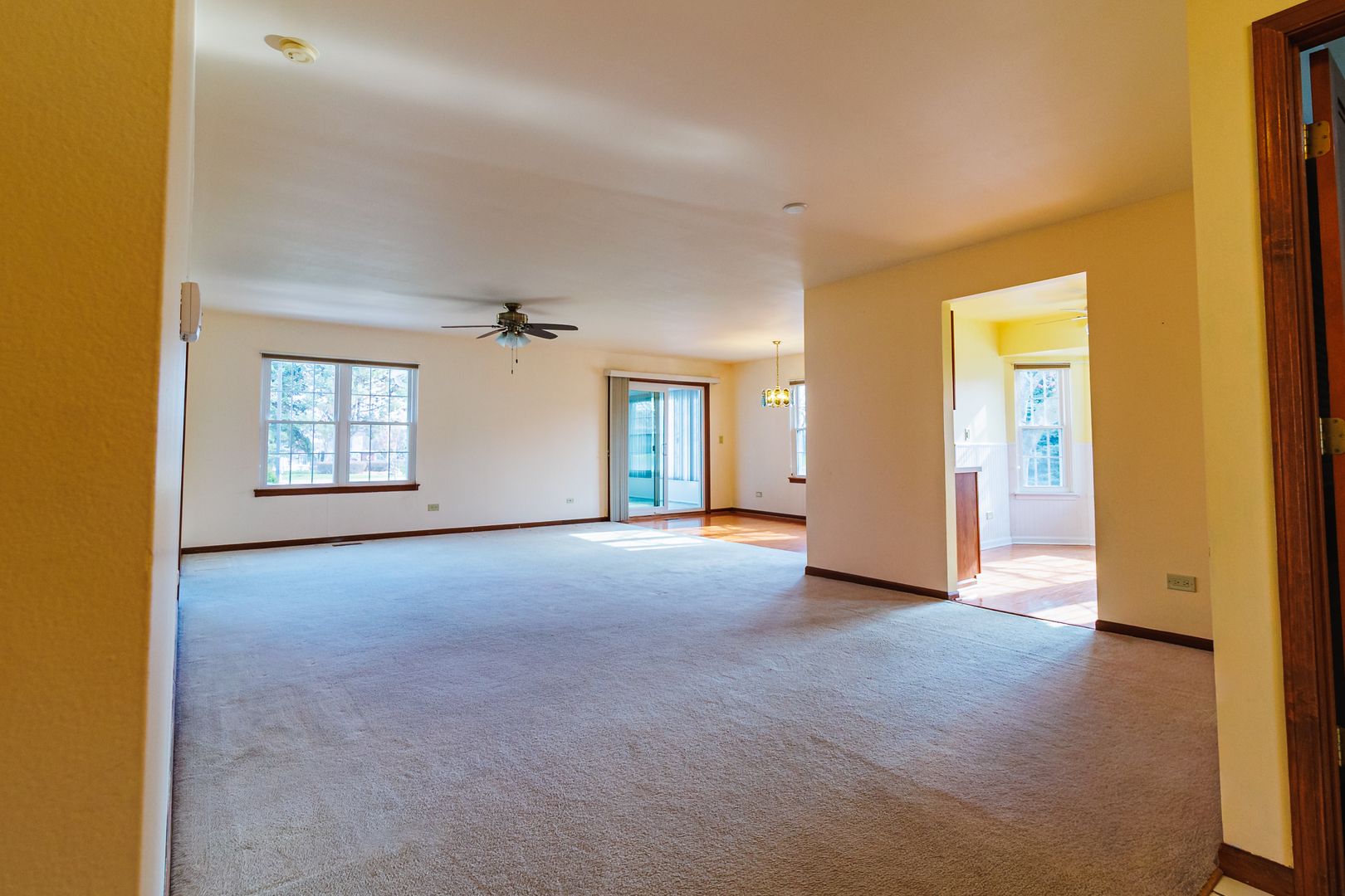 Meticulously cared for 2-bedroom, 2-bath ranch located in a highly sought-after Carillon 55+ gated community in Plainfield! This home offers the open-concept layout buyers love, featuring a spacious living and dining area that flows effortlessly for everyday living and entertaining. The kitchen is both functional and inviting, complete with hardwood flooring, abundant cabinetry and counter space, and appliances. The bright eating area is accented with charming wainscoting and a bayed window, creating the perfect spot to start your day. Hardwood flooring continues into the dining area, which opens to a spacious 3-season sunroom, perfect for relaxing or enjoying the peaceful surroundings. The generous primary suite includes a walk-in closet plus an additional closet for extra storage. The en-suite bath features a separate soaking tub and a ceramic surround shower. Enjoy resort-style amenities including a clubhouse with indoor and outdoor pools, tennis courts, three 9-hole golf courses, a pro shop, restaurant, game and craft rooms, and scenic ponds. Conveniently located near I-55, shopping, and dining, this is easy, low-maintenance living at its best.