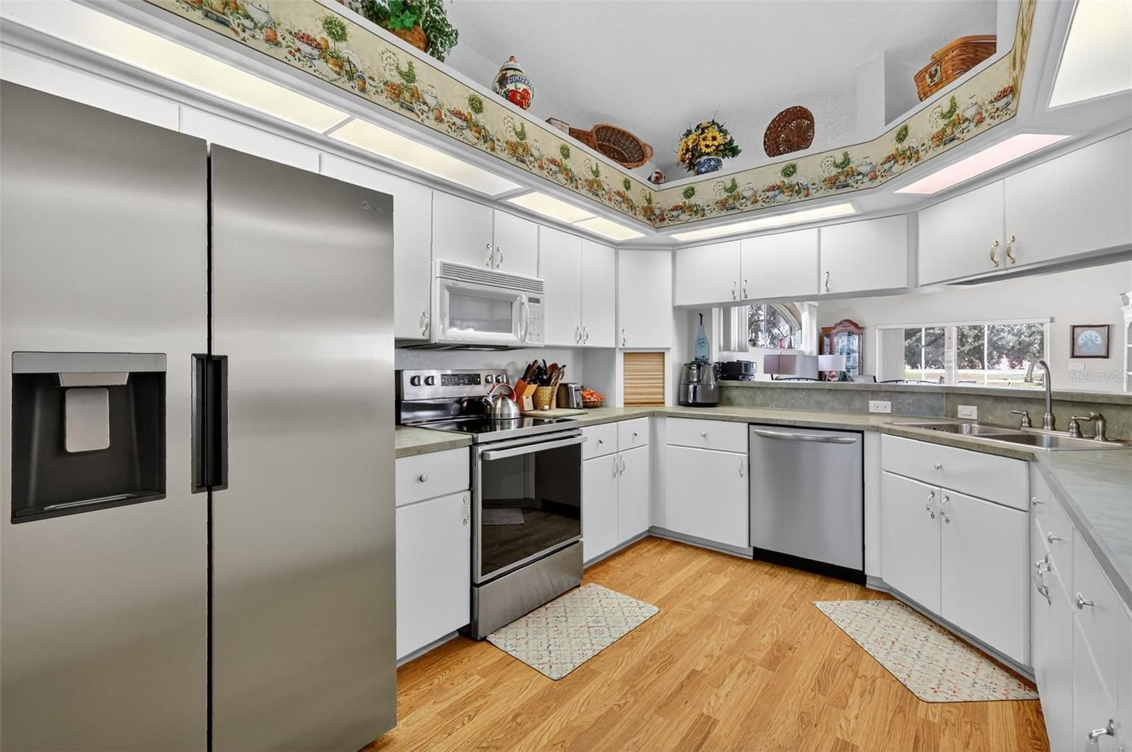 Beautiful Golf Course Home in Royal Highlands This beautifully maintained 3-bedroom, 2-bath Opal model offers scenic golf course views from one of the highest lots in Royal Highlands. Enjoy elegant wood flooring throughout the main living areas, a spacious expanded paver birdcage lanai perfect for entertaining, and an oversized garage providing extra storage or workshop space. The kitchen features new lower appliances, a central vacuum system, and plenty of counter and cabinet space. Major updates include a 6-year-old roof, 7-year-old HVAC, fresh exterior paint (2024), and interior paint (2022)—truly move-in ready. An equity golf membership conveys with the home, and furnishings are available as well for a turnkey option. Royal Highlands is a premier, resident-owned 55+ community offering a 24-hour staffed gate, indoor and outdoor pools, lighted tennis and pickleball, 18-hole golf with restaurant and pro shop, fitness center, recreation halls, and secure RV/boat storage. Experience active-adult living at its finest in this sought-after location.