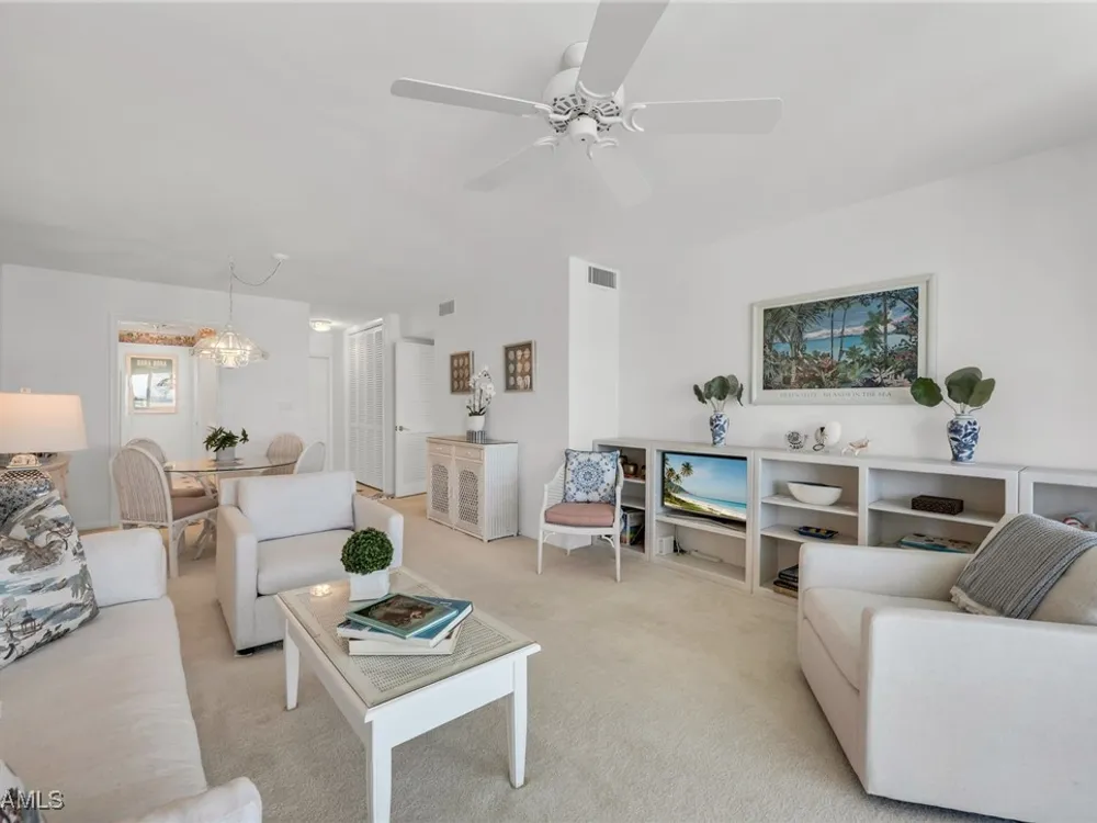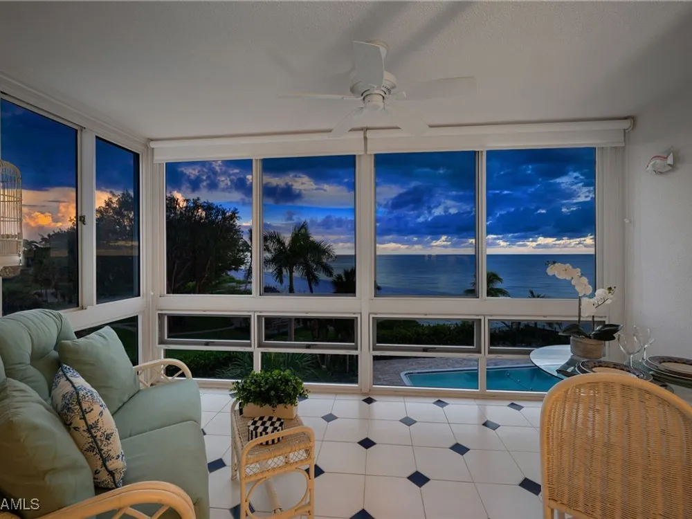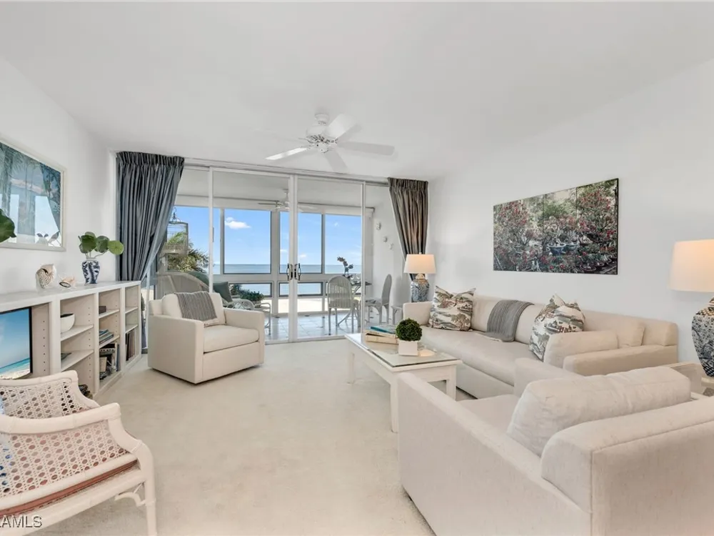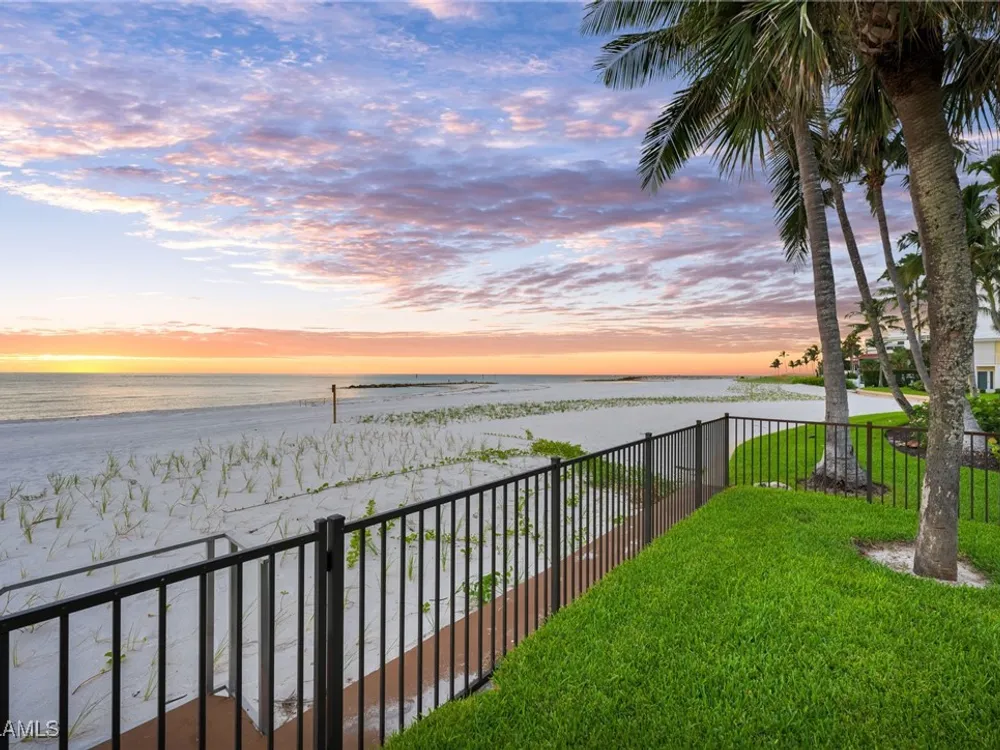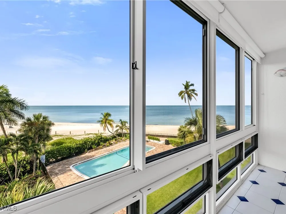Indulge in the ultimate beachfront lifestyle in this ideally situated 2 bedroom, 2 bath unit, perfectly positioned on the Gulf of Mexico in the coveted Moorings Beach enclave. With direct, panoramic views of sugar white sands and turquoise waters, this residence is a coastal gem offering direct beachfront access to one of the most open stretches of beach along Gulf Shore Blvd. Wall-to-wall, floor-to-ceiling sliders in the living room that open to a wide sunroom, offering seamless indoor-outdoor living and unobstructed Gulf views. The living and dining spaces feature a neutral, elegant palette, accentuated by coastal finishes and abundant natural light. The kitchen is white, bright and fully functional with ample storage and an easy flow making it ideal for preparing your beach walk morning coffee or a full meal! Primary suite is a serene retreat: offering direct Gulf views and a comfortably appointed en-suite bath. Lovely guest bedroom is generous in size, with large windows and close access to the second bath (which also serves as a powder bath for guests).Throughout the unit, tasteful coastal décor—such as light tile floors, creamy carpeting, and neutral paint enhance and emphasize this ideal beachfront setting. Royal Palm Club is a welcoming community offering private access to the beach which means your days begin with gentle surf and end with spectacular sunsets. Gulf-front pool and sundeck allow you to unwind steps from your door, with uninterrupted views of the Gulf. Covered and assigned parking plus individual storage and an immaculate common laundry ensure your convenience and security. Professionally managed, well maintained building with a responsive board and an onsite property manager reflects pride of ownership. RPC also offers an unbeatable Location: from your doorstep, you’re minutes away from: Venetian Village's boutique shops and waterfront restaurants, 5th Avenue South & Third Street South with upscale dining, galleries, and nightlife, World-class golf courses, pristine parks, and cultural venues. Easily accessible to both Naples Airport and Southwest Florida International Airport (RSW)