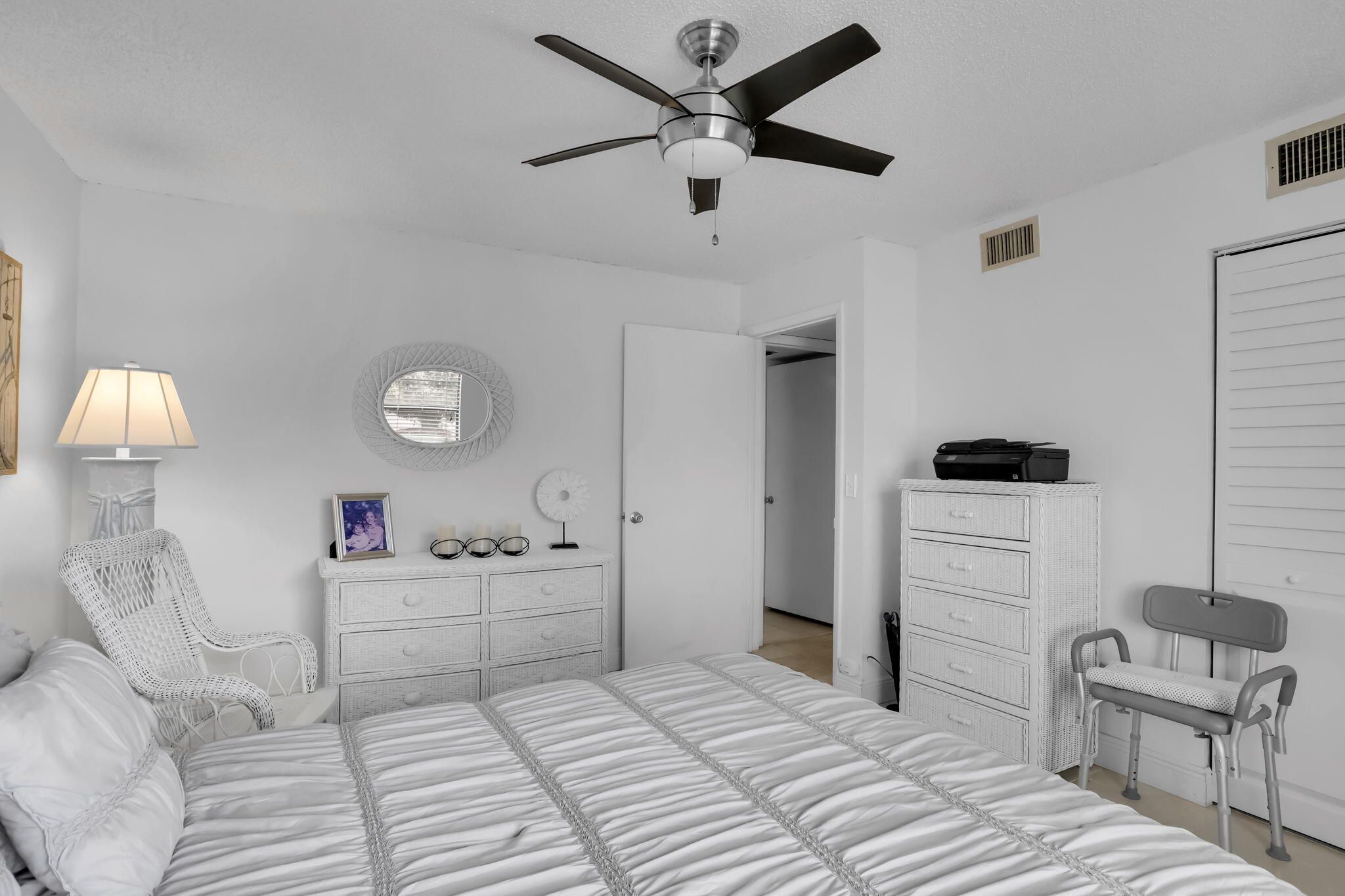 Beautifully remodeled and located on the first floor, this 2-bedroom, 2-bath unit offers impressive golf course views in the friendly, gated 55+ community of Fairways, where residents enjoy a relaxed South Florida lifestyle. The home features ceramic tile and travertine flooring throughout, a modern kitchen with granite countertops and stainless steel appliances, and a stunning guest bath with marble walls and shower. Relax on your private screened patio overlooking the beautiful fairways, with added peace of mind from included hurricane shutters. Plus a 2024 Roof, Fairways offers two inviting pools with Wi-Fi, a clubhouse for gatherings, games, and events, and an active Social Club that hosts various activities--all supported by a dedicated Board, on-site management, and maintenance team. just minutes from Boca beaches, Town Center Mall, Mizner Park, and more, this community includes cable and internet in the association, allows you to walk to the pool, requires no membership