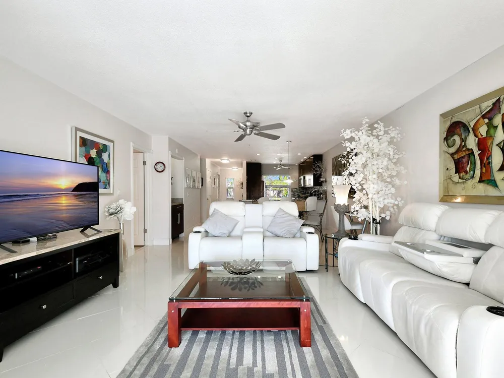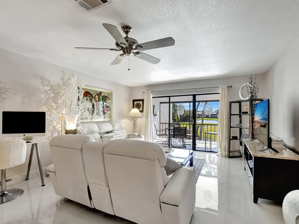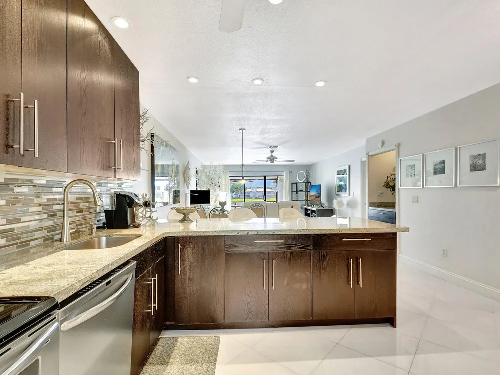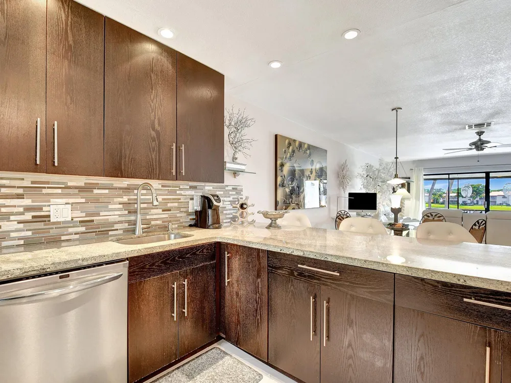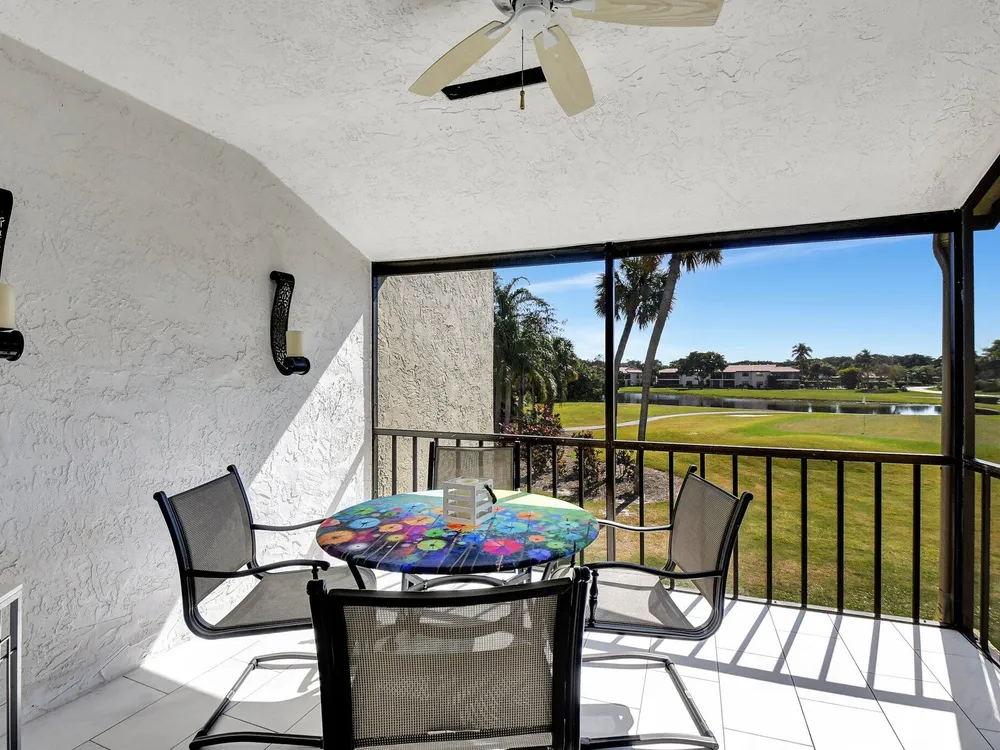 Rare Opportunity in a Premier Golf Community!Don't miss this exceptional 2-bedroom, 2-bathroom residence offering direct views of a stunning par 3 hole. This unit comes with an incredible advantage--the $180/month special assessment has been paid in full for the entire 10-year term, giving you instant savings and peace of mind. Plus, the home is available fully furnished (minus personal items), making it move-in ready for your convenience. Impact glass windows throughout (not the sliders) for your storm protection.As you step inside, you'll be greeted by a light and bright open-concept layout that exudes warmth and sophistication. The heart of the home is the beautifully renovated kitchen, featuring sleek granite countertops, a spacious island, stainless steel appliances, and ample