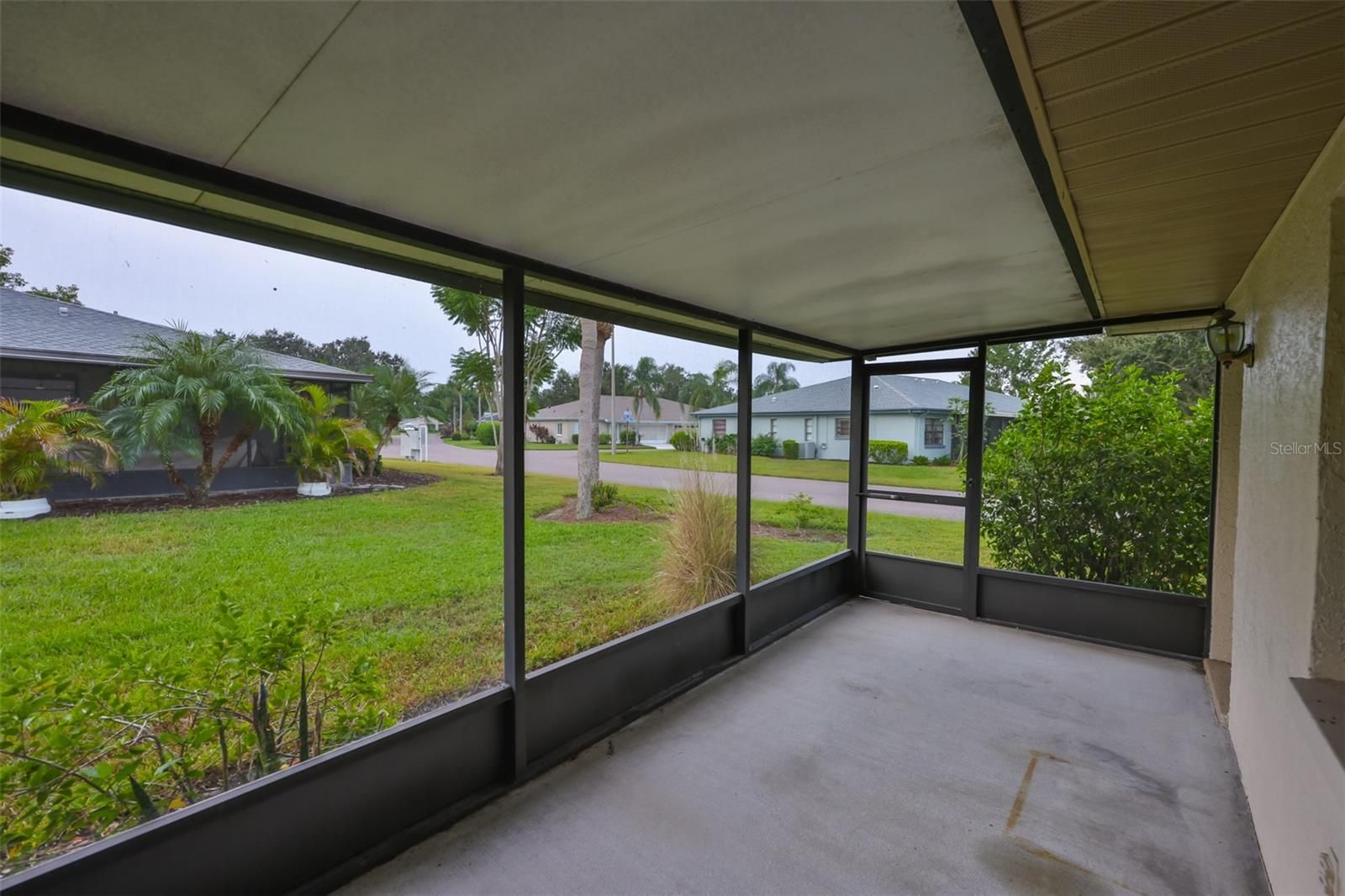 Welcome to this refreshed Cypress III model, perfectly situated on a desirable corner lot in Kings Point. This 2-bedroom, 2-bath villa offers 1,150 sq. ft. of comfortable living space with a spacious living/dining combination and an attached carport for convenience. The updated kitchen features stainless steel appliances, ample cabinetry, generous counter space, and a cozy breakfast nook by the window. The bedrooms are separated for privacy, Primary Closet is large 5" x 6" and the home includes a closet with a washer and dryer. Relax on the expansive 18’ x 8’ screened lanai, overlooking manicured lawns—an ideal spot for enjoying Florida’s sunshine. As a resident of Kings Point, you’ll enjoy an unmatched 55+ lifestyle within a secure, gated community. Amenities include two large clubhouses, casual dining options, a full-service bar, an 850-seat theater, a state-of-the-art fitness center with trainers, a full-service spa, and six pools (three heated). The Kings Point South Club features a tiki bar, lap pool, and aerobics pool. Sports enthusiasts will love the active pickleball and tennis programs, while hundreds of clubs and interest groups ensure there’s always something new to enjoy. Located in Sun City Center, this home offers easy access to Tampa, Sarasota, and Bradenton, with nearby Gulf beaches, cultural attractions, professional sports, shopping, dining, and medical facilities. Whether you’re seeking a year-round residence or a seasonal retreat, this villa is ready to welcome its new owners to the best of Florida living.