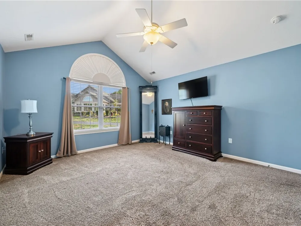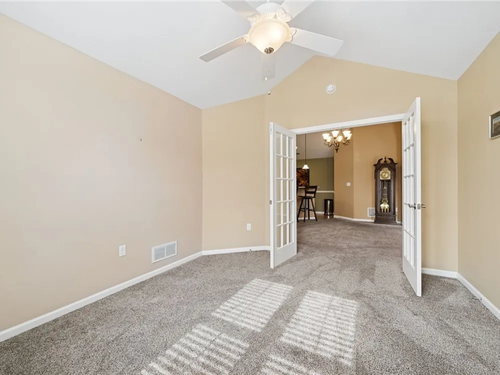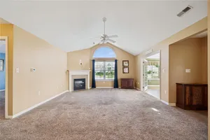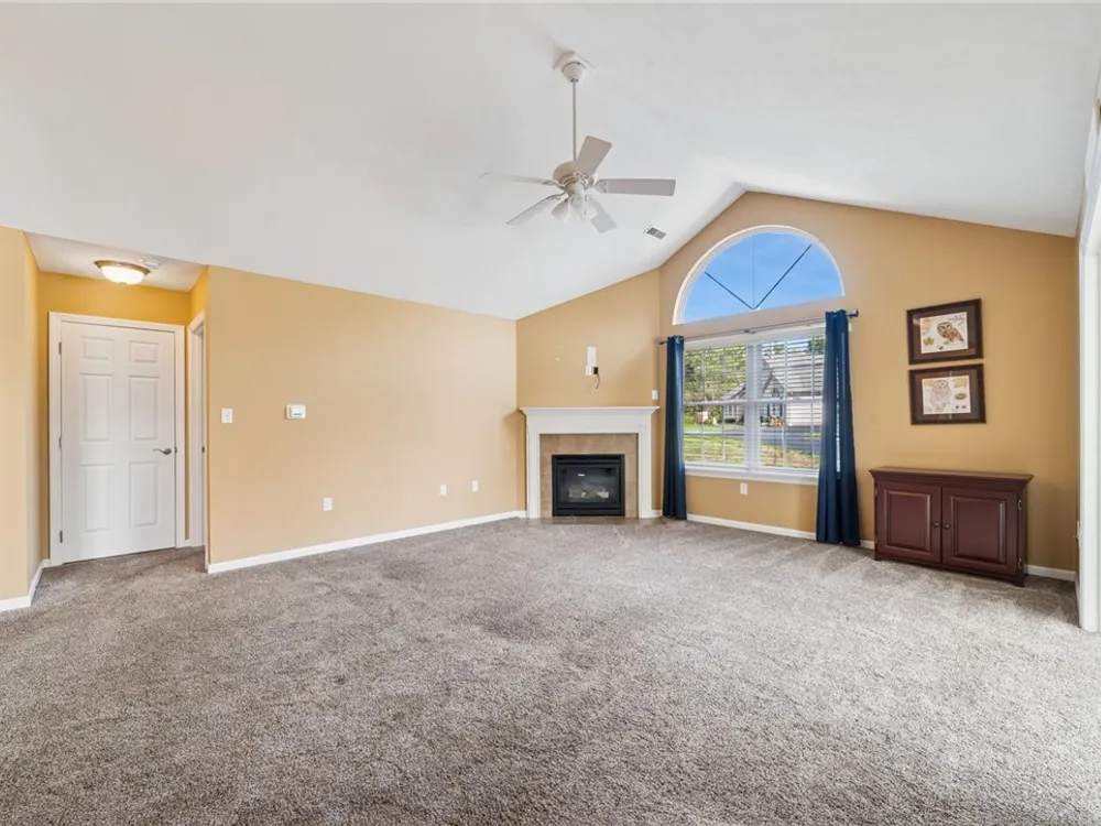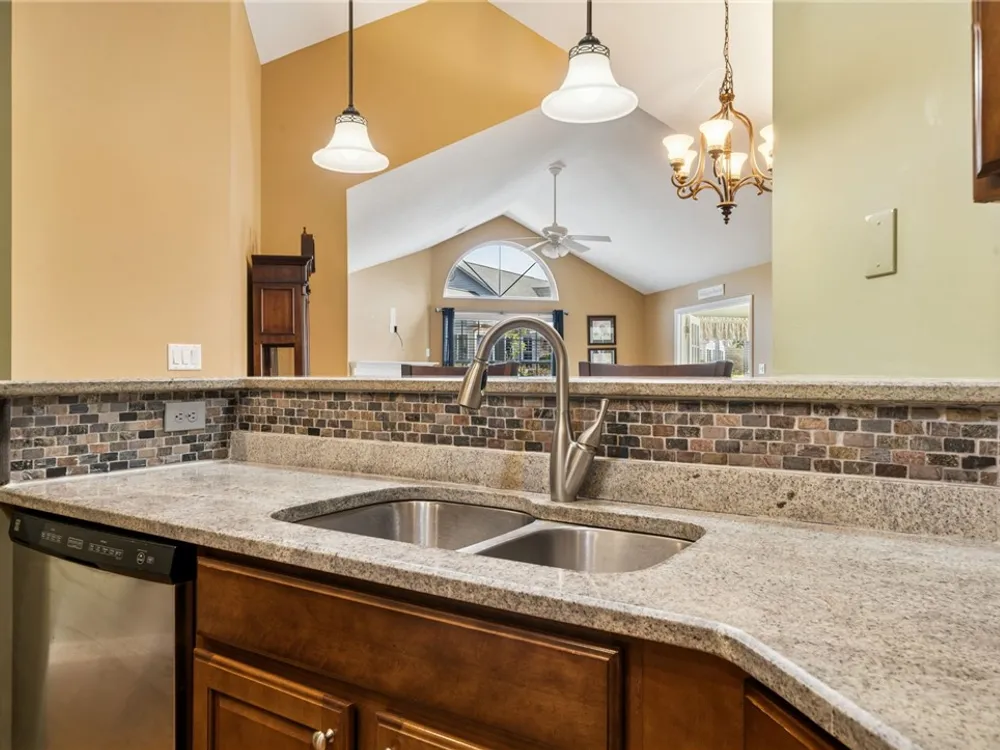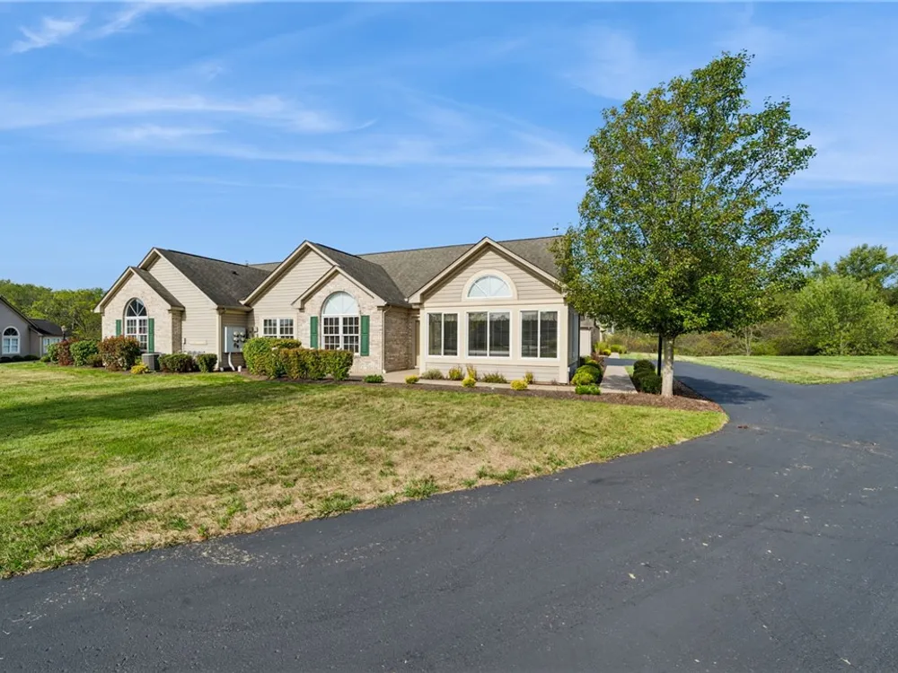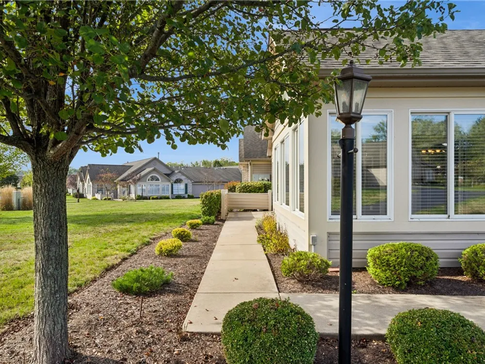 One-level, low-maintenance living at its best! Beautiful home in Cobblestone Village. This open-concept home features vaulted ceilings throughout, brand-new carpet, recessed lighting, and a modern kitchen with granite countertops, stylish backsplash, and stainless steel appliances. The bright sunroom with vaulted ceilings is perfect for relaxing or entertaining, while a versatile bonus room offers the option of a third bedroom or private home office. The spacious primary suite includes a walk-in closet and a large ensuite bath. With two generously sized bedrooms, flexible living space, and minimal upkeep, this home provides the perfect blend of comfort and convenience.