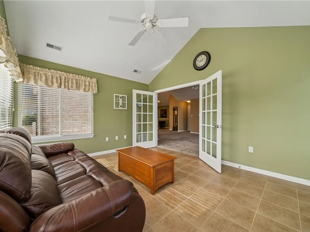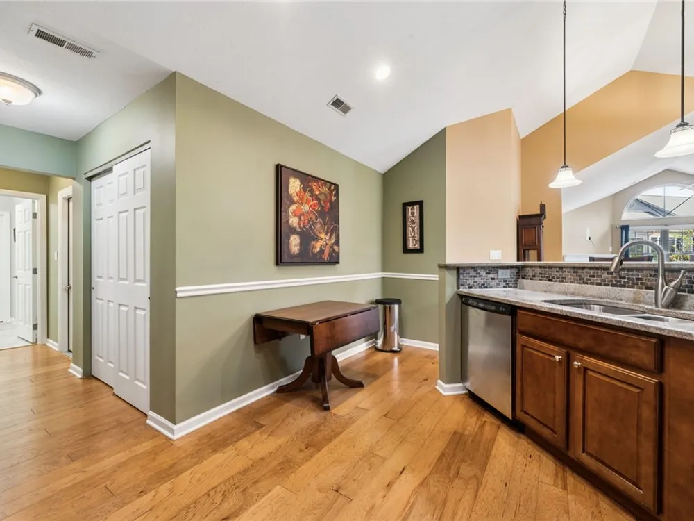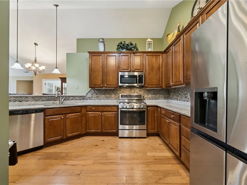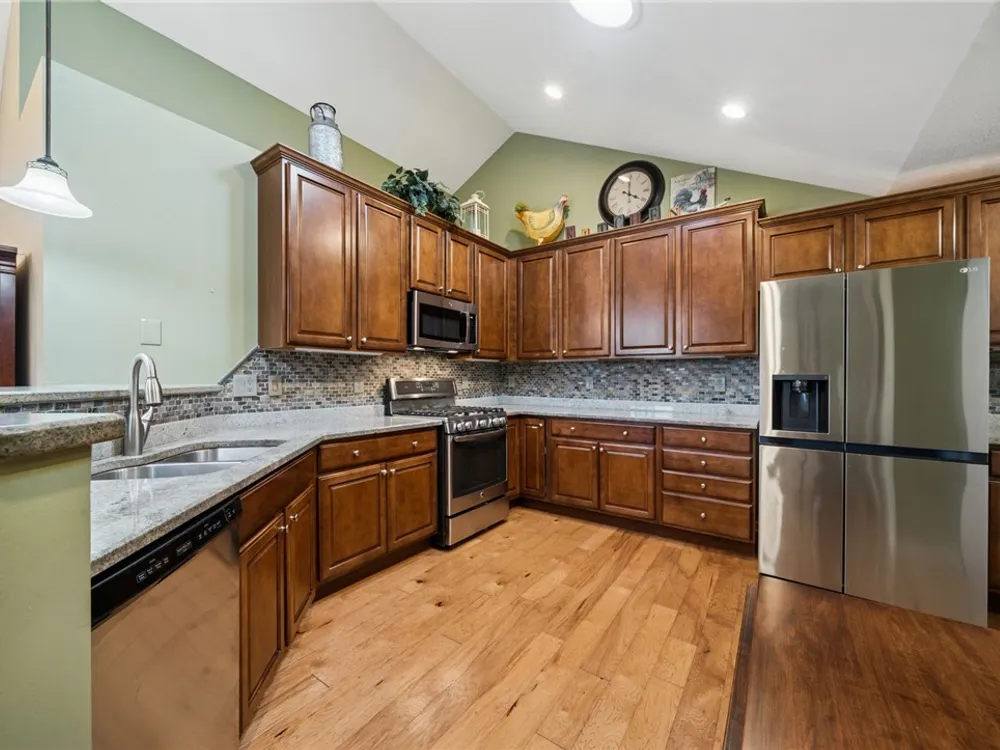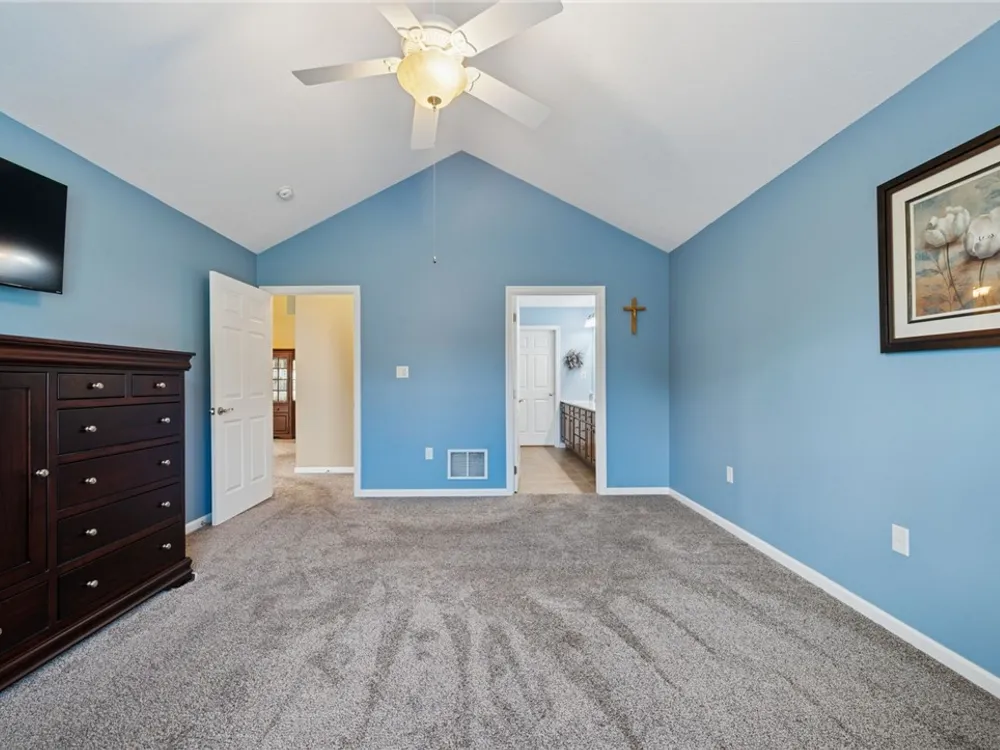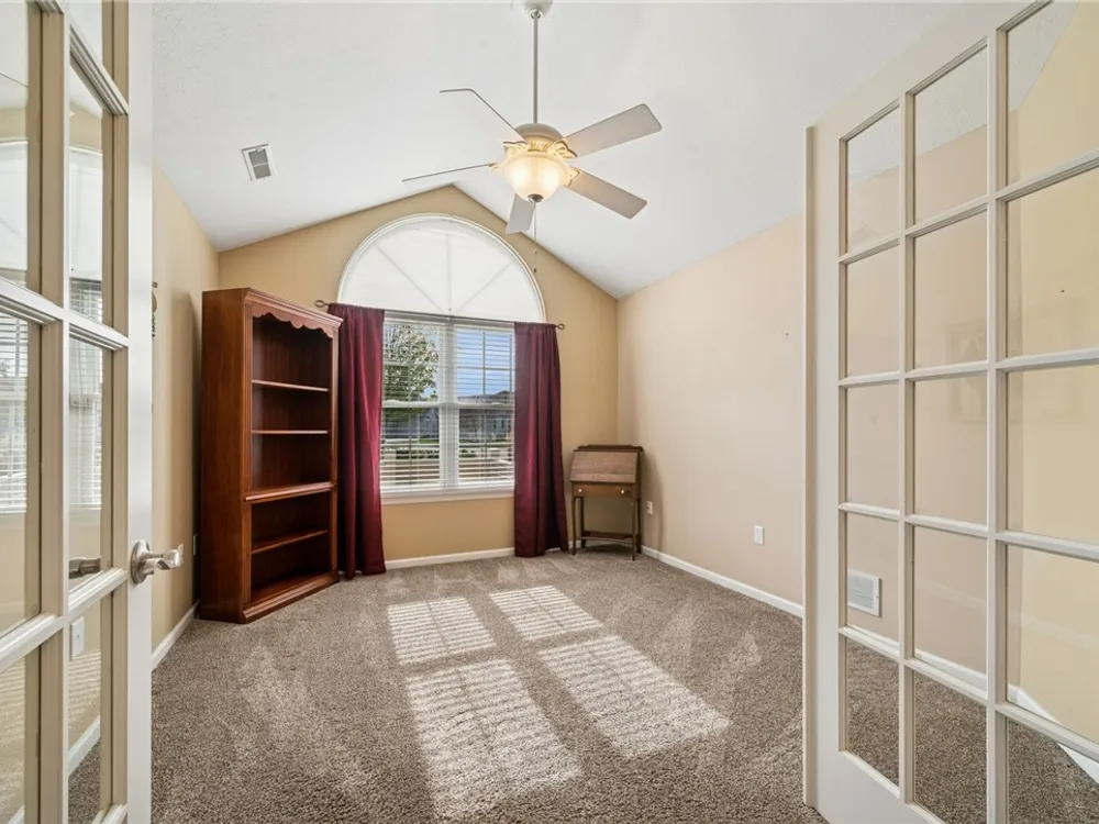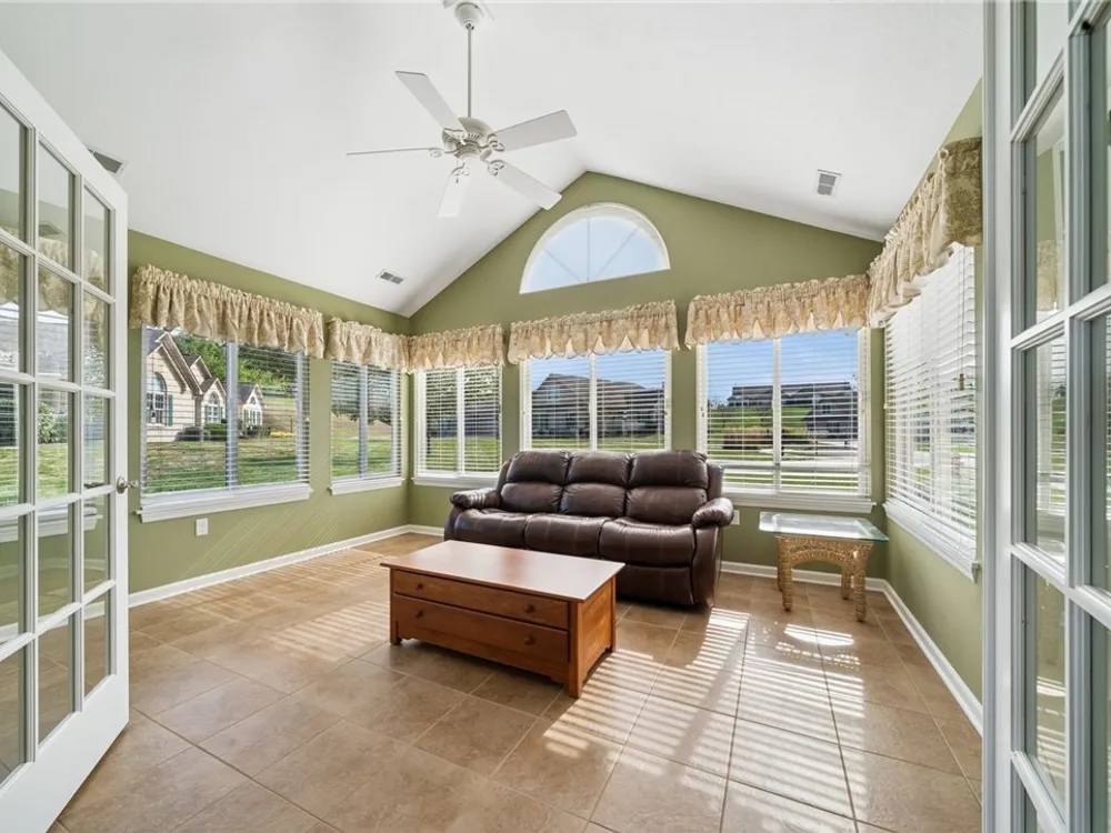 One-level, low-maintenance living at its best! Beautiful home in Cobblestone Village. This open-concept home features vaulted ceilings throughout, brand-new carpet, recessed lighting, and a modern kitchen with granite countertops, stylish backsplash, and stainless steel appliances. The bright sunroom with vaulted ceilings is perfect for relaxing or entertaining, while a versatile bonus room offers the option of a third bedroom or private home office. The spacious primary suite includes a walk-in closet and a large ensuite bath. With two generously sized bedrooms, flexible living space, and minimal upkeep, this home provides the perfect blend of comfort and convenience.