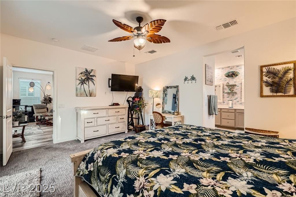 STUNNING SINGLE-STORY HOME LOCATED IN A GATED 55+ COMMUNITY! THIS BEAUTIFUL 2 BEDROOM, 2 BATH HOME FEATURES A DEN THAT CAN EASILY BE CONVERTED INTO A 3RD BEDROOM. ENJOY A TRANQUIL FRONT COURTYARD & AN OPEN-CONCEPT FLOORPLAN. LIVING ROOM FEATURES A CEILING FAN & AMPLE NATURAL LIGHT. GOURMET KITCHEN OFFERS STAINLESS STEEL APPLIANCES, BUILT-IN CONVECTION MICROWAVE, GRANITE COUNTERTOPS, BREAKFAST BAR, ISLAND & CUSTOM CABINETS. SPACIOUS PRIMARY SUITE FEATURES DUAL SINKS, WALK-IN SHOWER & LARGE WALK-IN CLOSET. ALL ROOMS INCLUDE CEILING FANS. UPGRADED PRIVATE BACKYARD FEATURES A COVERED PATIO & ARTIFICIAL TURF. EXTENDED 2-CAR GARAGE (4 FT DEEPER) INCLUDES A WATER SOFTENER, EXTERIOR DOOR & BUILT-IN SHELVES. SOLAR WILL BE PAID OFF AT CLOSING! COMMUNITY FEATURES PICKLEBALL, TENNIS, POOL, SPA, CLUBHOUSE, FITNESS CENTER, PARK & PET PARK. CONVENIENTLY LOCATED NEAR SHOPPING, DINING, ENTERTAINMENT & FREEWAY ACCESS.