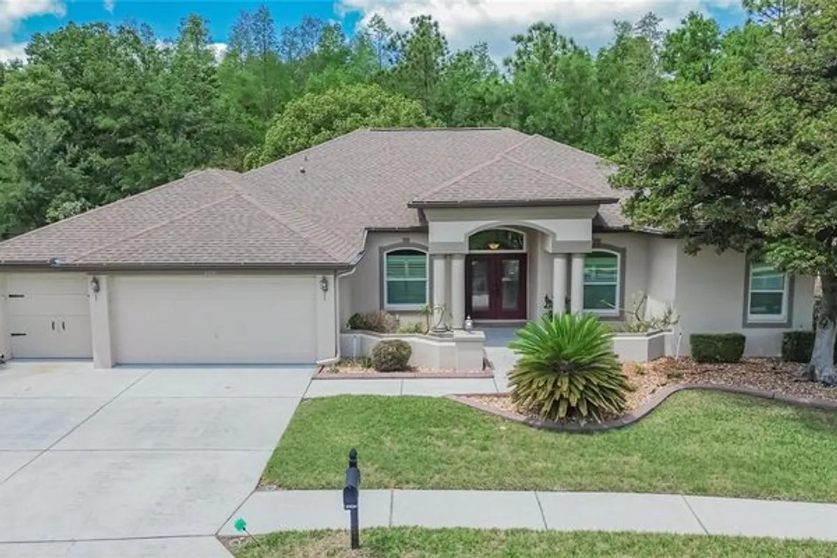 Welcome to one of the most exceptional homes in this vibrant 55+ gated community! Offering the largest floorplan in the neighborhood, this home is over 2500 square feet of thoughtfully designed living space. Perfectly positioned on a corner lot of 0.33 acres, enjoy some added privacy with a wooded backdrop that creates a serene, retreat-like setting. From the moment you arrive, the home's beautiful curb appeal sets the tone. Inside, you'll find a spacious and versatile layout featuring 4 bedrooms, plus a dedicated bonus room - ideal for guests, hobbies, or working from home. The primary suite acts as its own private retreat, located away from the secondary bedrooms. Offering dual closets, ensuite bathroom with garden tub as well as stand-up shower, and an access door to the lanai, you can take your relaxation to the next level. The heart of the home is a bright and spacious kitchen, designed for both everyday living and easy entertaining. Featuring an abundance of cabinetry, large island with a breakfast bar, eating space, and expansive counter space, this kitchen offers both style and practicality. Additionally, there is a dedicated formal dining room, interior laundry room, and a three-car garage, adding functionality to this already impressive home. Beyond the home itself, this highly sought-after community offers an unmatched lifestyle with resort-style amenities, including tennis courts, golf course, bocce ball, a butterfly walk, dog park, garden, scenic boardwalk, sparkling pool, on-site restaurant, and a calendar of planned social events. This is more than just a home, it's a lifestyle upgrade! Schedule your showing today! Roof replaced in 2022, HVAC replaced in 2020 with UV light, electrostatic filters and new thermostat installed 2022, Water Heater replaced in 2022, Front windows replaced in 2022, Hurricane windows installed on right side of house in 2022.