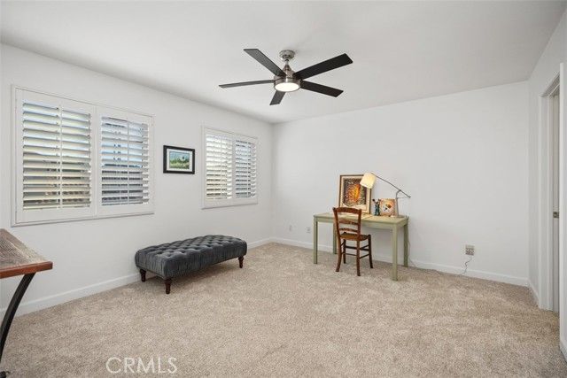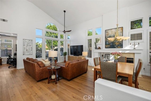 Welcome to 21235 San Miguel, a beautifully maintained corner-lot home nestled on a quiet cul-de-sac in the highly desirable 55+ Palmia community of Mission Viejo. Soaring ceilings, abundant natural light, and a thoughtfully designed floor plan that lives like a single story create an inviting and comfortable atmosphere from the moment you enter. The main level offers a spacious primary suite and a remodeled den or study, providing flexible space for an office, hobbies, or guest accommodations. Upstairs, two additional bedrooms and a full bathroom offer privacy and comfort for visiting family or friends. The kitchen is open and functional with ample cabinetry and counter space, complemented by seller-installed improvements including a new refrigerator, upgraded window shades, and pendant light over the dining area. Additional enhancements throughout the home include upgraded ceiling fans and lighting, added electrical outlets on the main floor, and smart-home features such as a Nest thermostat and Ring video doorbell. Major system upgrades completed by the seller include a tankless on-demand water heater, water softener, whole-house water filtration system, and reverse osmosis drinking water system at the kitchen sink—adding comfort, efficiency, and peace of mind. A rare three-car garage provides exceptional storage and workspace, while the private, low-maintenance backyard offers a peaceful retreat with a fountain, mature landscaping, and citrus tree. Palmia residents enjoy resort-style amenities including a clubhouse, pool and spa, fitness center, putting green, pickleball and tennis courts, bocce ball, billiards, and an active calendar of social clubs and events. This is relaxed, resort-style living at its best.