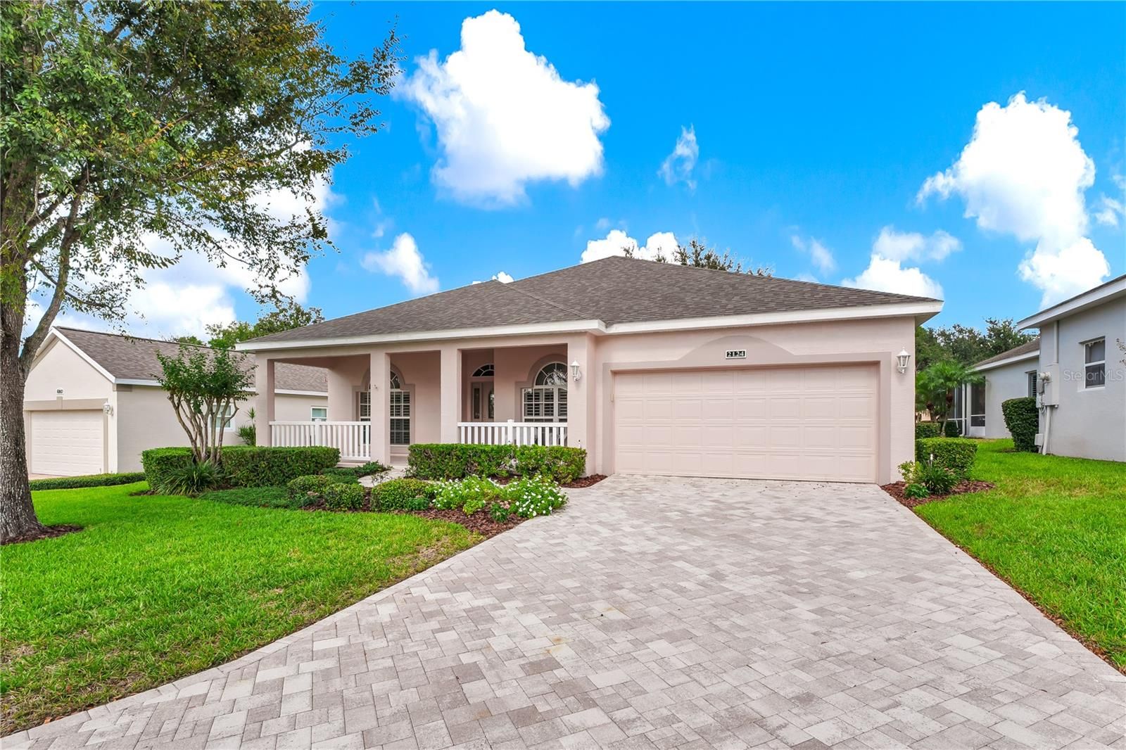 One or more photos have been virtually staged. Come take a look at this beautiful and well-cared for home! Ready to move in! This home sits on the golf course in the highly desired 55+ Lancaster Community in King's Ridge! It sits on the top of the hill, offering great views down the fairway. This St. Clair model has a wonderful floorplan and the owner added a few extra touches, making it unique and very functional. A one of a kind place to call home. The roof was replaced in March 2024, and the dishwasher was replaced in July 2024. A/C was installed in April 2016. All of the kitchen appliances with exception of the range have been updated or replaced since the home was built in 2000. The washer and dryer are not original and also were replaced, since the house was built. The property is located on a cul-de-sac and therefore has very little traffic. A front porch extends across the front, great for visiting with friends and neighbors. The driveway has pavers, which look great. As you walk in, there is a separate living room and dining room. The kitchen is spacious and the owner added some additional cabinetry. Off the kitchen, is a laundry room with a washer and dryer. From the laundry room you have a two car/golf cart garage with an epoxy finished floor and garage door opener. From the kitchen, you overlook a good size family room. To the left of the family room is the Master Bedroom with a large Walk-in closet, as well as two built in closets, perfect for storage and/or your clothing. The Master bath has a walk in closet and a glass enclosed shower and dual sinks. Also in the Master Bedroom, the owner added, on the back side, a one of a kind, sitting room and desk with cabinets and a granite countertop. A little hideaway that overlooks the golf course. On the other side, in the back, is a covered screened porch and then, beyond that, a second full length 30' x 10' screened porch. The home also includes a split plan, second bedroom and a study that can double as a third bedroom due to the storage/walk in closet in that room. Home is concrete block and stucco and this home and property is in a fantastic location within the community! In regards to the King's Ridge Community...A well designed golf course community with 24 hour guard gated security and amenities that include a clubhouse, swimming pool, activities of all types. Considered a top 55+ community in Clermont and Central Florida. Close to everything, yet quiet and private. A place to enjoy friends and family and a home that you can love! Call for a personal tour or additional information on this move in ready home and community!