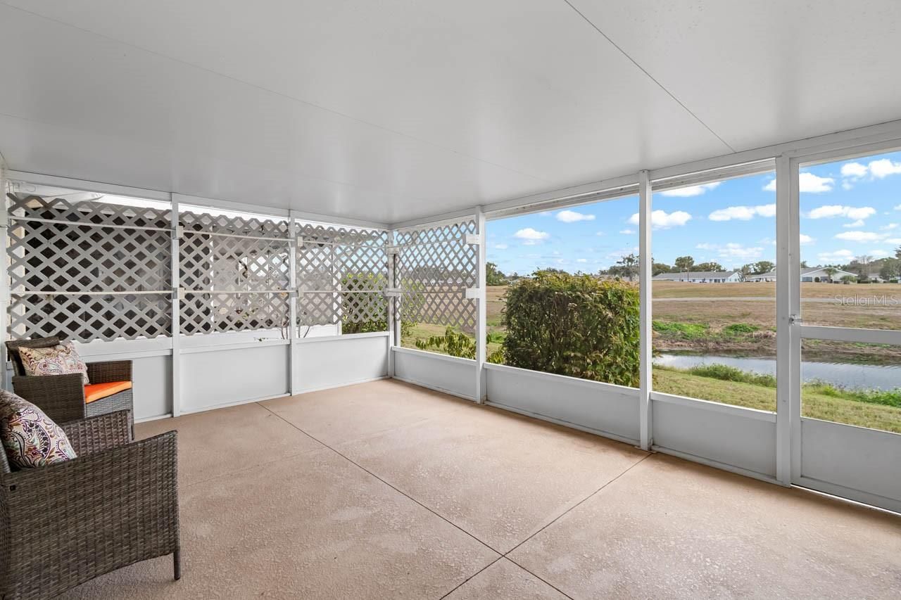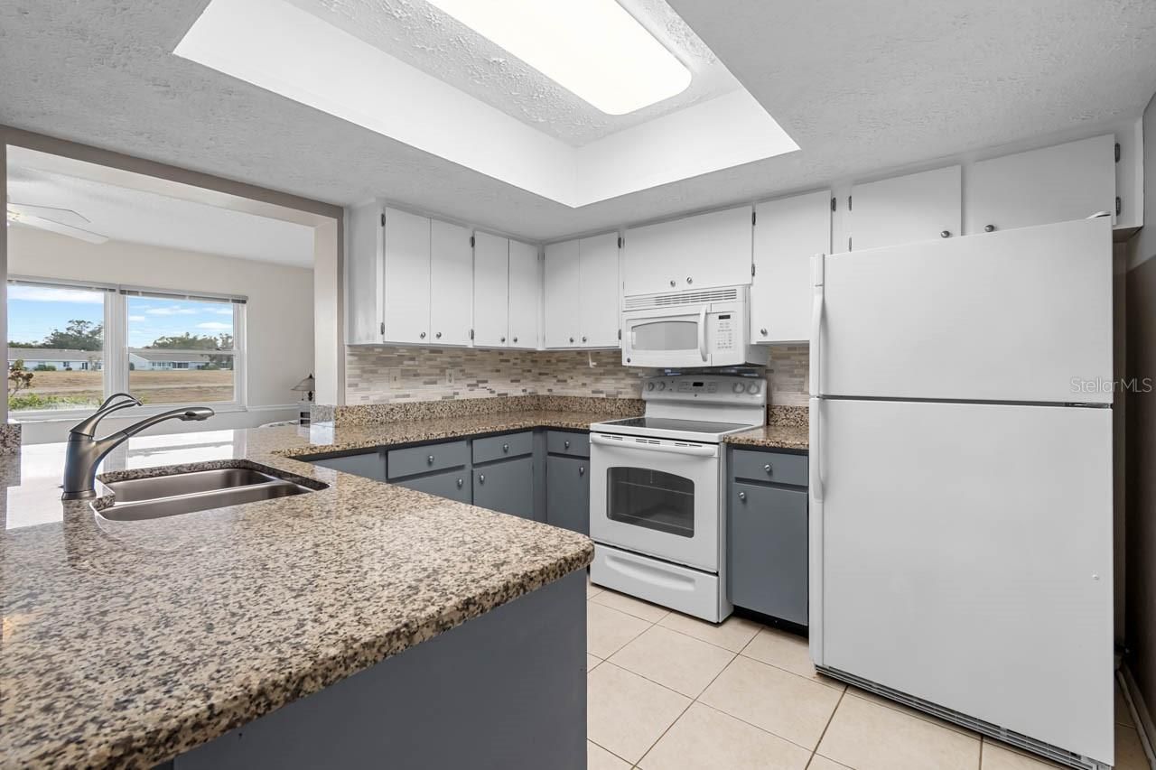 Is this FURNISHED 2-bed, 2-bath condo in the active and engaging 55+ community of Kings Point "the one" for you? TILE FLOORING in all wet areas, CHAIR RAIL, a POND VIEW, and more! There is an attached carport with driveway for tandem parking, and this unit also has its own GOLF CART GARAGE! Providing plenty of entertaining areas with the spacious Great Room, Family Room, and a COVERED/SCREENED LANAI for year-round enjoyment regardless of weather conditions! The kitchen features a BREAKFAST BAR, a pass-thru window to the Family Room, GRANITE COUNTERS, backsplash, and connects to the Laundry Room/Golf Cart Garage with a washer and dryer. Travel down the hall to the Primary Bedroom to find a WALK-IN CLOSET and EN-SUITE BATHROOM complete with a single sink vanity and shower stall! The secondary bedroom is tastefully appointed and only a few steps from the second full bathroom, featuring a single sink vanity and tub/shower combination. Kings Point is a bustling gated and golf cart friendly community known for a myriad of recreation facilities, indoor/outdoor heated pools, a state-of-the art fitness center, arts, crafts, tennis, pickle-ball, lawn bowling, auditorium with 800+ seating and over 200 clubs & activities. Begin the process of making this home your personal paradise by scheduling your showing today!