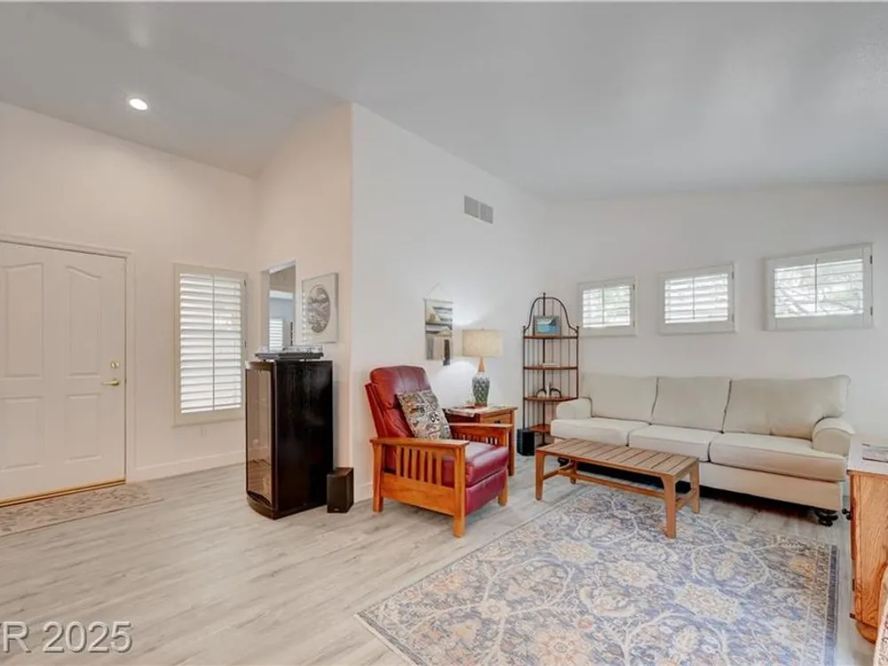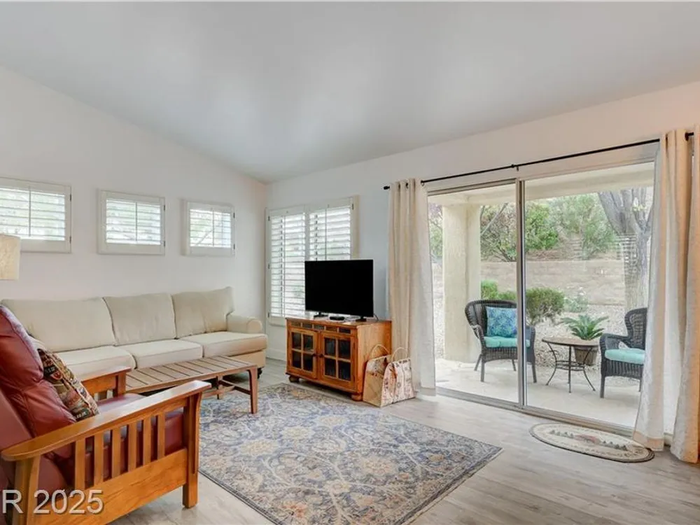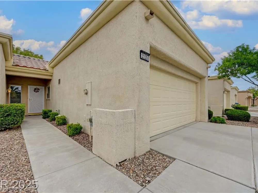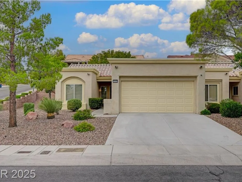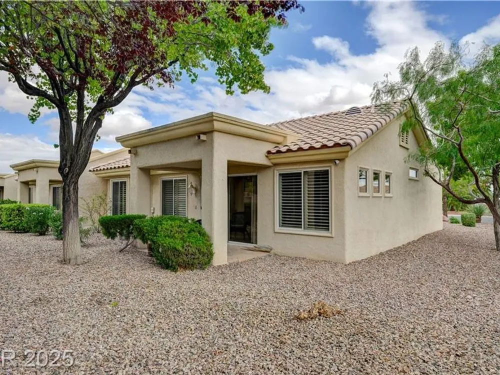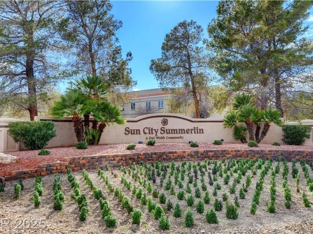 Renovated 2BD/2BA townhome w/2-car garage in Sun City Summerlin! Corner lot home features vaulted ceilings, plantation shutters, and tons of natural light. Modern kitchen w/new stainless appliances, quartz countertops & luxury vinyl flooring. Spacious bedrooms w/custom-tiled showers. New garage door, high-end washer/dryer, brass door handles, wrought iron entry & advanced security system w/cameras and doorbell. Covered patio for relaxing outdoors. Enjoy all the amenities—golf, clubhouses & fitness centers—in this premier 55+ community!